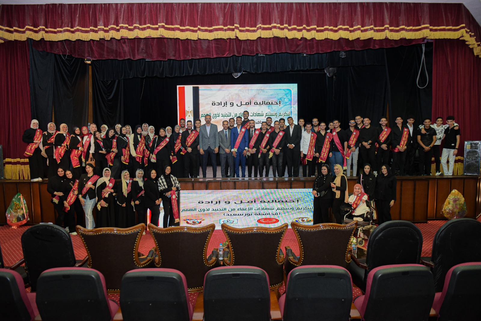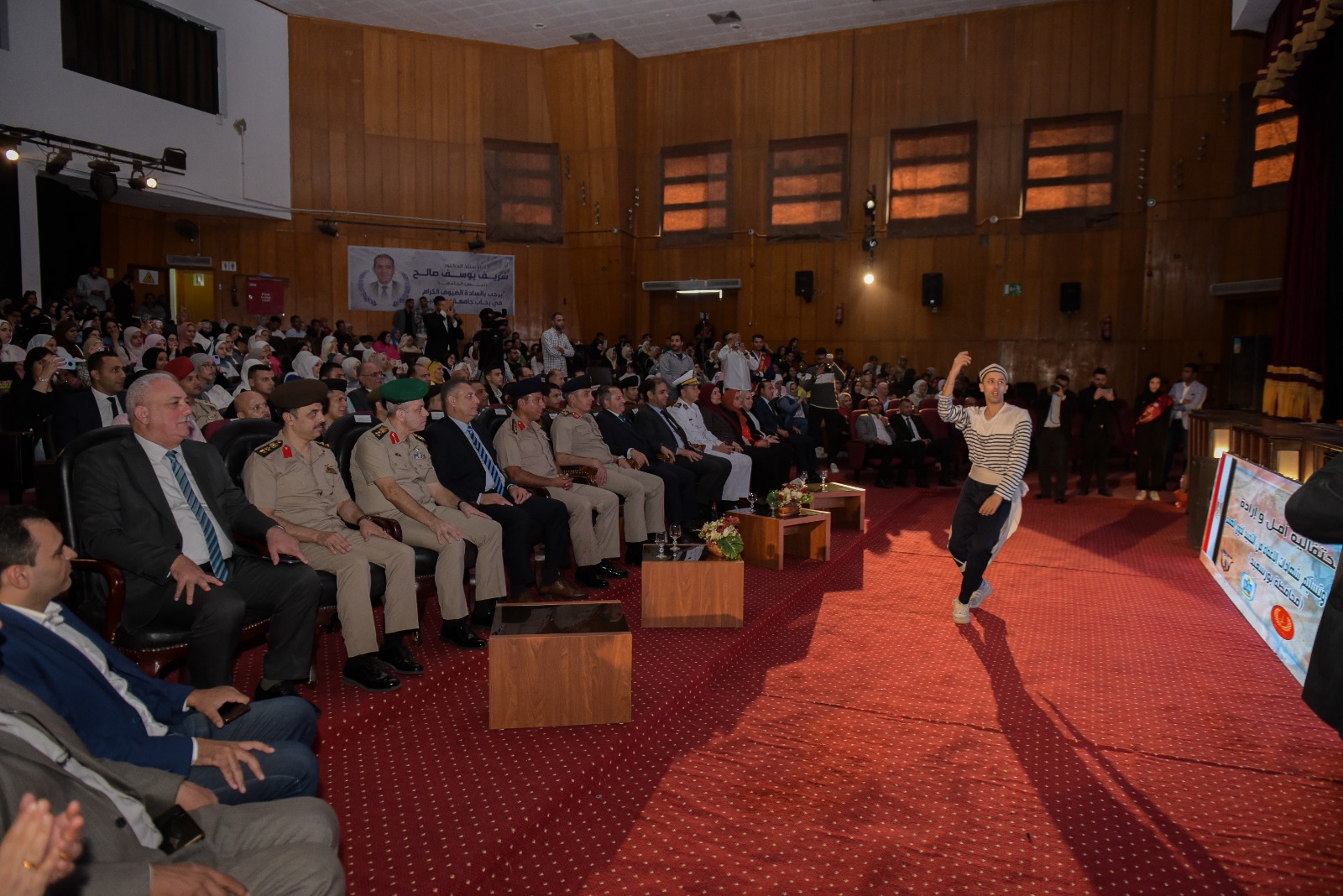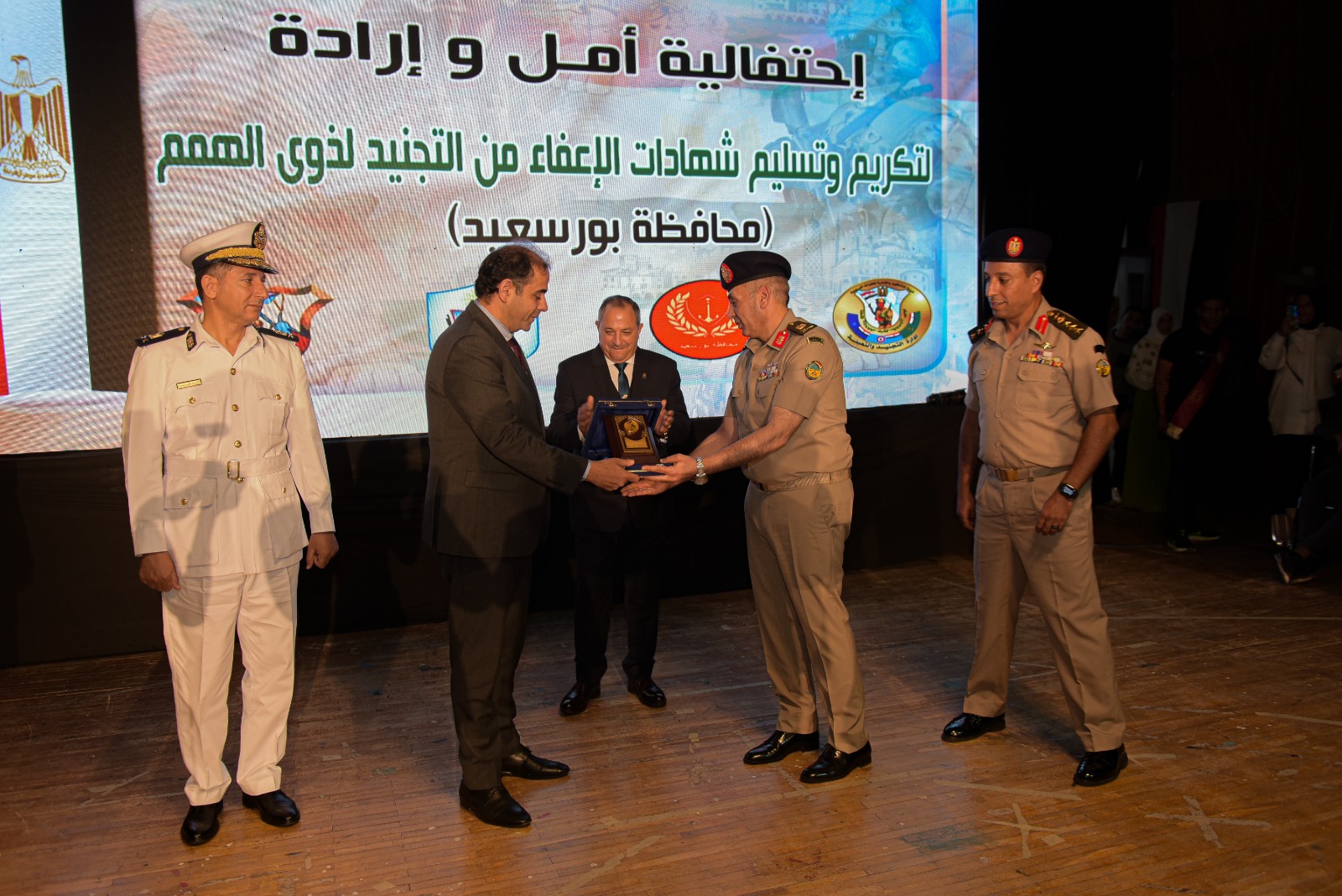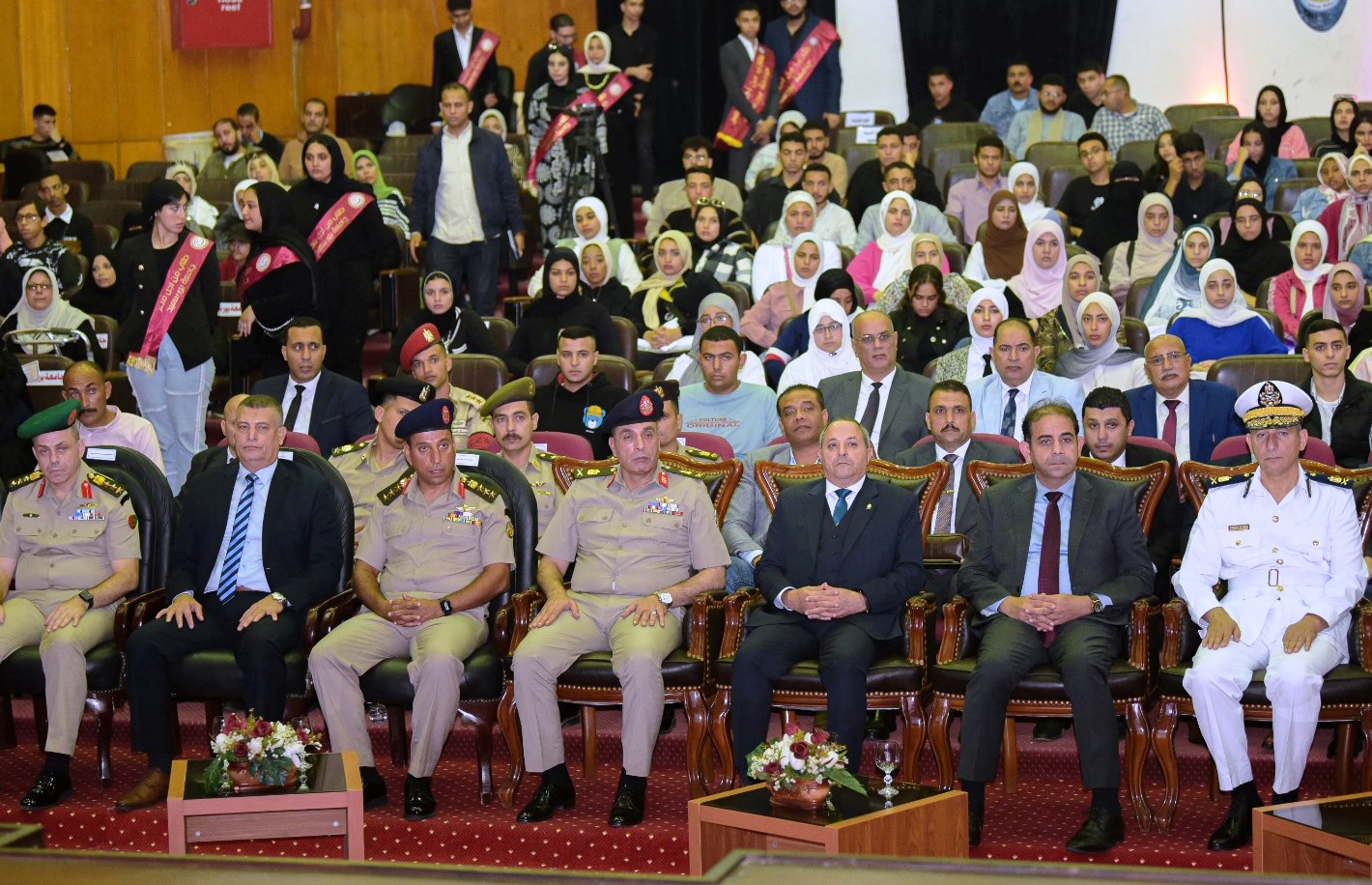 شهد السيد الاستاذ الدكتور / شريف صالح رئيس جامعة بورسعيد وقائع احتفالية أعدتها جامعة بورسعيد بالتعاون مع القوات المسلحة المصرية ممثلة في إدارة التجنيد والتعبئة (منطقة تجنيد وتعبئة الزقازيق) وبحضور سيادة اللواء أركان حرب / محب حبشي محافظ بورسعيد وسياده اللواء/ محمد صبحي مهنا مدير إدارة التجنيد والتعبئة وسيادة اللواء/ تامر السمري مساعد وزير الداخلية ومدير أمن بورسعيد وسيادة العميد/ أحمد غريب مدير منطقة التجنيد والتعبئة بالزقازيق.