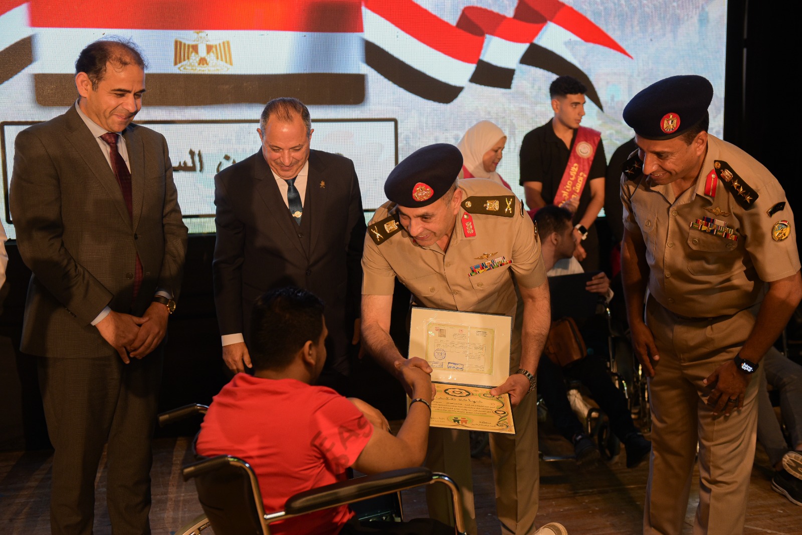 وأعقب ذلك توزيع شهادات التكريم والإعفاء التجنيدي على الطلاب من ذوي الهمم في بورسعيد وسط أجواء من الفرحة من الطلاب وأسرهم الكريمة.