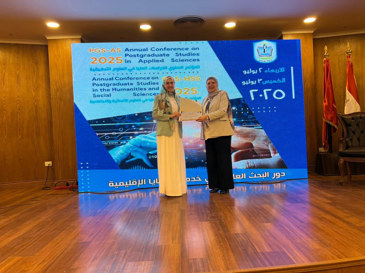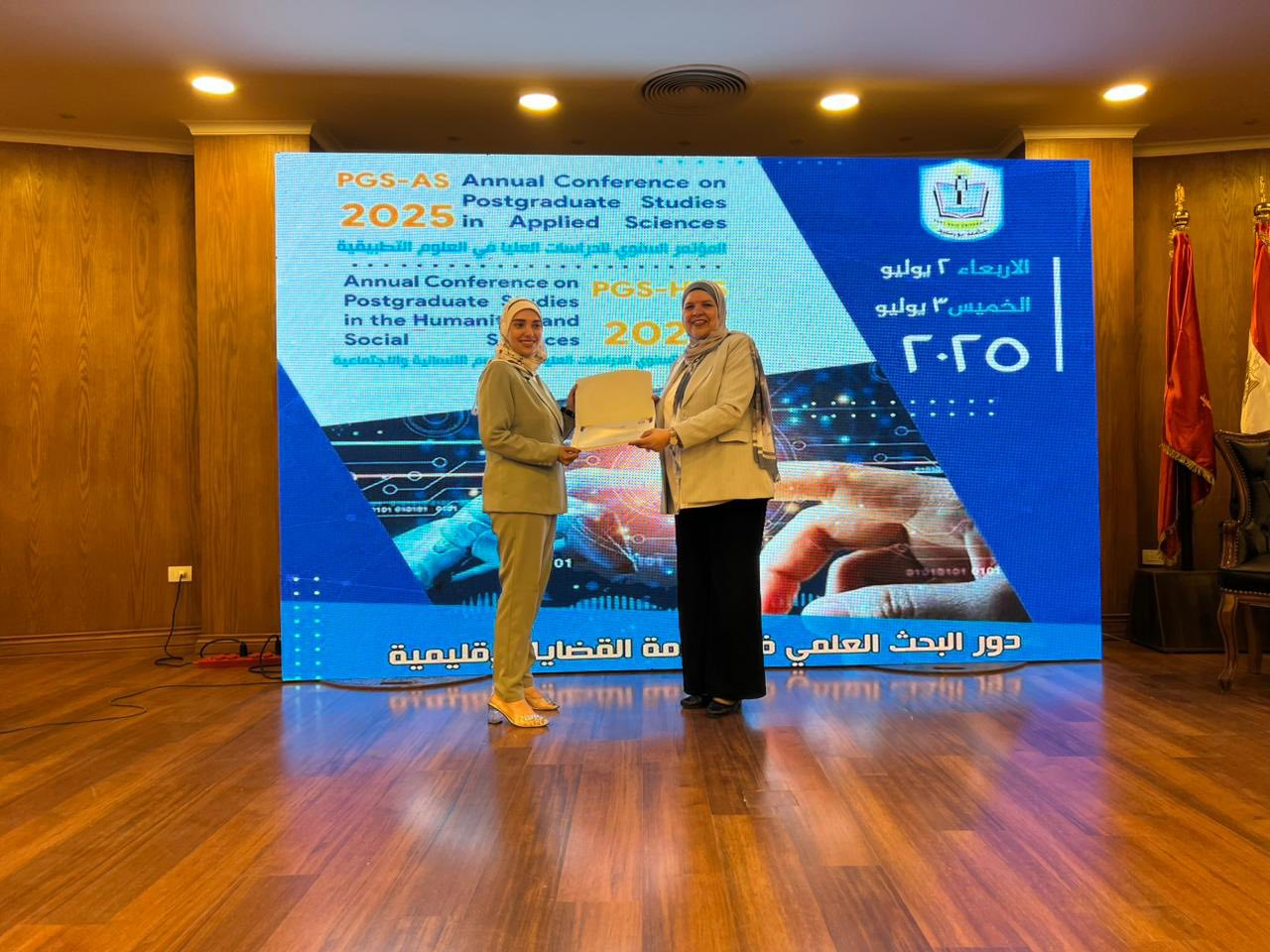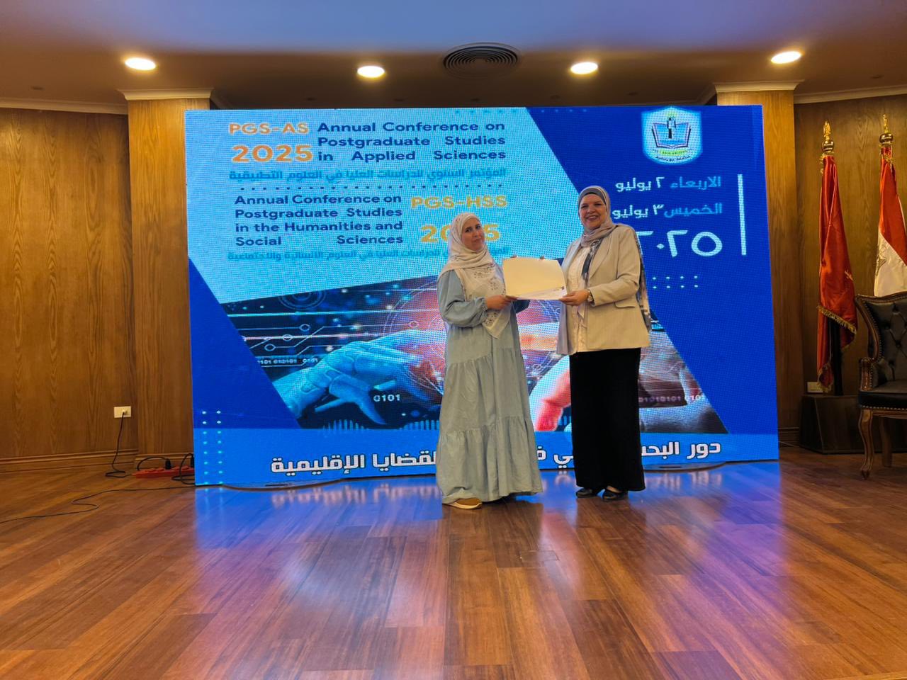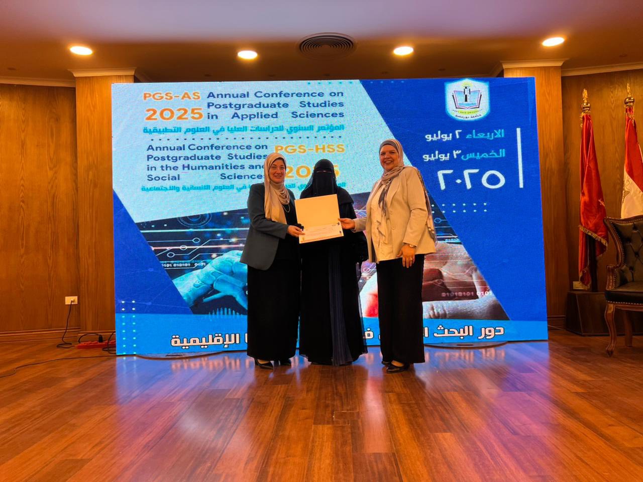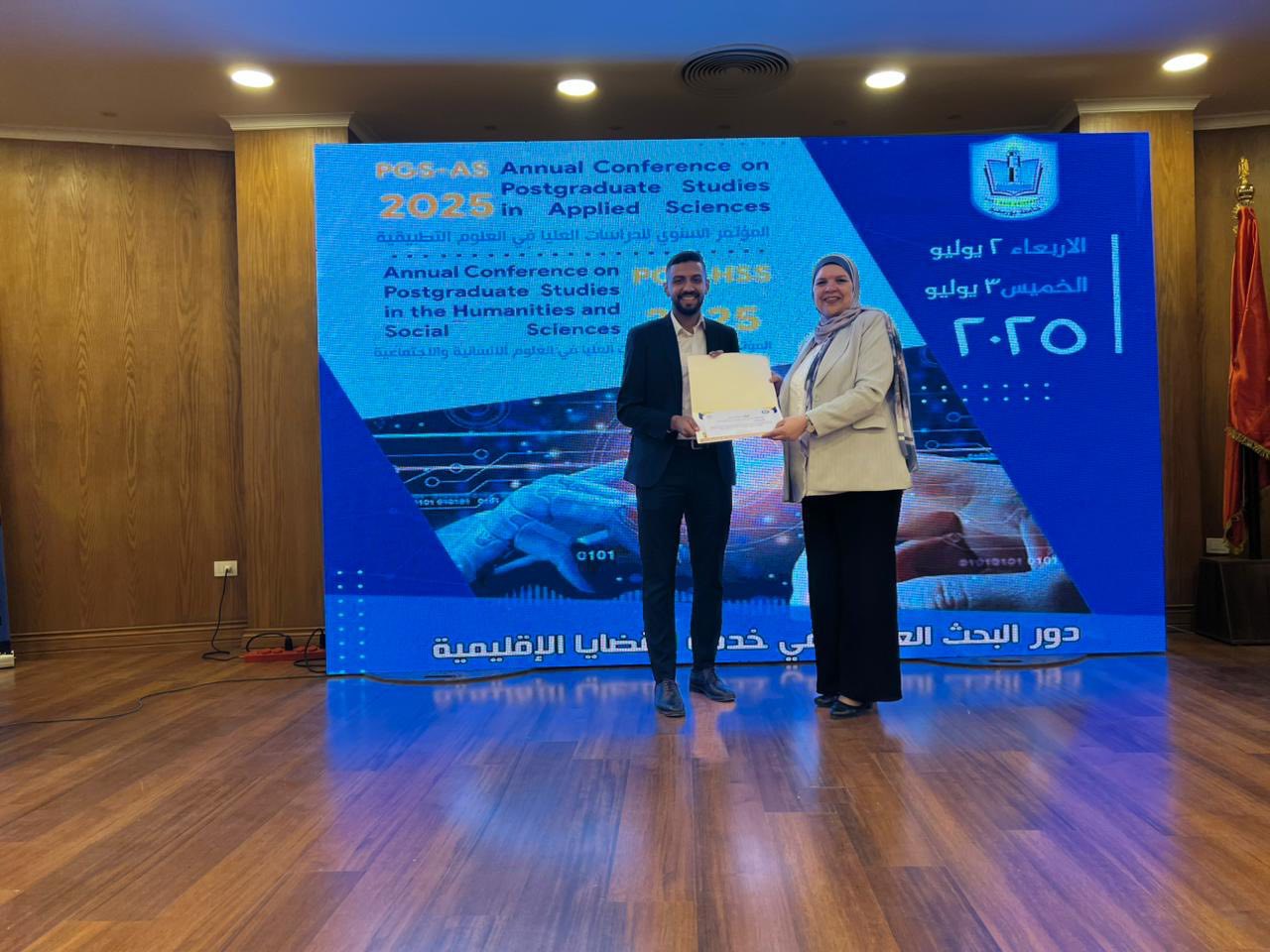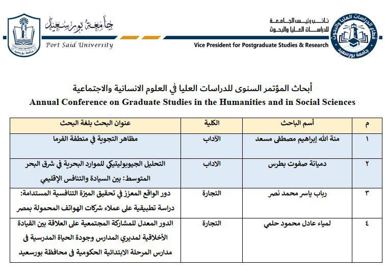 الفائزين في المؤتمر السنوى للدراسات العليا تحت عنوان “دور البحث العلمي في خدمة القضايا الإقليمية” بشقيه العلوم التطبيقية والعلوم الإنسانية والاجتماعية