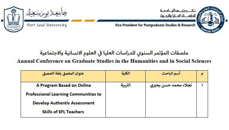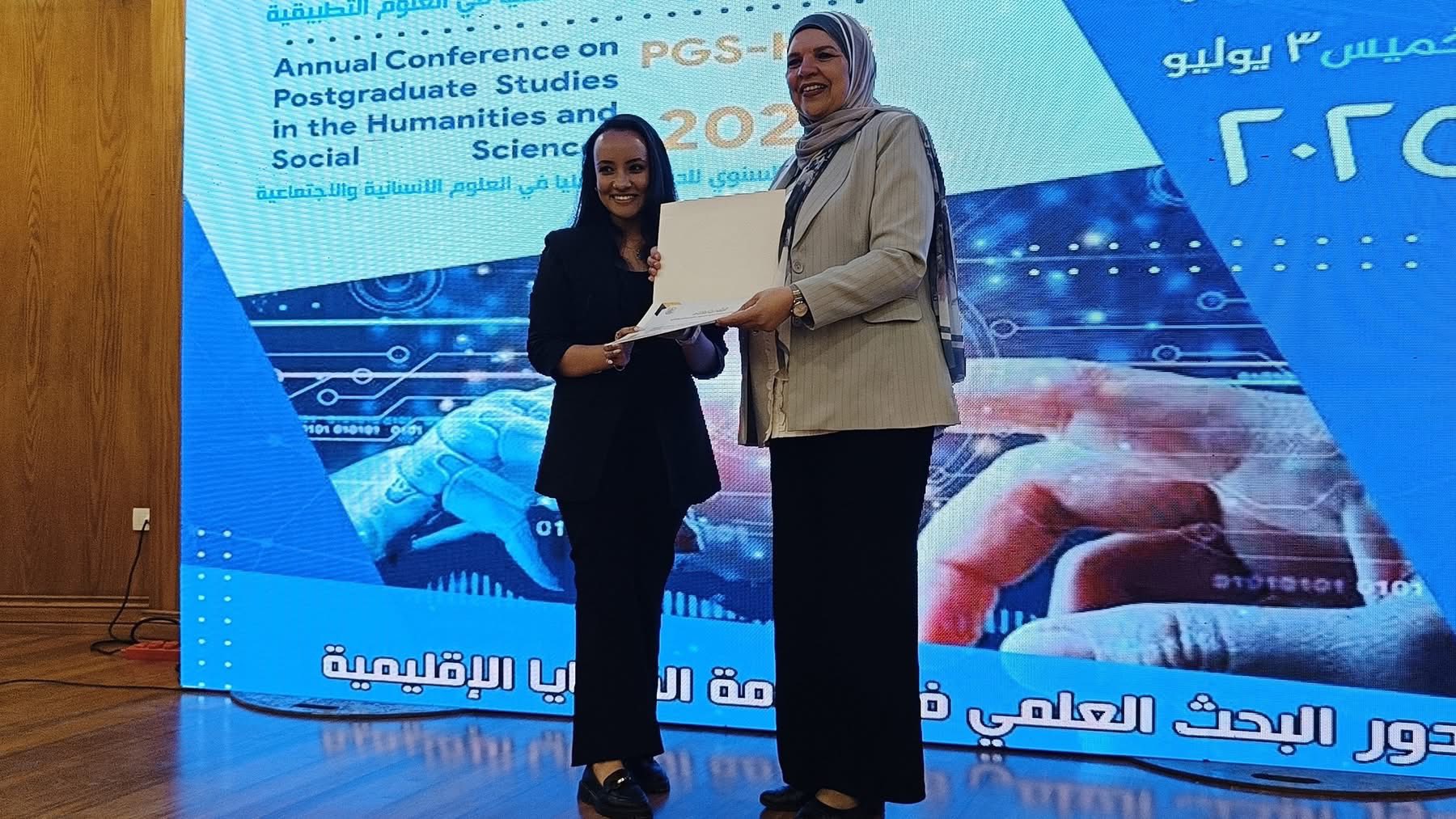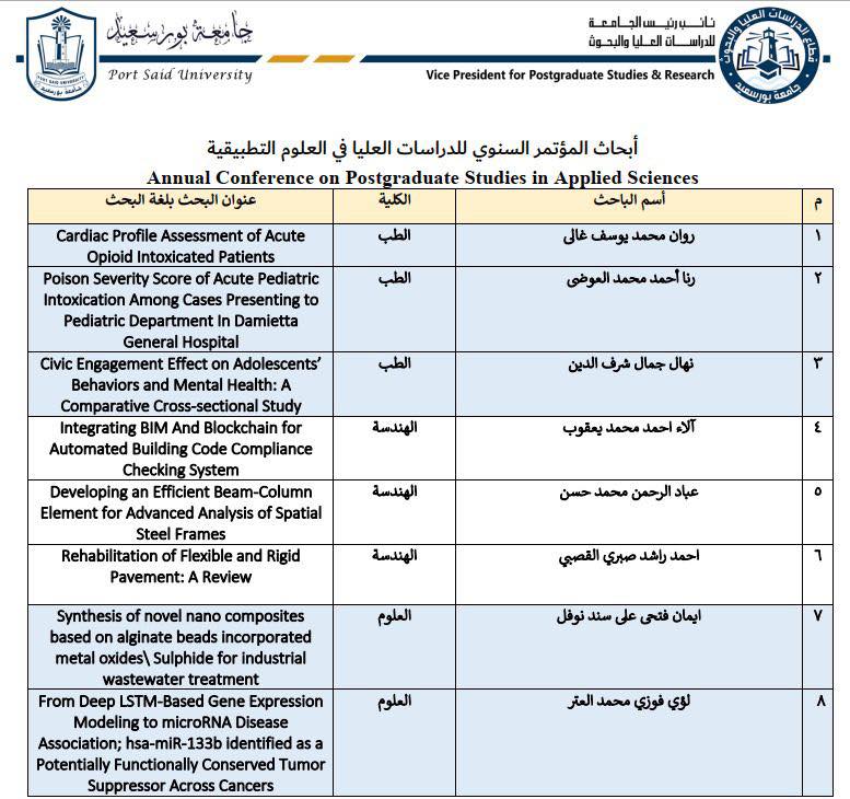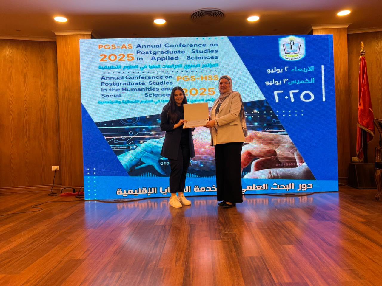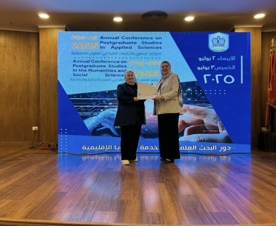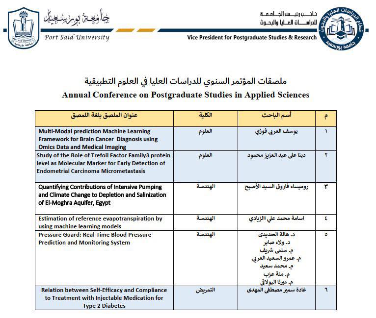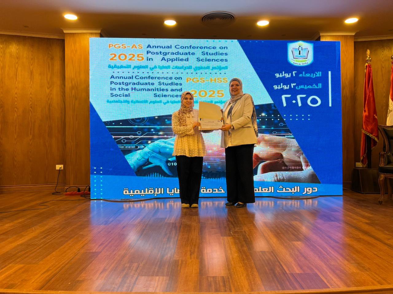 الفائزين في المؤتمر السنوى للدراسات العليا تحت عنوان “دور البحث العلمي في خدمة القضايا الإقليمية” بشقيه العلوم التطبيقية والعلوم الإنسانية والاجتماعية