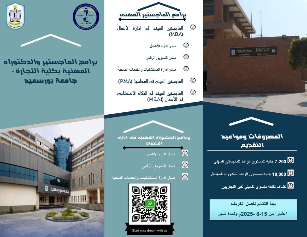 انطلق نحو التميز مع برامج الماجستير المهني والدكتوراه المهنية في كلية التجارة – جامعة بورسعيد! **