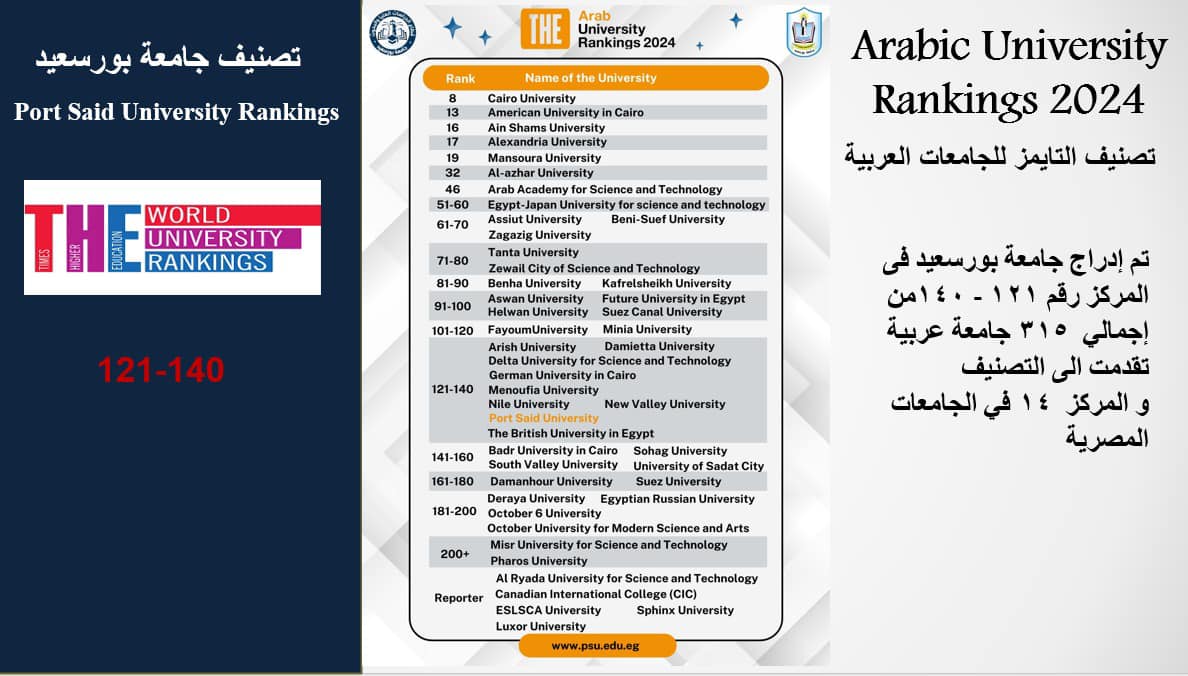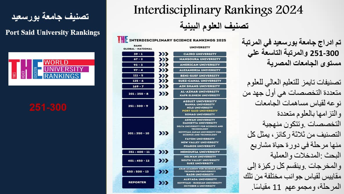 حصاد تصنيف جامعة بورسعيد ضمن الجامعات العالمية2024 – 2025
