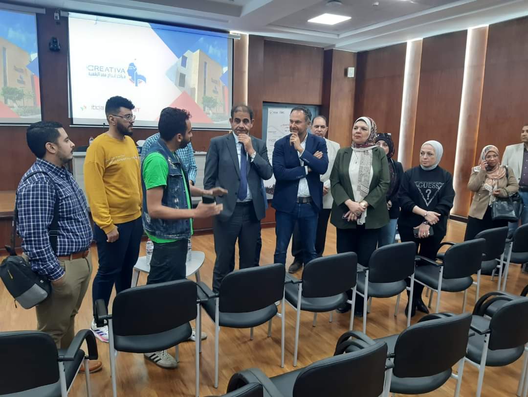 عقب ذلك تفقد سيادته مركز إبداع مصر الرقمية كرياتفيا ببورسعيد الذي بدوره التعاون مع الجامعة في تعزيز التكنولوجبا في جميع المجالات وتعلمها وتشجيع ريادة الأعمال ونشر ثقافة الإبداع بين الشباب و يضم المركز ثلاثة كيانات كبري تابعة لوزارة الاتصالات وهى معهد تكنولوجياالمعلومات (ITI)و هيئة تنمية صناعة تكنولوجيا المعلومات (ITIDA) المعهد القومي للاتصالات (NTI)وقد تحدث مع الطلاب المشاركة في التدريبات وفي المشاريع الناشئة عقب ذلك توجه رئيس الجامعة وضيف الجامعة لزيارة كلية التمريض كان فى استقبالهم ا.د سناء عبد العظيم عميدة كلية التمريض أ.د امل خليل المشرف على قطاع التعليم والطلاب وفى لقاء مفتوح استمع رئيس الجامعة والمهندس / احمد طارق الى العديد من الاسئلة ودار حوار مفتوح عن الصناعة ومستقبلها وخارطة الطريق وروشته النجاح وغرس الامل والحماس فى شباب الوطن وامكانهم تحقيق نجاحات كبرى فى مختلف المجالات وحثهم على التسلح بالعلم والمهارات والتدريب ومهارات معرفة اللغات الاجنبية.