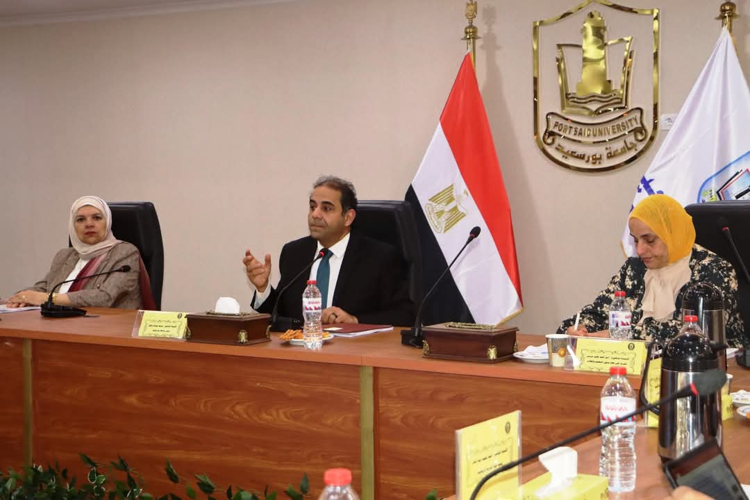 كما استمع المجلس من خلال أ.د احمد الروبى عميد كلية التربية النوعية لرؤية الكلية وكيفية تطوير البرامج بها واستغلال كافة امكانات اقسام الكلية المختلفة لما تذخر به الكلية من ابداعات واستمع المجلس ايضا الى أ.د احمد عبد القادر عميد كلية العلوم الرياضية لتقرير حول البرنامج الخاص بالمبادرة لاجراء قياسات الوزن والطول للطلاب المستجدين بجامعة بورسعيد.