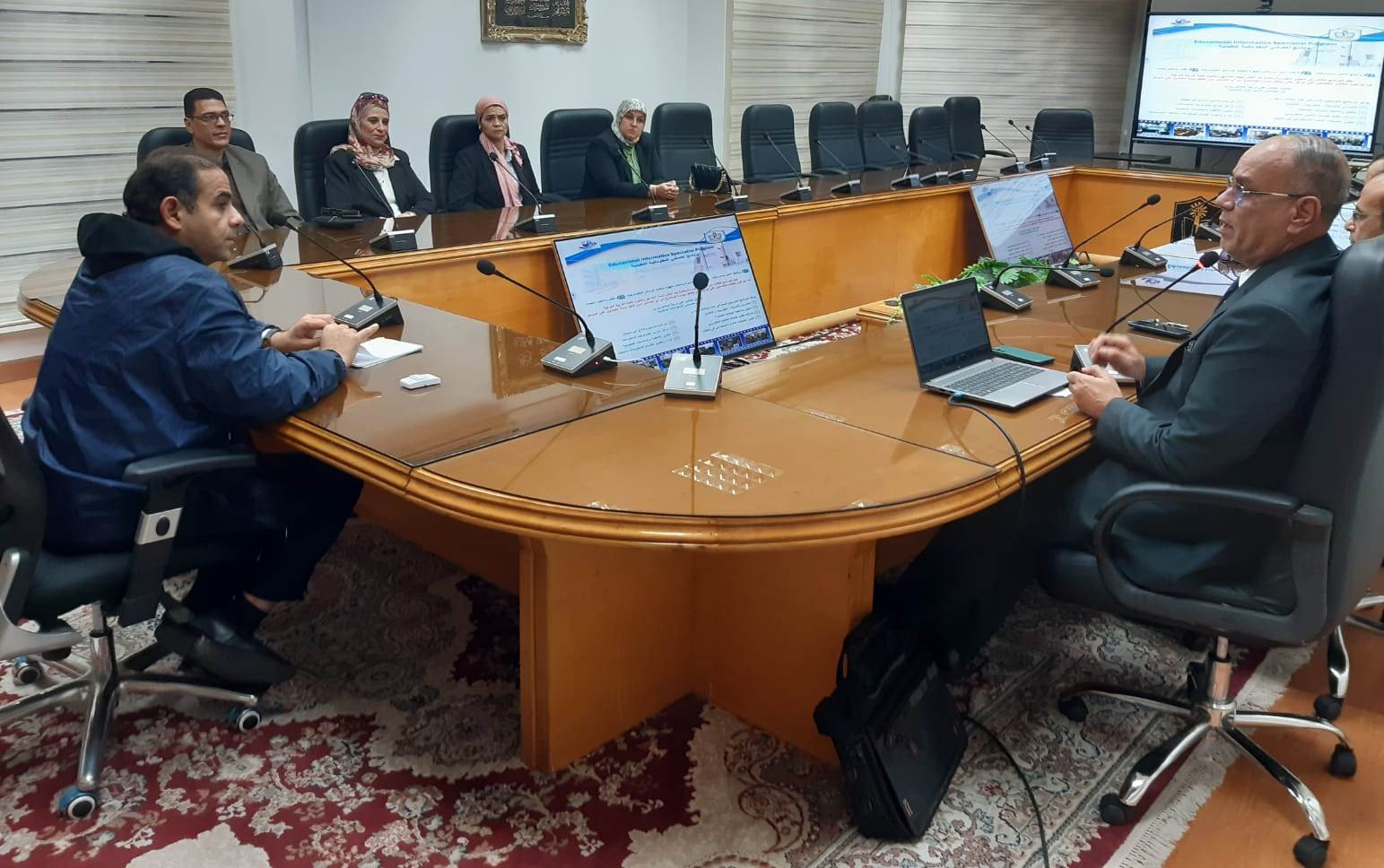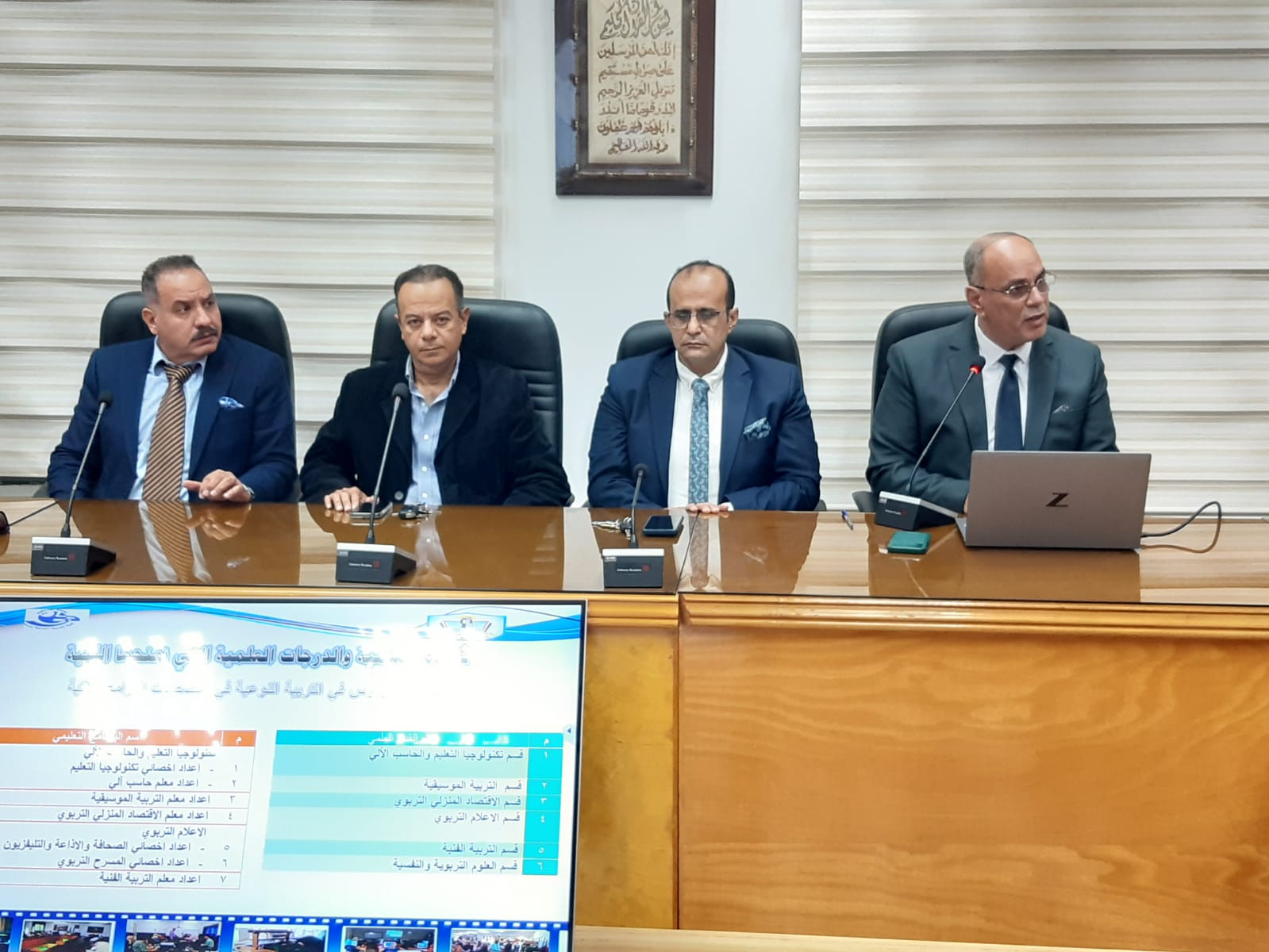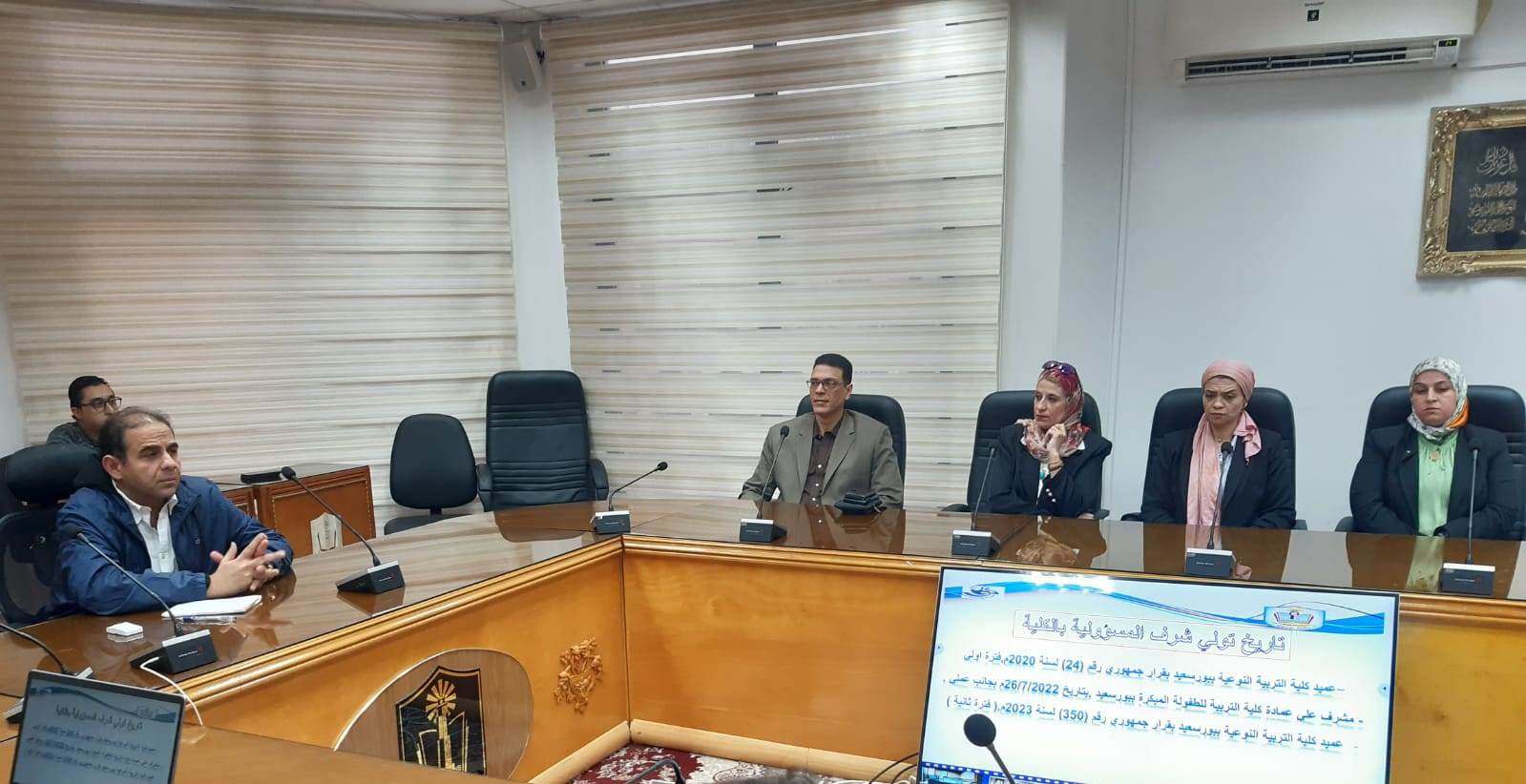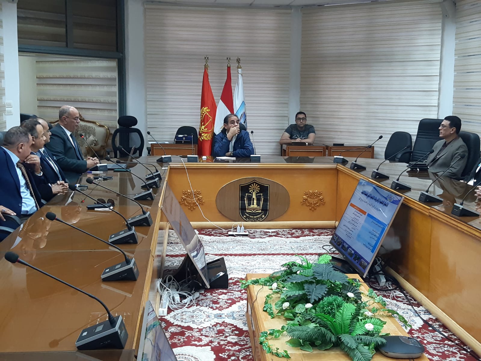 عقد السيد الاستاذ الدكتور / شريف صالح رئيس جامعة بورسعيد اجتماعا موسعا مع الاستاذ الدكتور / احمد الروبى عميد كلية التربية النوعية والسادة الوكلاء ورؤساء الاقسام العلمية بالكلية