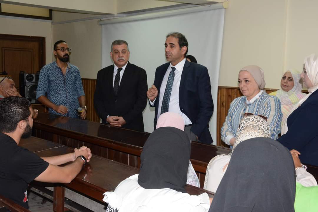 جاء ذلك خلال تفقد السيد الاستاذ الدكتور / شريف صالح رئيس جامعة بورسعيد ترافقة الاستاذة / سامية المصيلحى أمين عام الجامعة لكليتى الطب البشرى والعلاج الطبيعى وكان فى استقبال سيادته الاستاذ الدكتور / خالد صبرى عميد كلية الطب والاستاذ الدكتور / وائل شندى عميد كلية العلاج الطبيعى.