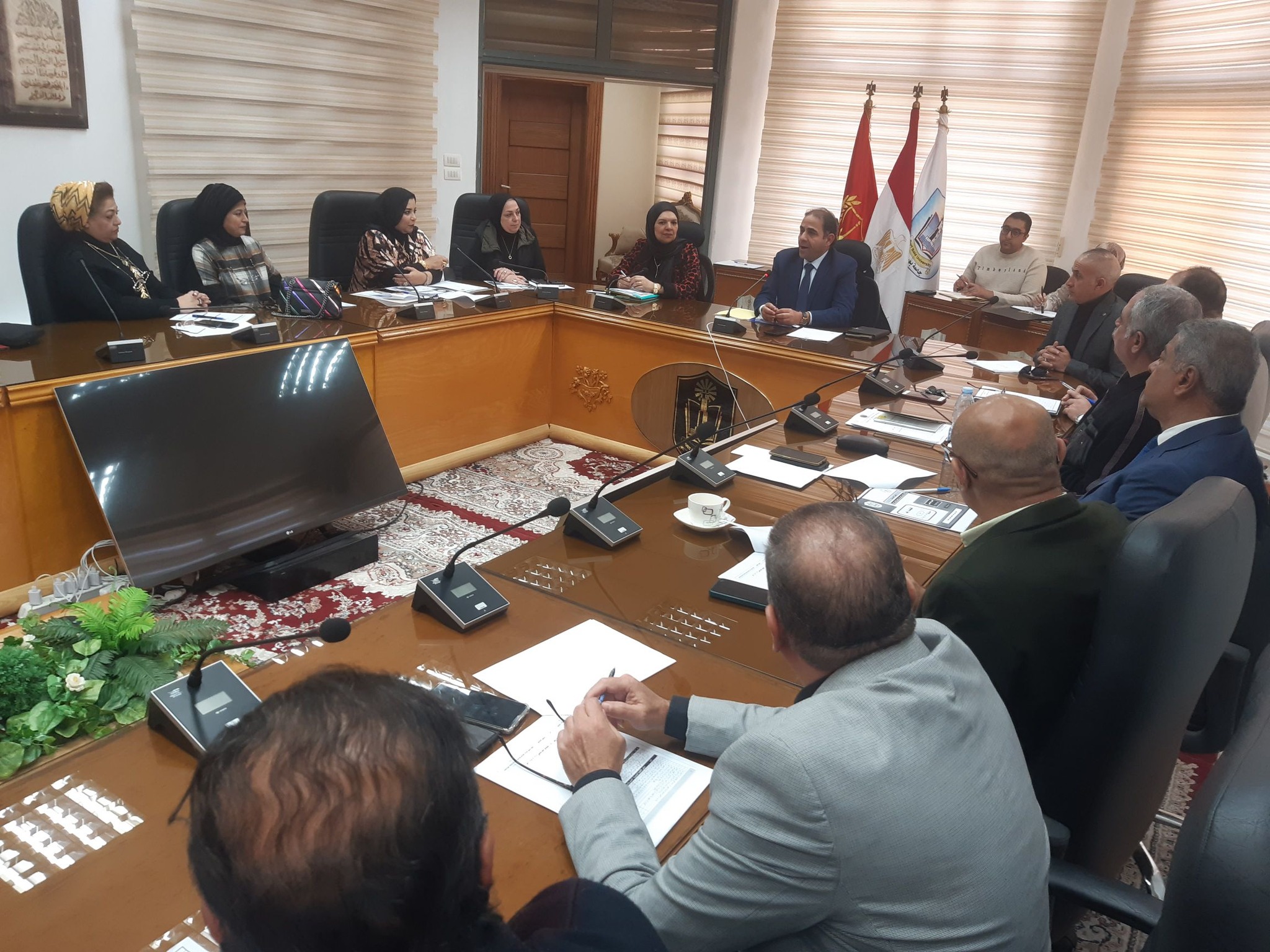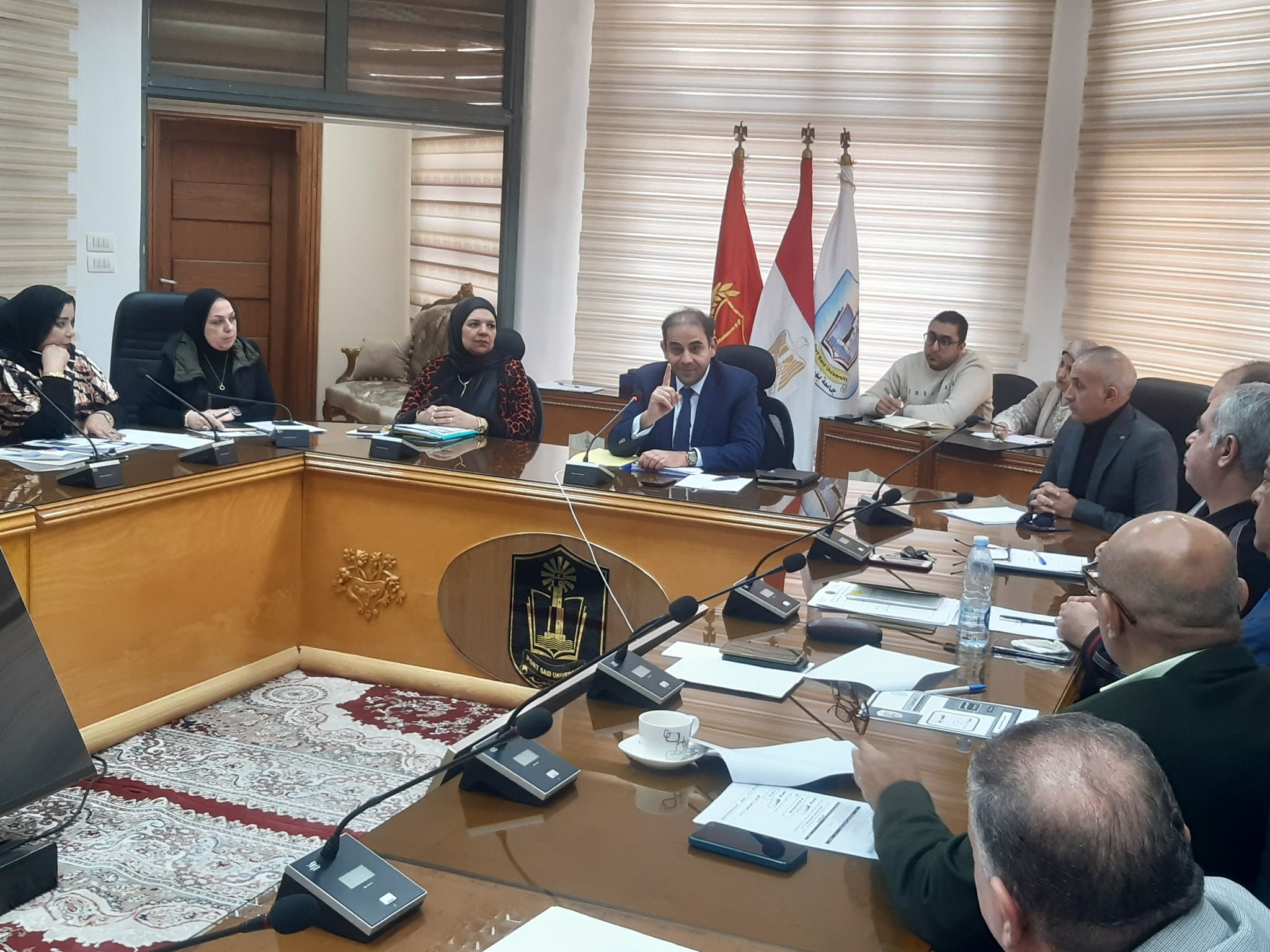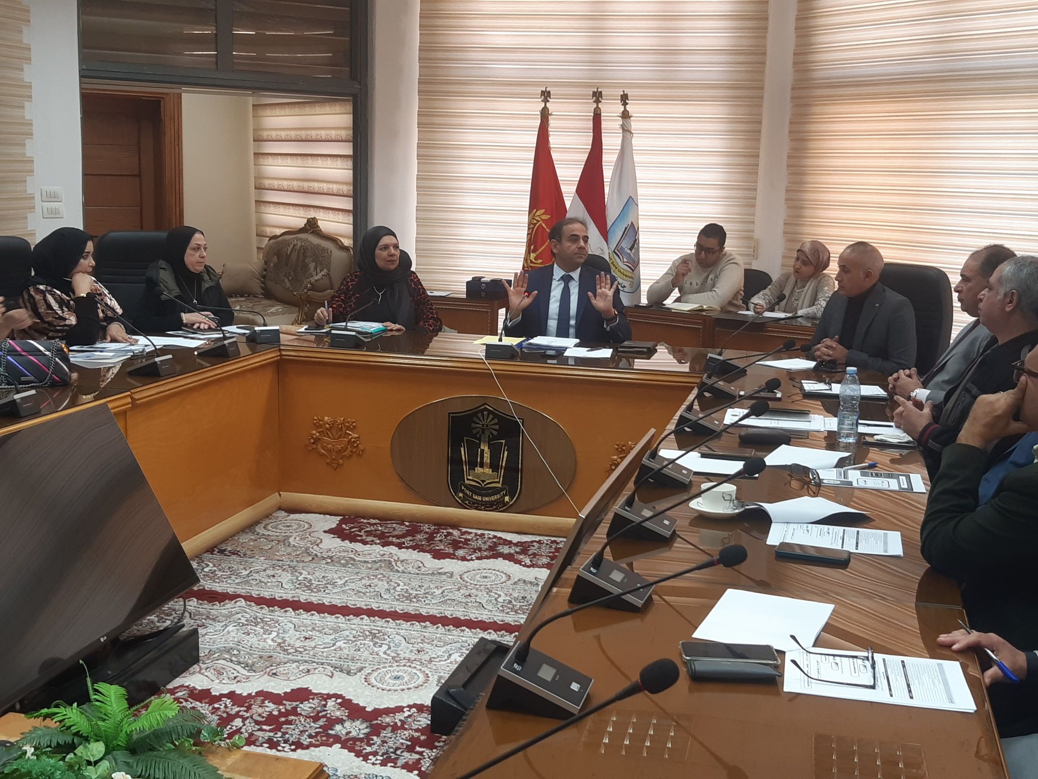 ترأس الاستاذ الدكتور شريف صالح رئيس جامعة بورسعيد الاجتماع الدورى لمجلس شئون خدمة المجتمع وتنمية البيئة الجلسة رقم (151) بتاريخ 23/12/2024 بحضور أ.د راوية رزق نائب رئيس الجامعة للدراسات العليا والبحوث والمشرف على قطاع خدمة المجتمع وتنمية البيئة والعميد اسلام بهنساوى رئيس مدينة بورفؤاد أ/ سامية المصيلحى امين عام الجامعة والسادة وكلاء القطاع بالكليات