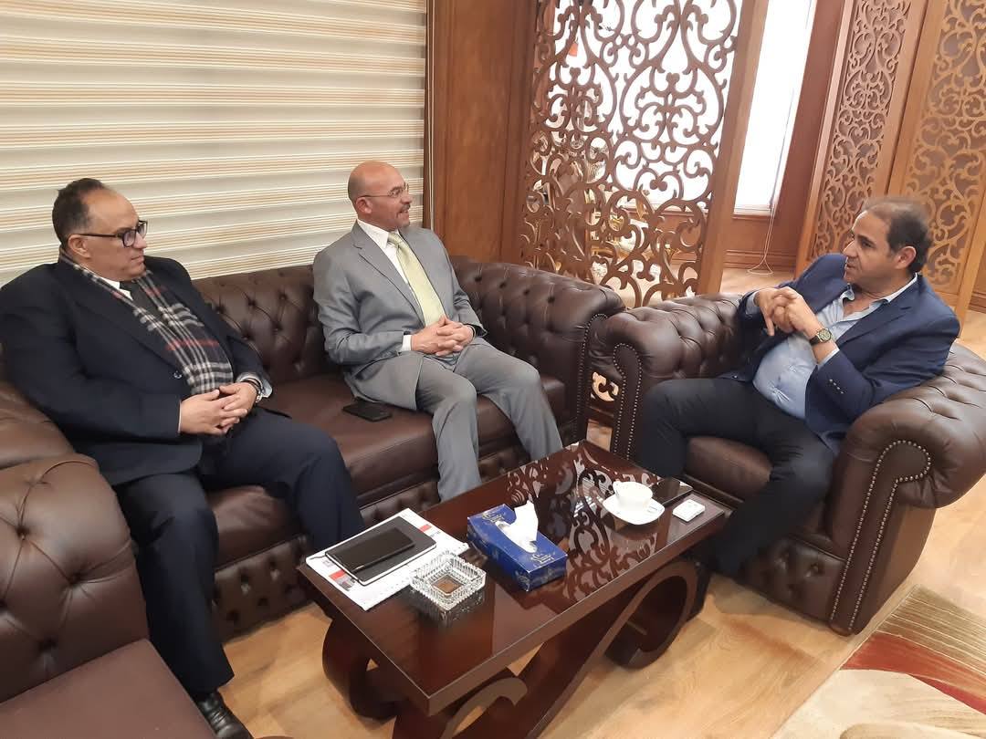 وذلك للتعرف على الاستعدادات النهائية لافتتاح المستشفى وايضا ما تم فى زيارة ممثلى شركة انتر هيلثى العالمية دكتور تامر التويهى والدكتور حسام سعيد وذلك بعد ان استقبلهم سيادته بعد زيارتهم لمستشفى الجامعة والتى رافقهم فيها أ.د ايهاب الحنفى عميد كلية الطب أ.د بسمة بدر الدين المدير التنفيذى للمستشفى وذلك للتعرف على جاهزية واستعداد المستشفى لبدء العمل والتشغيل الفعلى لها حيث تفقدوا خلال الزيارة العيادات الخارجية بكافة اقسامها والعناية المركزة وحجرات العمليات وقسطرة القلب وقد ابدوا اعجابهم لما وصلت اليه المستسفى فى فترة وجيزة من اعمال تمهيدا لافتتاحها القريب