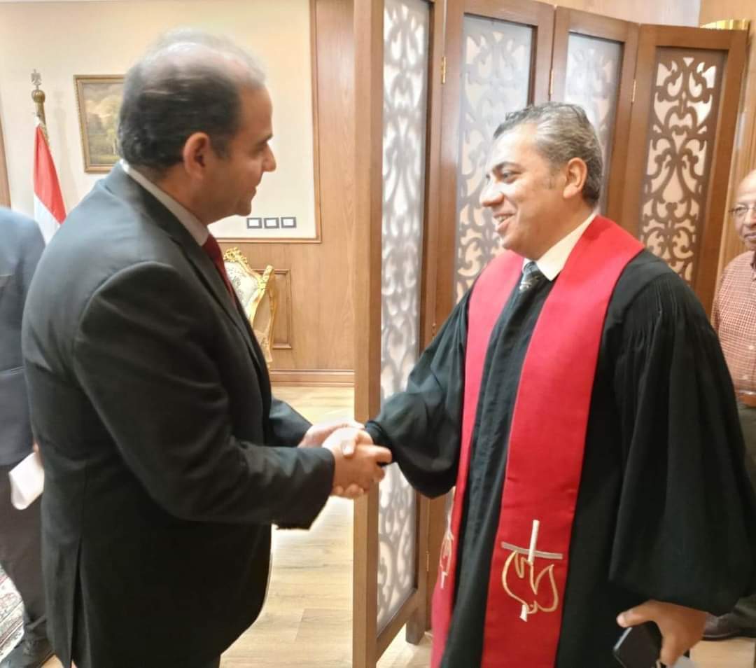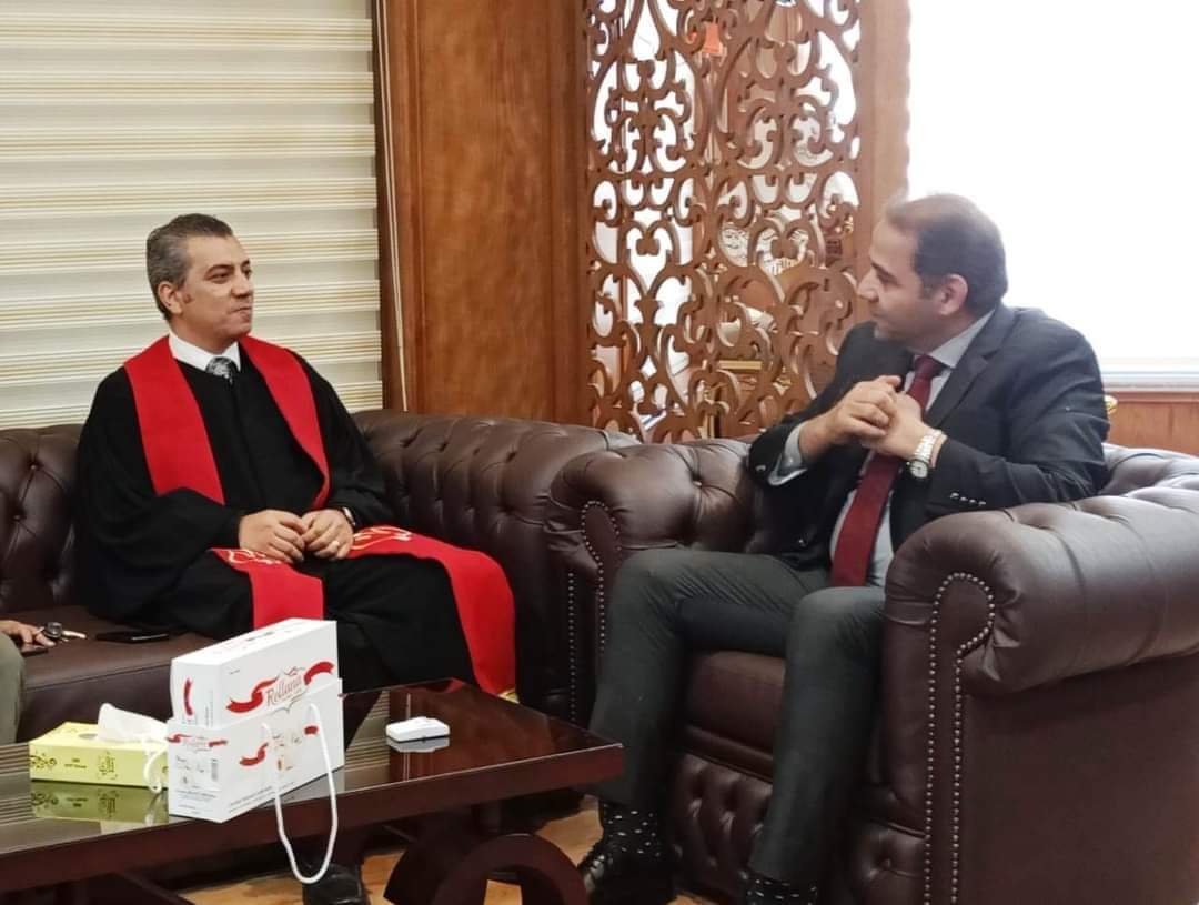 استقبل السيد الأستاذ الدكتور / شريف صالح رئيس جامعة بورسعيد بمكتبة صباح اليوم القس / بهاء رشاد سيفين راعى الكنيسة الانجيلية ببورسعيد وذلك لتقديم التهنئة لسيادته بمناسبة تولية رئاسة جامعة بورسعيد وتعزيز سبل التعاون المشترك لخدمة المجتمع . وخلال اللقاء رحب رئيس الجامعة بزيارة وفد الكنيسة الانجيلية برئاسة القس / بهاء رشاد سيفين لمقر الجامعة ومثمن دورهم في خدمة المجتمع البوسعيدي.