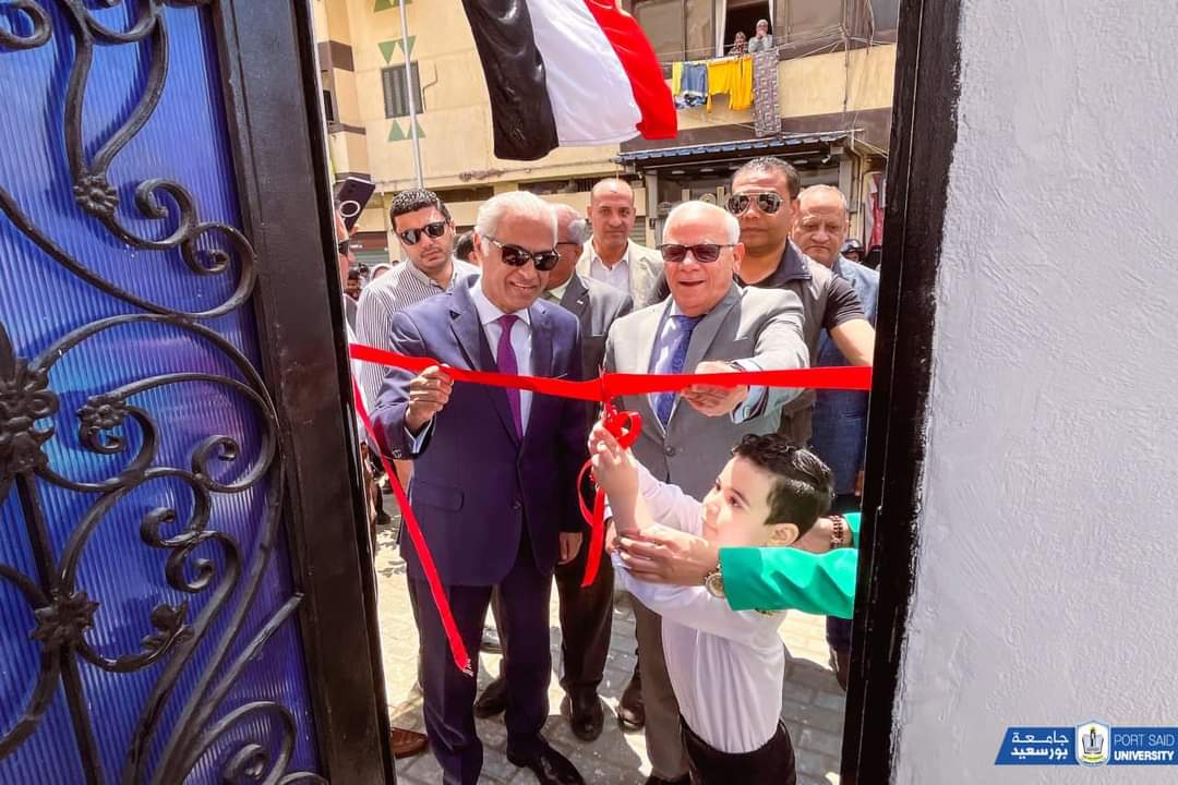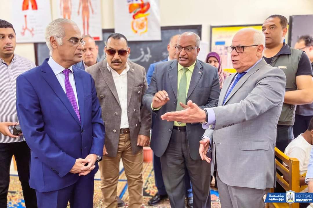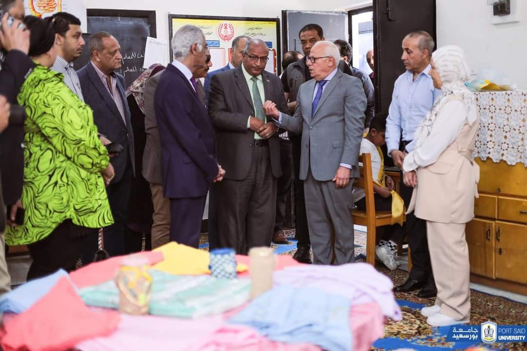 حيث قام رئيس الجامعة يرافقه محافظ بورسعيد بتفقد الفصل والتجهيزات والتطوير الذي قامت به جامعة بورسعيد في إطار المشاركة المجتمعية للبيئة المحيطة حيث تعتبر أهم أولويات الجامعة بالأخص في الجانب التعليمي والعلمي وتفقدوا معرض المنتجات والمشغولات اليدوية التي قام الطلاب بانتاجها بمشاركة المتخصصين من المدرسين بالفصل.