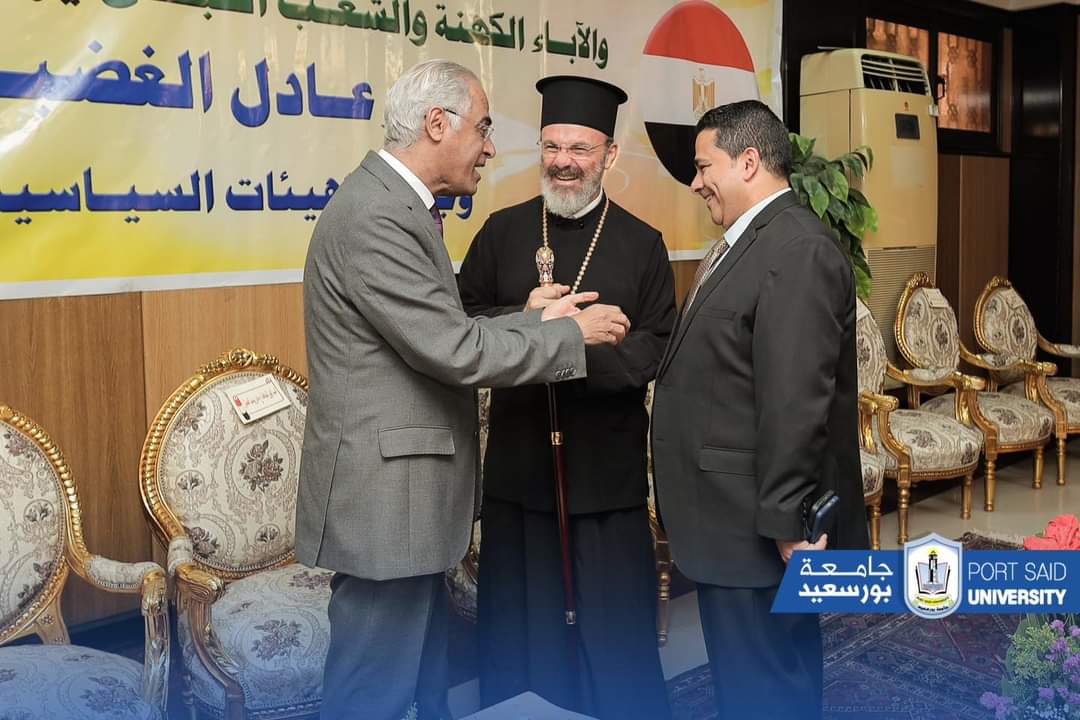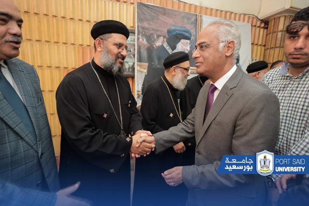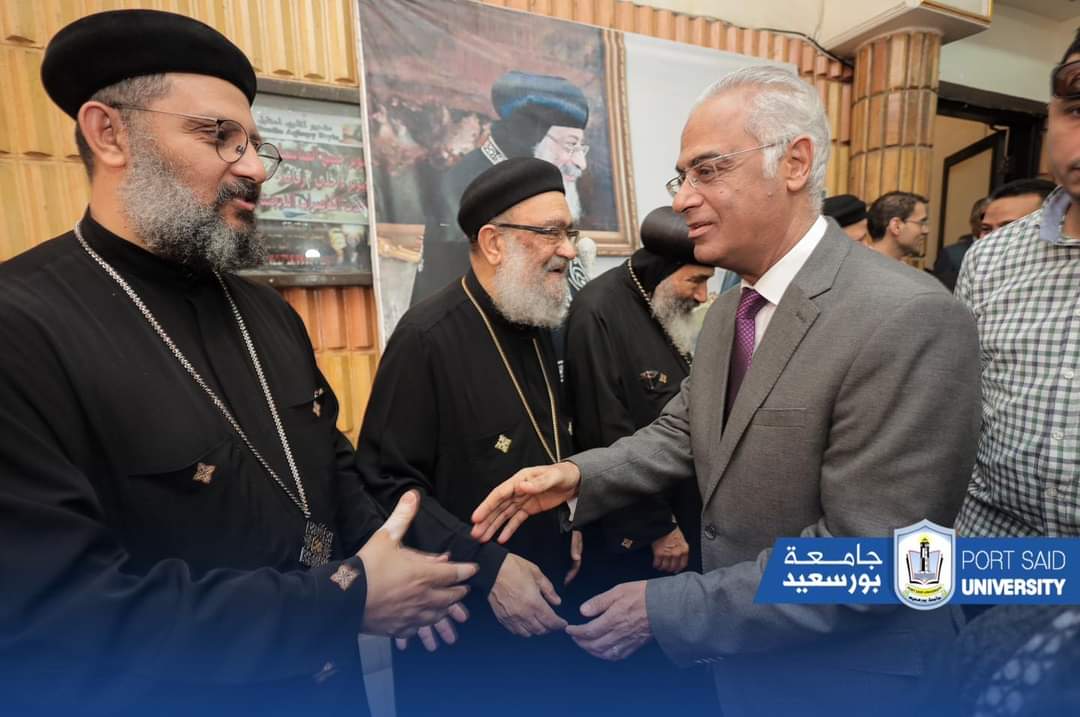 زار الأستاذ الدكتور أيمن إبراهيم ، رئيس جامعة بورسعيد ،اليوم، الكنيسة الكاتدرائية بمحافظة بورسعيد، وذلك لتقديم التهنئة للأخوة المسيحيين بمناسبة عيد القيامة المجيد، حيث كان في إستقباله الانبا تادرس مطران بورسعيد وذلك بحضور اللواء عادل الغضبان محافظ بورسعيد ،المهندس عمرو عثمان نائب المحافظ، واللواء مازن صبري مدير أمن بورسعيد واللواء عاطف وجدي السكرتير العام للمحافظة، وقيادات الكنيسة ورجال الدين المسيحي والقيادات الأمنية ورجال الأوقاف ولفيف من القيادات التنفيذية والشعبية.