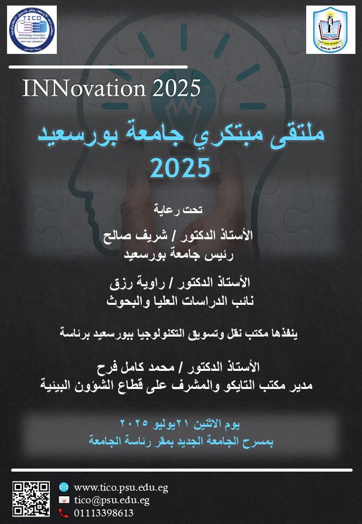 دعوة لابتكارات الباحثين ومشروعات التخرج الطلابية للمشاركة في ملتقى مبتكري جامعة بورسعيد ٢٠٢٥