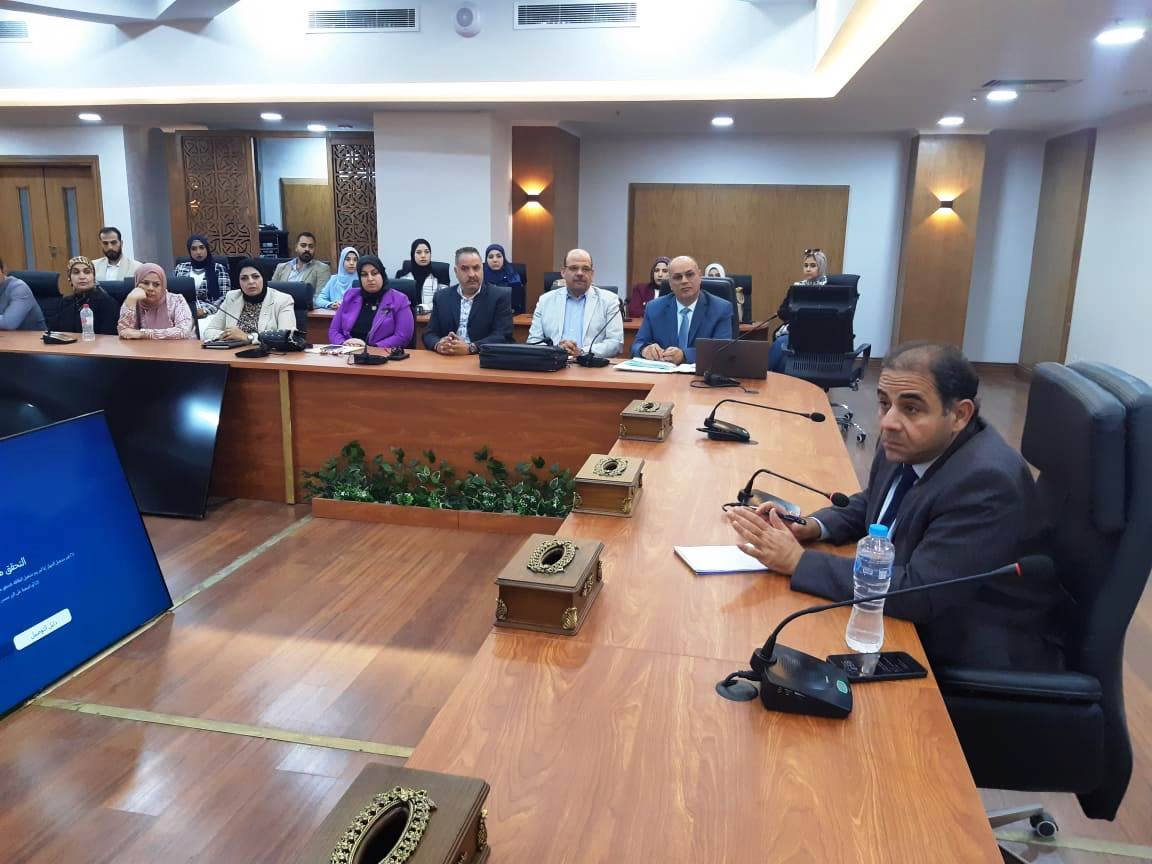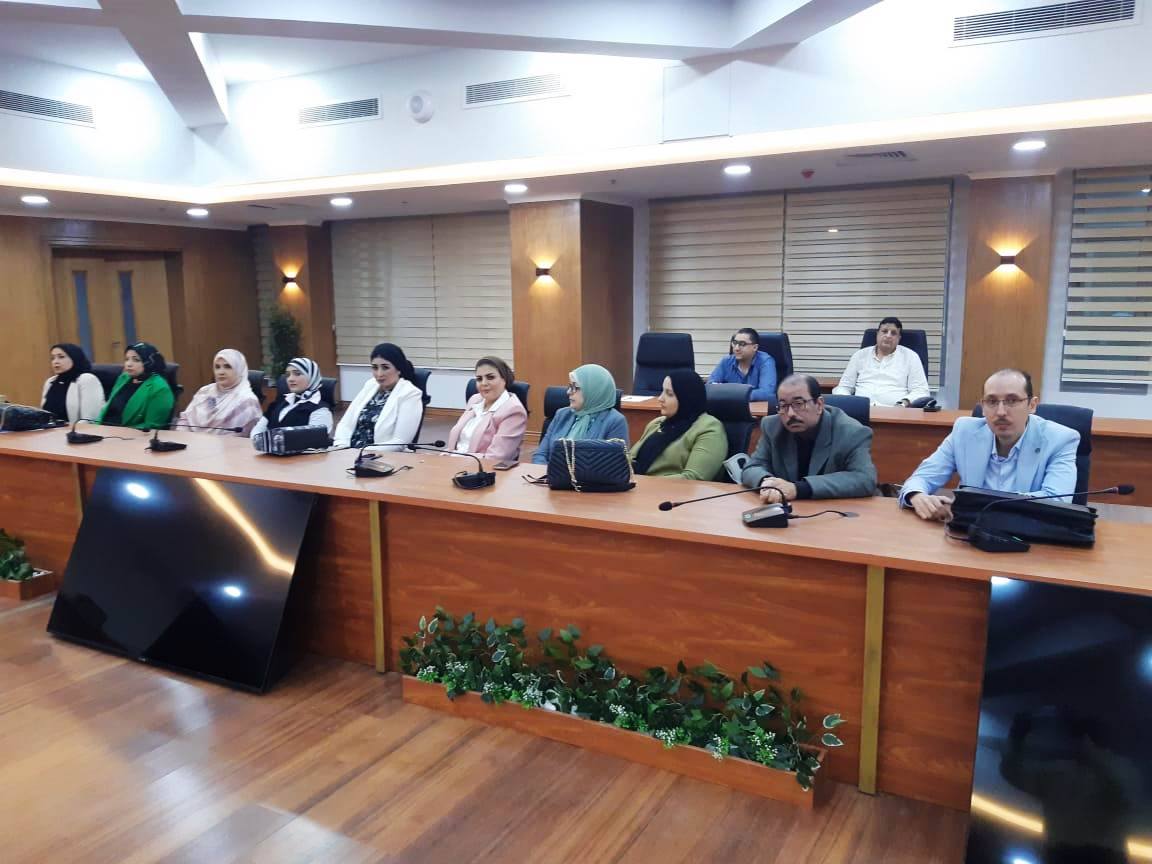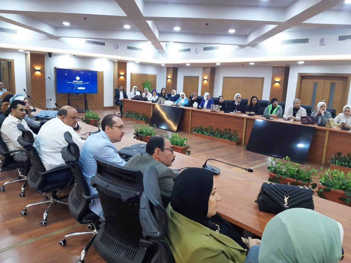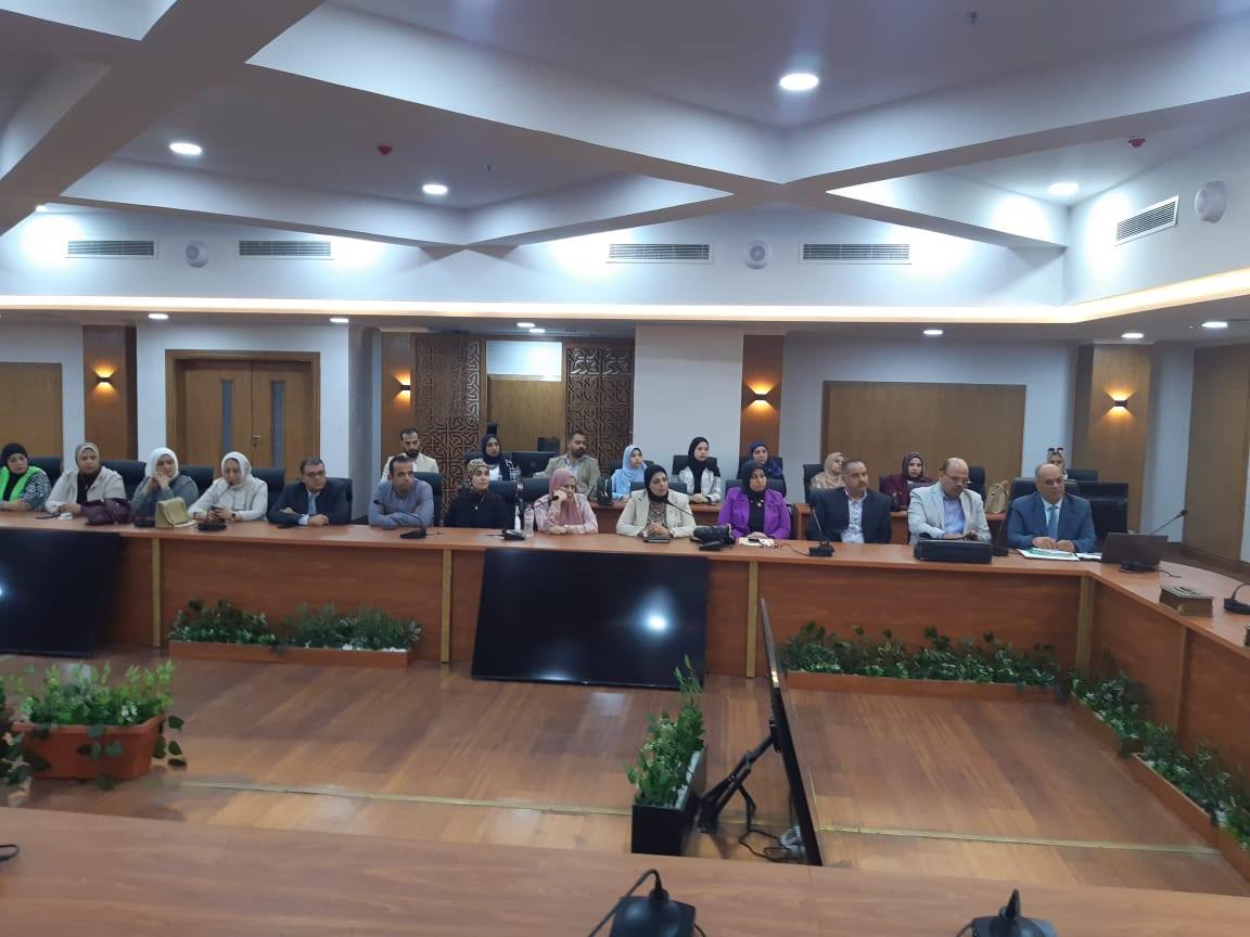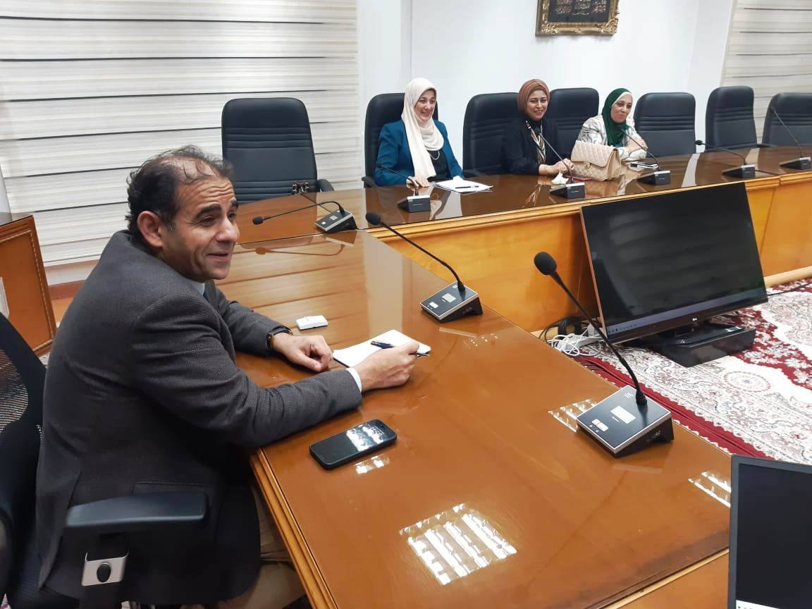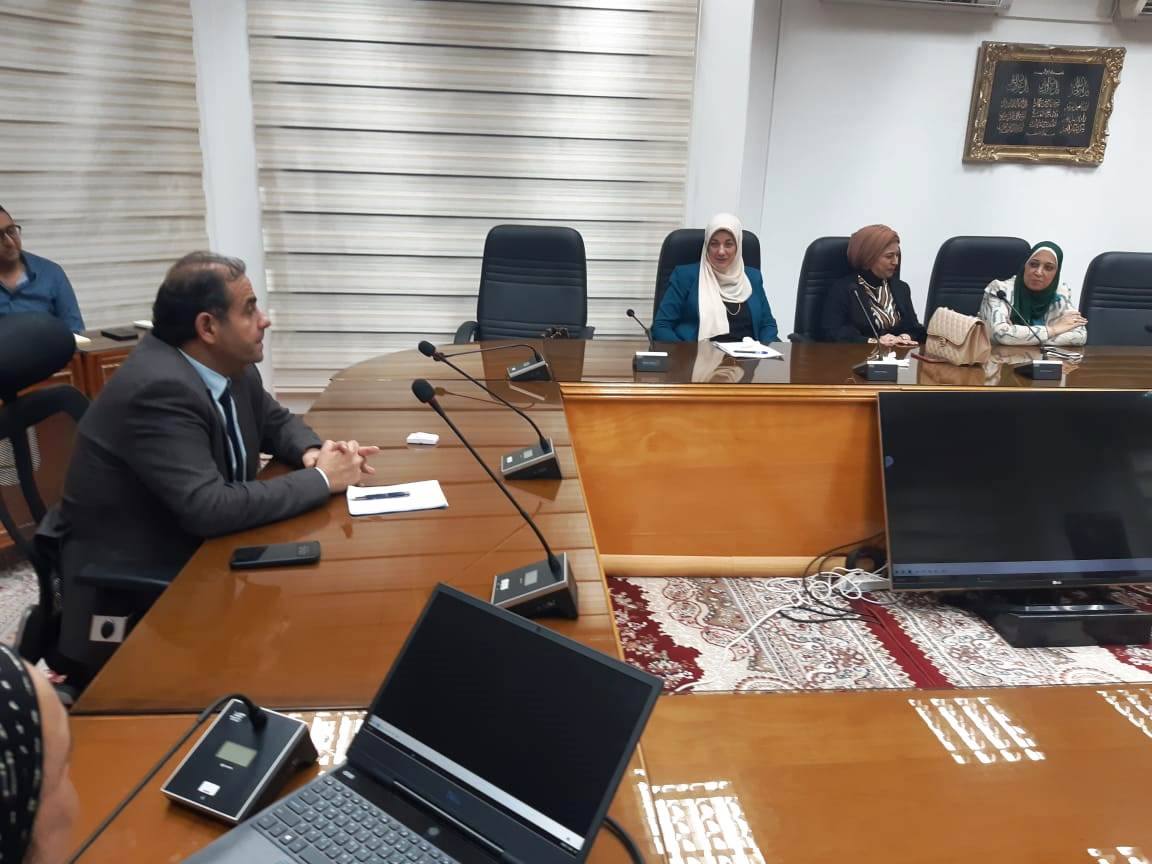 والتى قدمت فيه عميدة الكلية عرض تعريفى عن الكلية وانجازاتها وخلال اللقاء أكد رئيس الجامعة على ضرورة اعطاء الفرصة للجيل الجديد من اعضاء هيئة التدريس والهيئة المعاونة