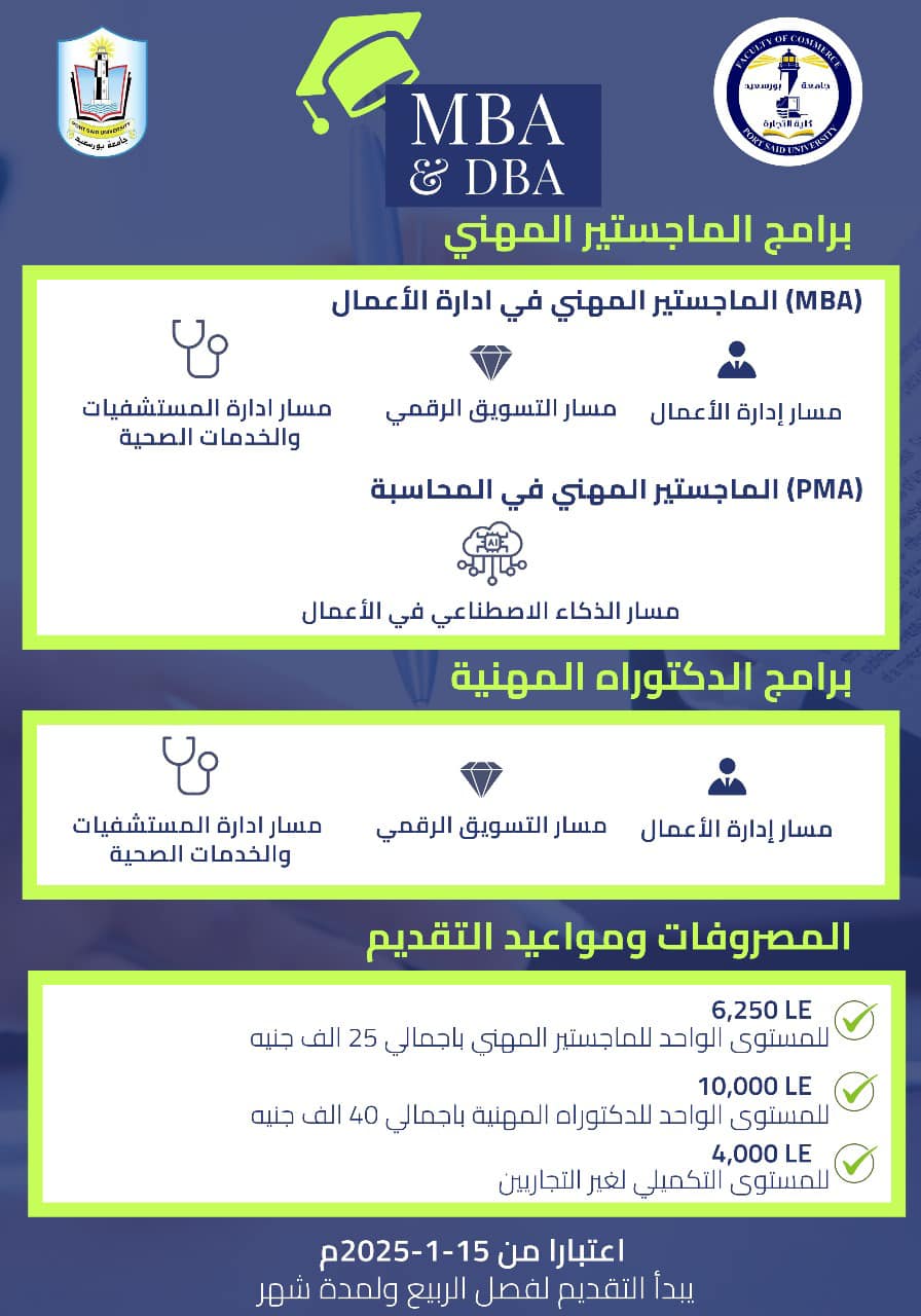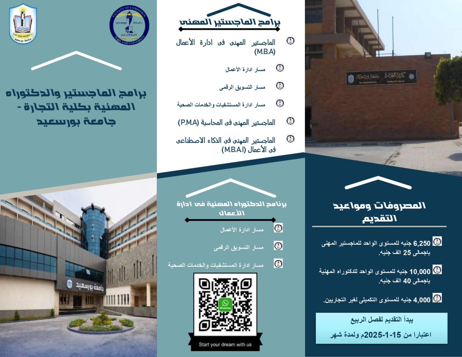 التقديم لبرامج الماجستير المهني والدكتوراة المهنية بكلية التجارة