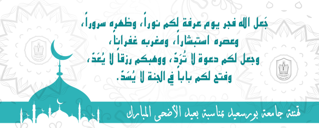 نتمنى لكم أسرة جامعة بورسعيد أطيب الأمنيات بمناسبة حلول العام الهجري الجديد 1442.