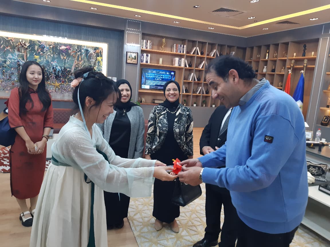 جاء ذلك بحضور الأستاذ الدكتور بدر عبد العزيز بدر، عميد كلية الآداب، والأستاذ الدكتور أحمد حسن أنور، مستشار رئيس الجامعة للعلاقات الدولية، والدكتورة دينا بيومي، مدرس الأدب الصيني بالقسم، والدكتورة رضوى علاء الدين، مدرس اللغويات.