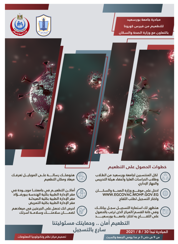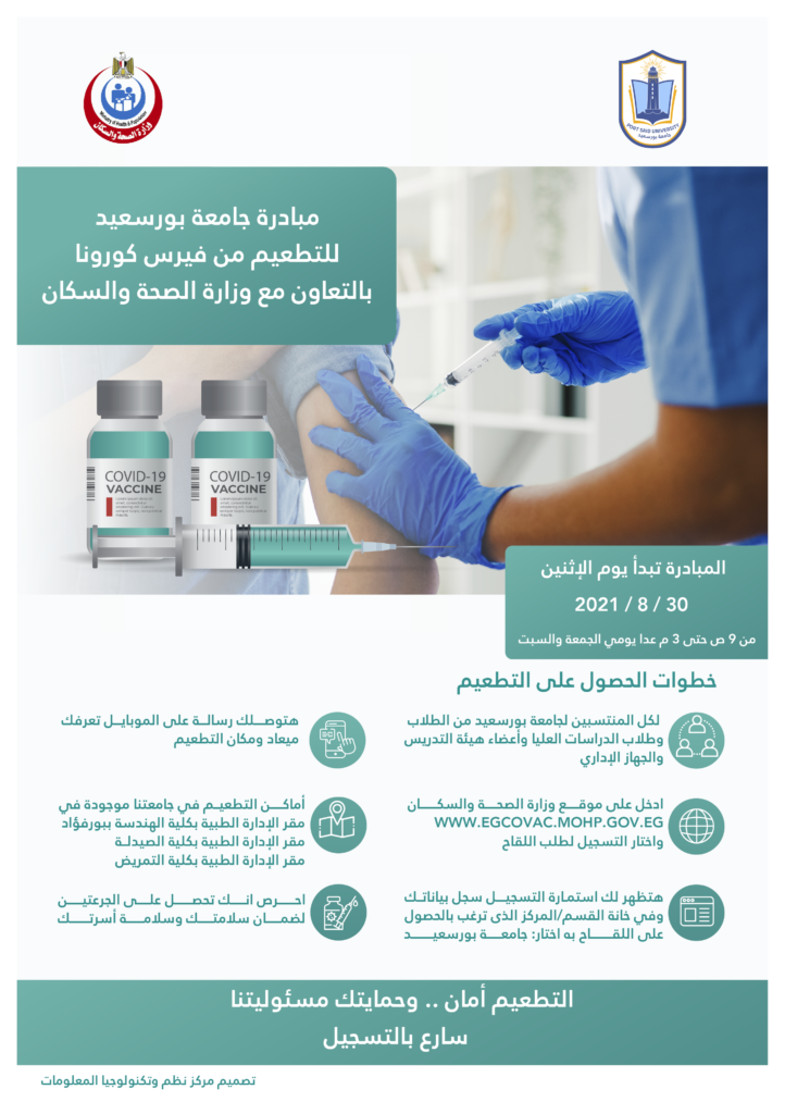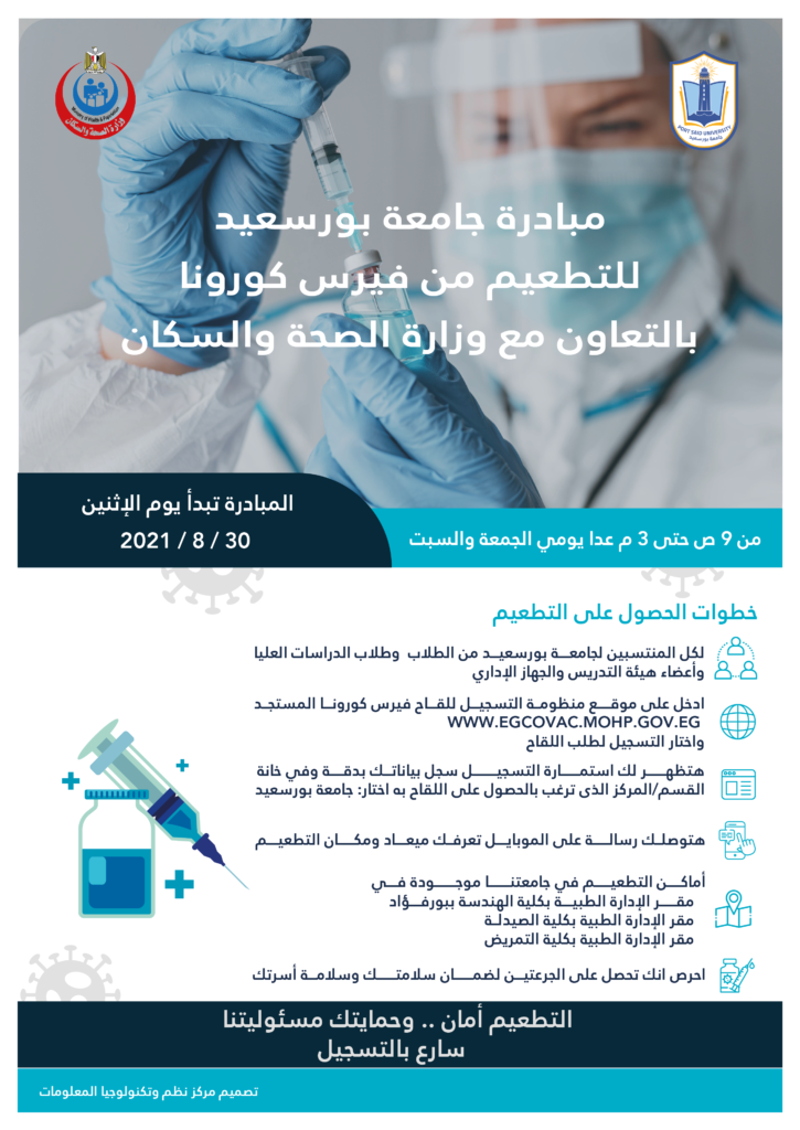 مبادرة جامعة بورسعيد للتطعيم من فايرس كورونا بالتعاون مع وزارة الصحة والسكان
