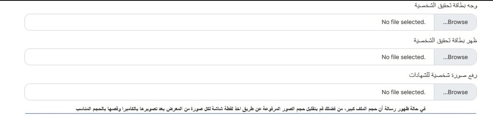 - يتم ادخال صورة البطاقة والصورة الشخصية بمساحة قليلة مخزنه على التليفون الشخصى.