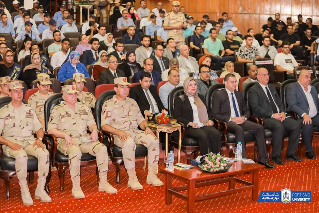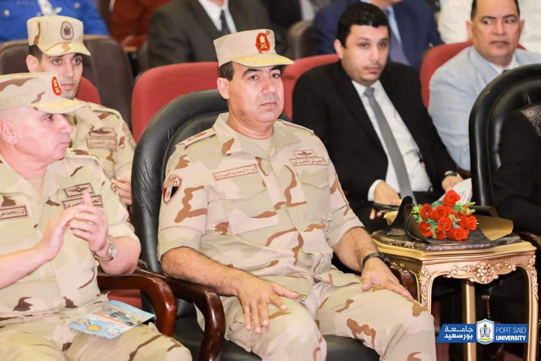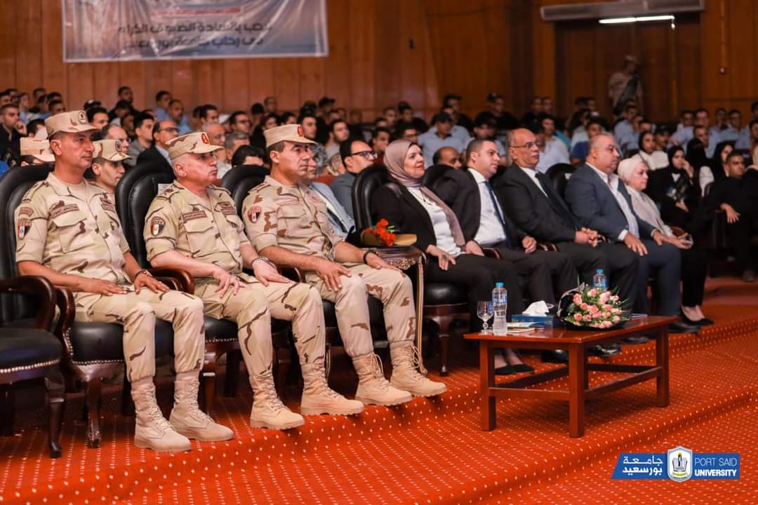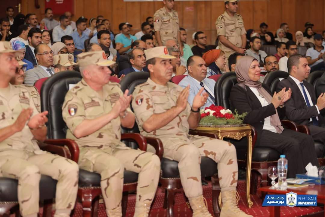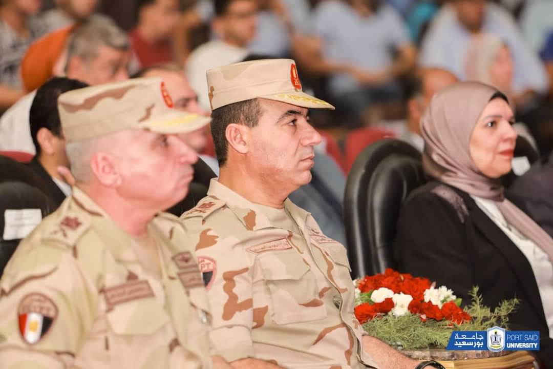 وذلك بحضور المهندس عمرو عثمان نائب محافظ بورسعيد ، والاستاذة سامية المصيلحي امين عام الجامعة وعدد من قيادات قوات الدفاع الشعبي والعسكري، وعدد من الساده عمداء الكليات ووكلائها، وأعضاء هيئة التدريس، والطلاب، وذلك اليوم الأربعاء بمسرح الجامعة.أكد اللواء أسامة عبد الحميد داوود أن الحفاظ على الأوطان ليس بالأمر الهيِّن،مشيرًا سيادته إلى أن مصر تواجه الكثير من التحديات، ولذلك تهدف الندوات التثقيفية للقوات المسلحة إلى تحصين فكر الشباب من الأفكار المغلوطة التي تنال من الوطن، وتوعية الشباب بما تواجهه مصر من دعوات التزييف والتضليل عبر منصات التواصل الاجتماعي للنيل القيم المجتمعية الراسخة.