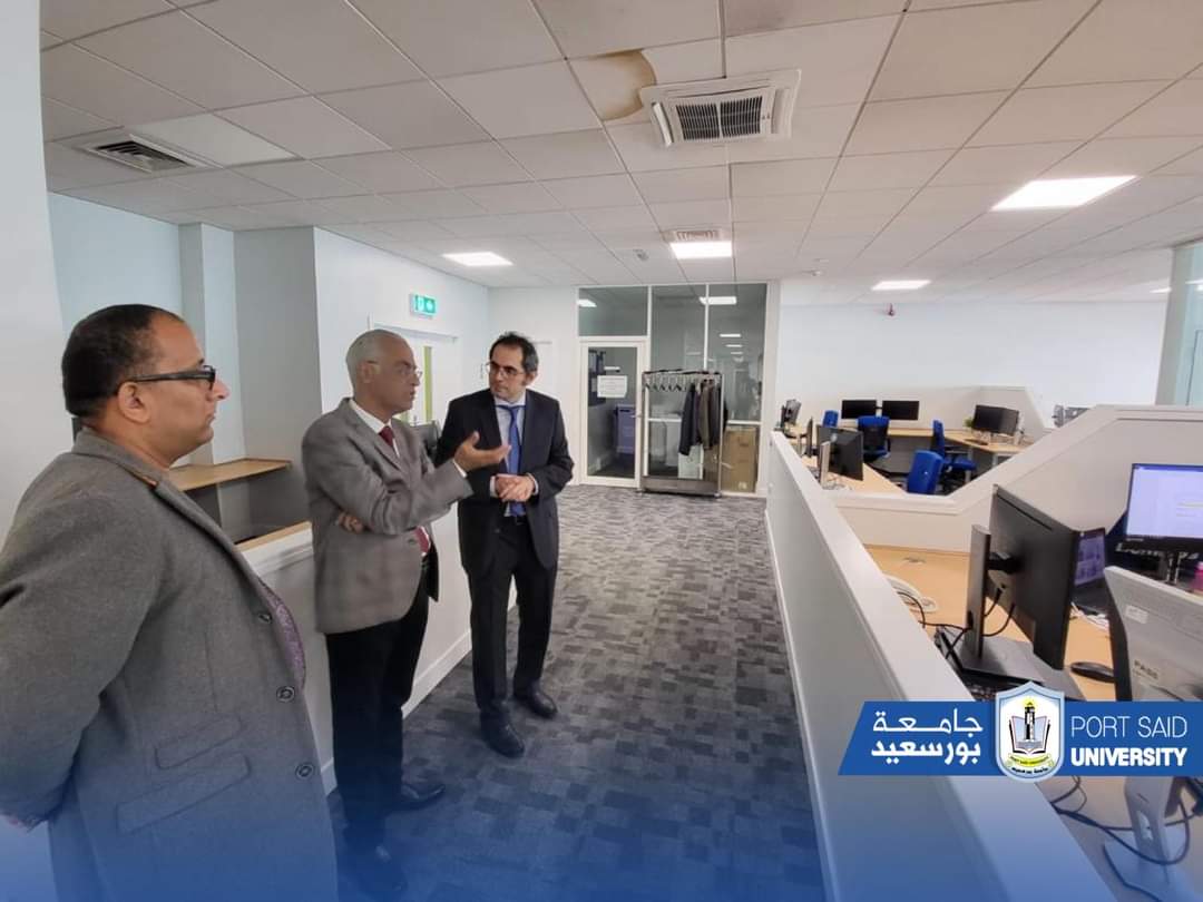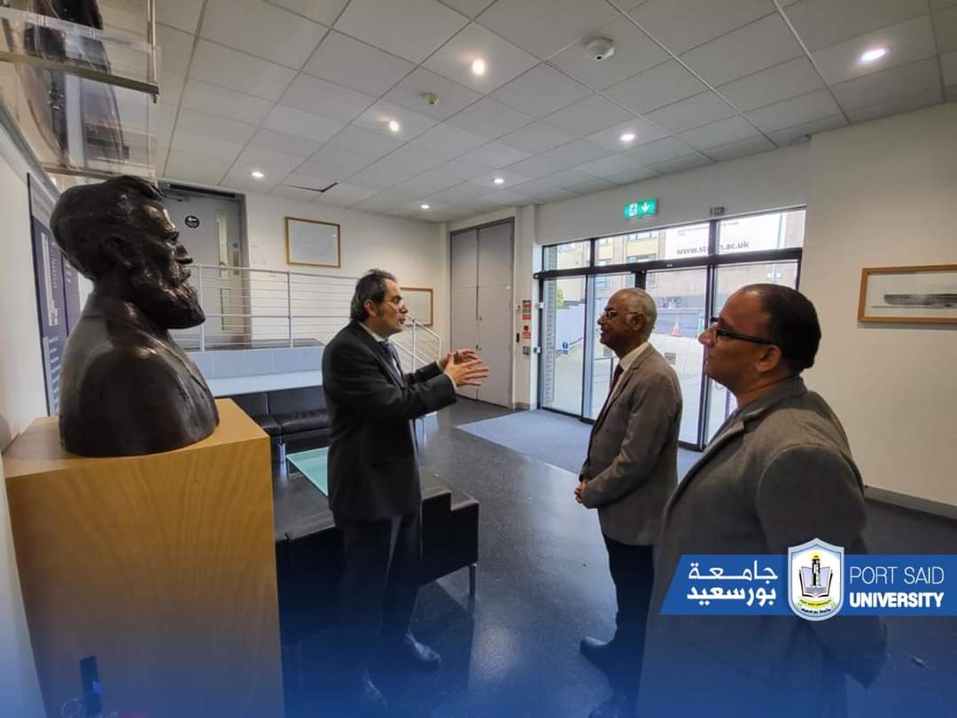 وقد كان في إستقبال سيادته الاستاذ الدكتور إسلام أمين الاستاذ بجامعة بورسعيد والمعار لجامعة ستراثكلايد، كما رافق رئيس الجامعة، الدكتور محمد السقا المدرس بكلية الهندسة – جامعة بورسعيد وعضو الفريق البحثي للمشروع.