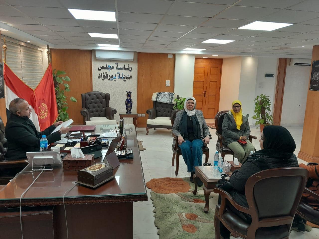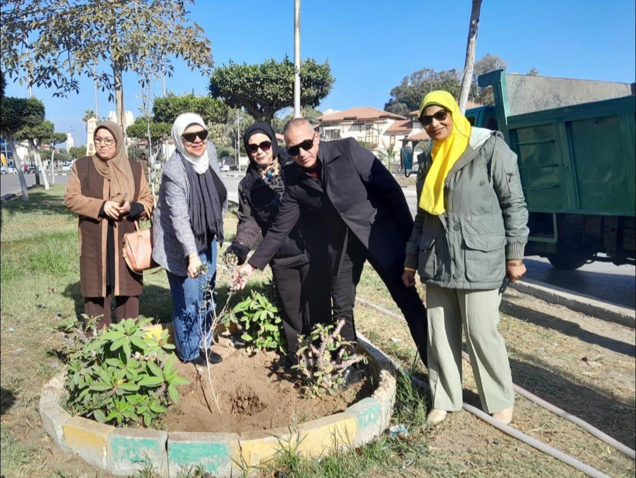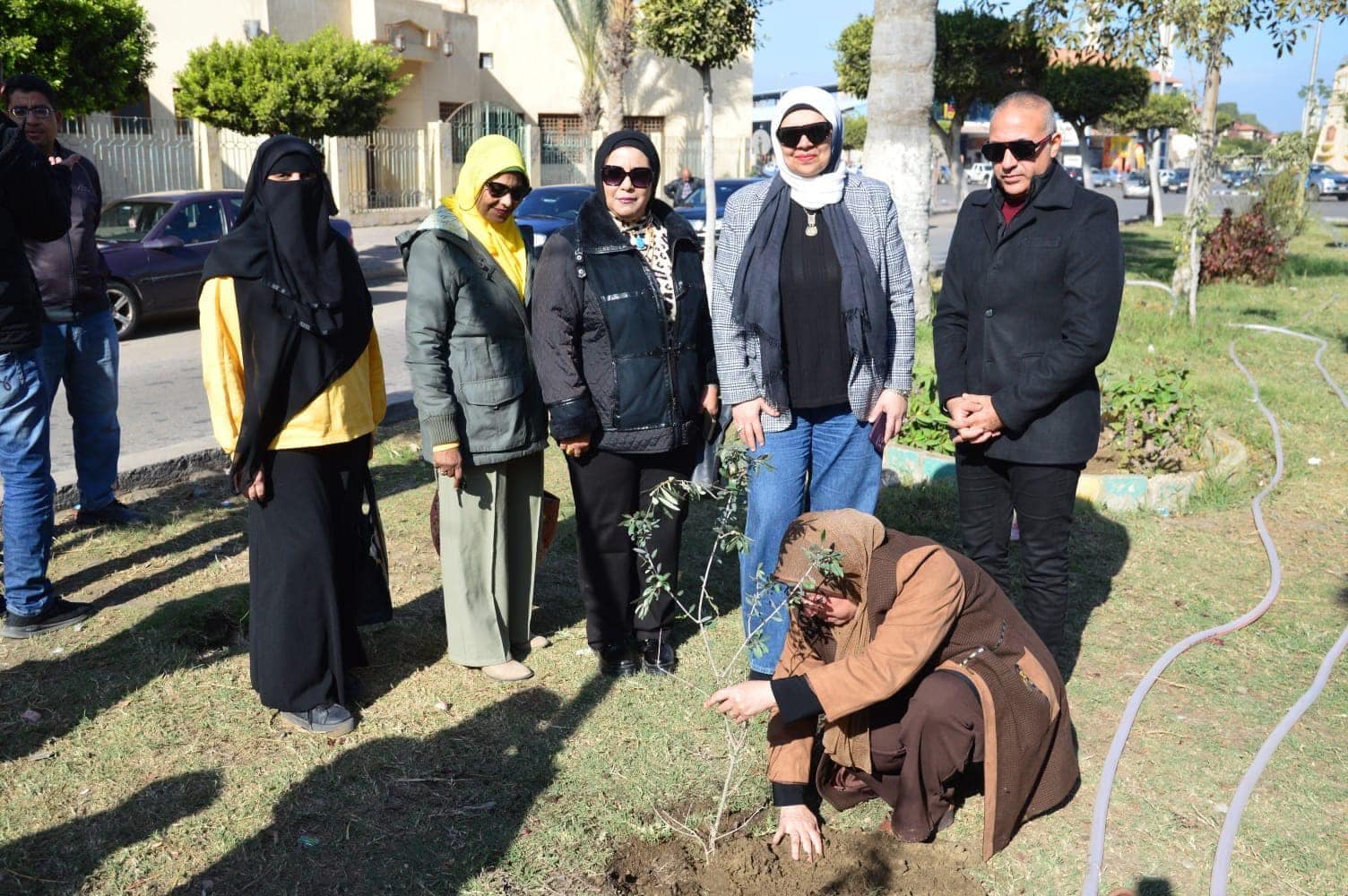 Under the auspice of Major General Moheb Habashi Khalil, Governor of Port Said, and Dr. Sherif Saleh, President of Port Said University, Prof. Dr Rawya Rizk, Vice President for Graduate Studies and Research and Supervisor of the Community Service and Environmental Development Sector, in cooperation with Dr Islam Bahnasawy, Mayor of Port Fouad, launched a campaign to plant fruit trees within the Al-Jazirah Housing area in the Craftsmen’s District and Algeria Street. This is within the framework of keenness to improve the civilized and aesthetic appearance of the city, and to create a healthy green environment for citizens, in conjunction with the Egyptian state’s orientation towards sustainable development and living in a clean, green environment.