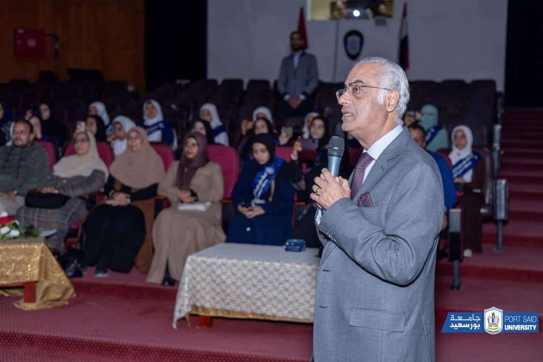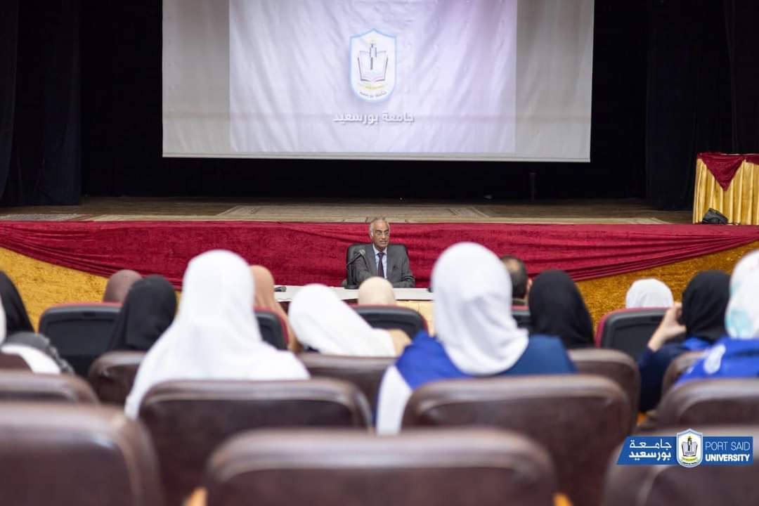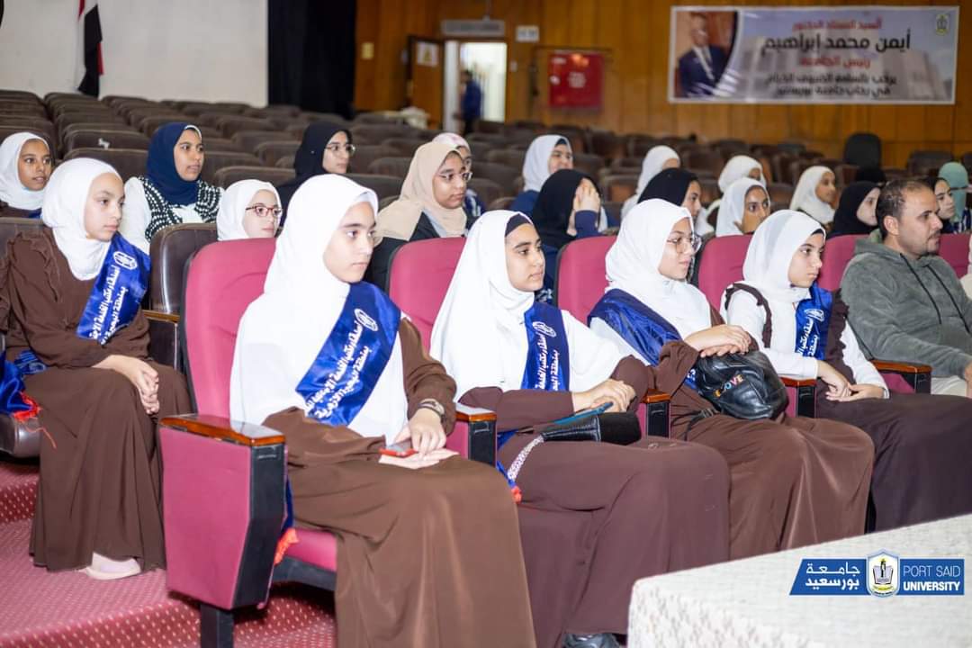 Today, Tuesday, Prof. Dr Ayman Mohamed Ibrahim, President of Port Said University, received a delegation of female students from Al-Buhaira Al-Azhar Institutes. This came as part of the activities of the awareness camp of the School Social Service Office for Al-Buhaira Al-Azhar Region, which was held at the headquarters of Al-Azhar Youth House in Port Said (Abed) from the 17th to December 22nd.