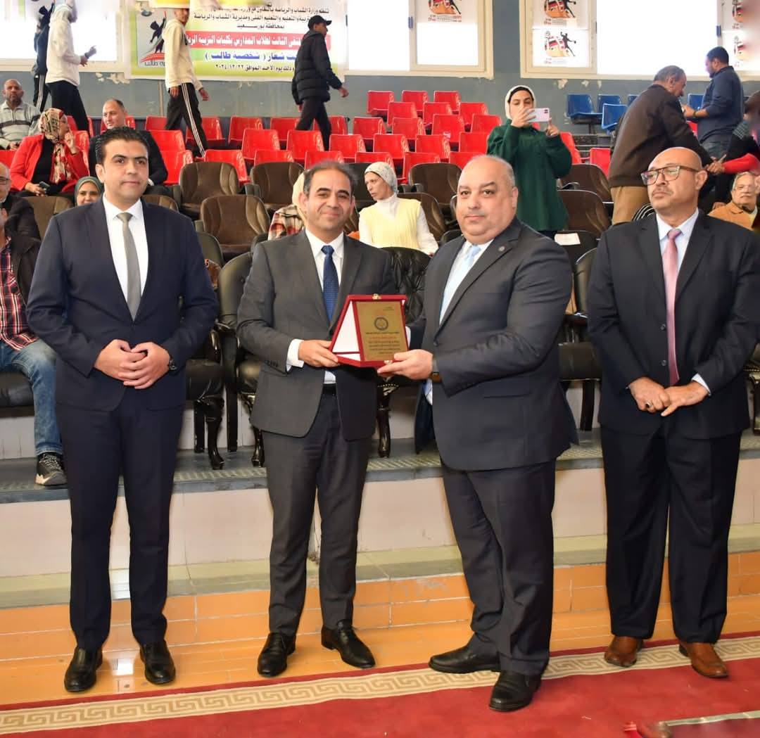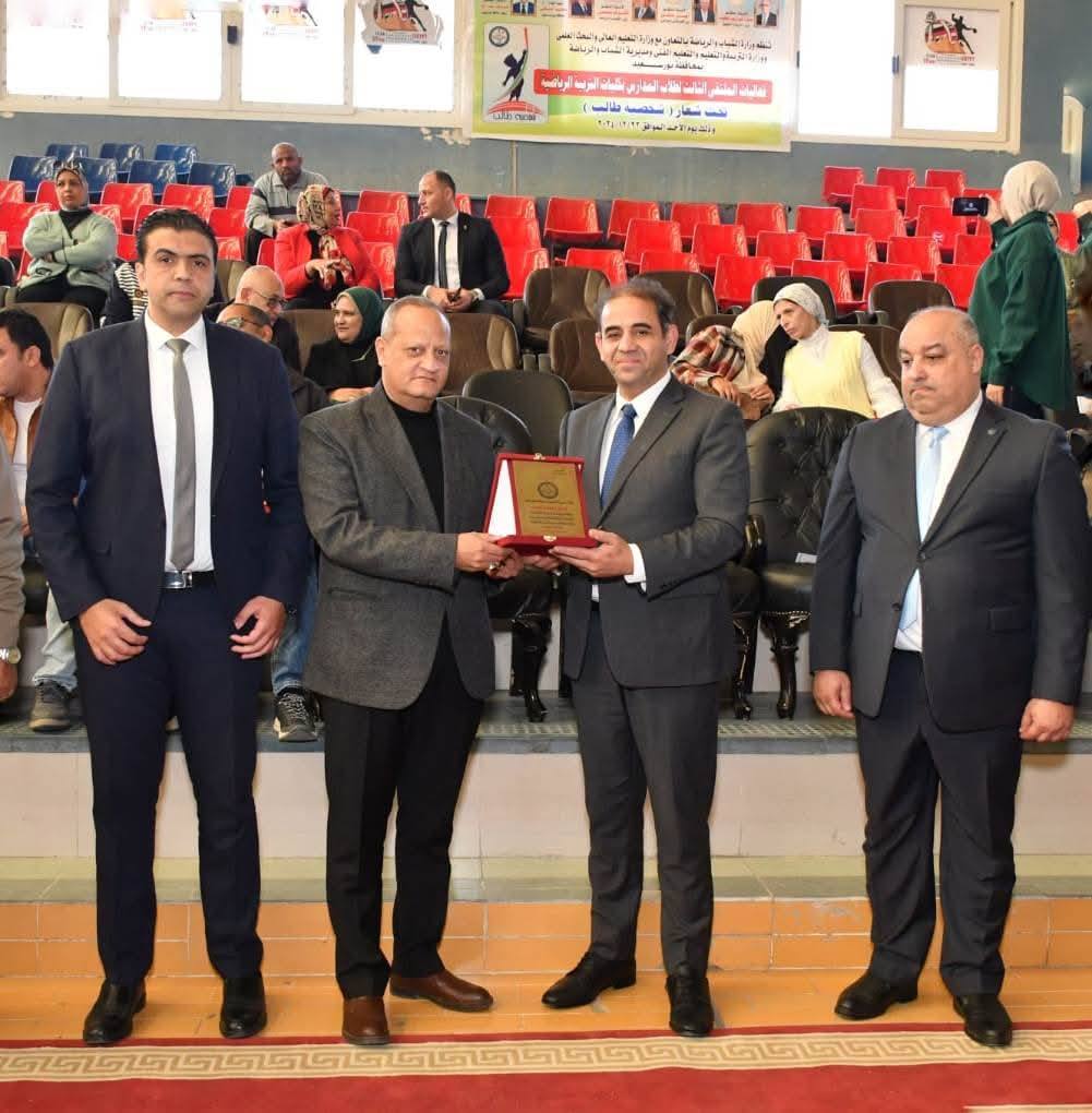 Prof. Dr Sherif Saleh, President of the University, inaugurated the activities of the third forum for school students in the faculties of physical education Student Personality in coordination between the university and representatives of the Ministries of Education and Youth and Sports in Port Said. He was received by Prof. Dr Ahmed Abdel Qader, Dean of the Faculty of Sports Sciences, the deputies and faculty members of the faculty. Many speeches were delivered by Mr Mohamed Abdel Aziz, Director of the Youth and Sports Directorate in Port Said, Mr Mahmoud Badawi, Director General of General Education, Prof. Dr Raed Helmy, Vice Dean of the faculty for Community Service and Environmental Development, and Prof. Dr Ahmed Abdel Qader, Dean of the faculty. The celebration witnessed the distribution of shields to the representatives of the university, education, youth and sports in appreciation of their efforts in serving and caring for the children with disabilities.
