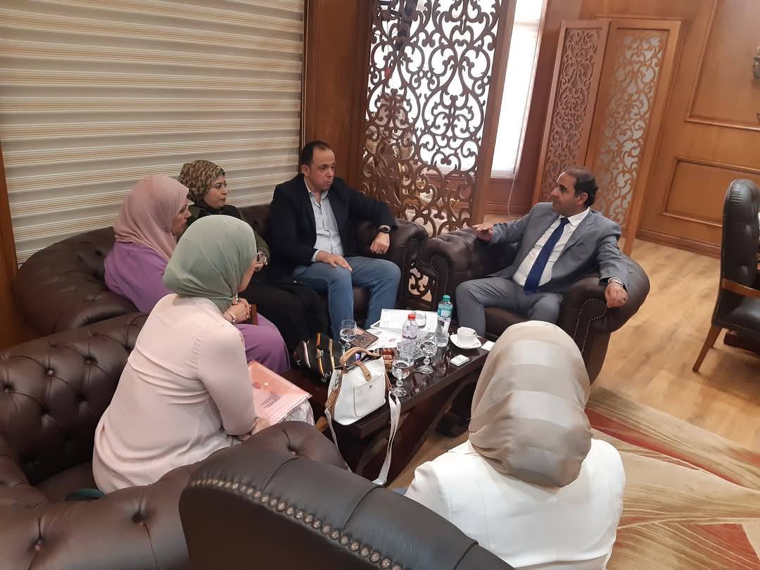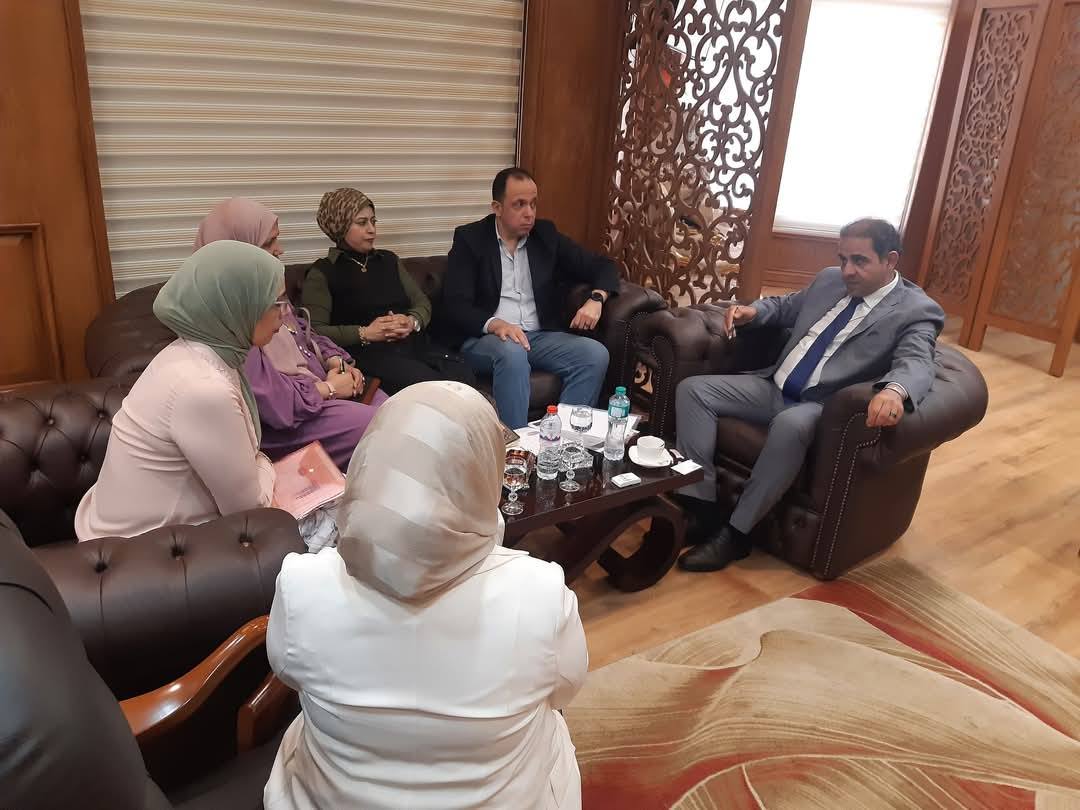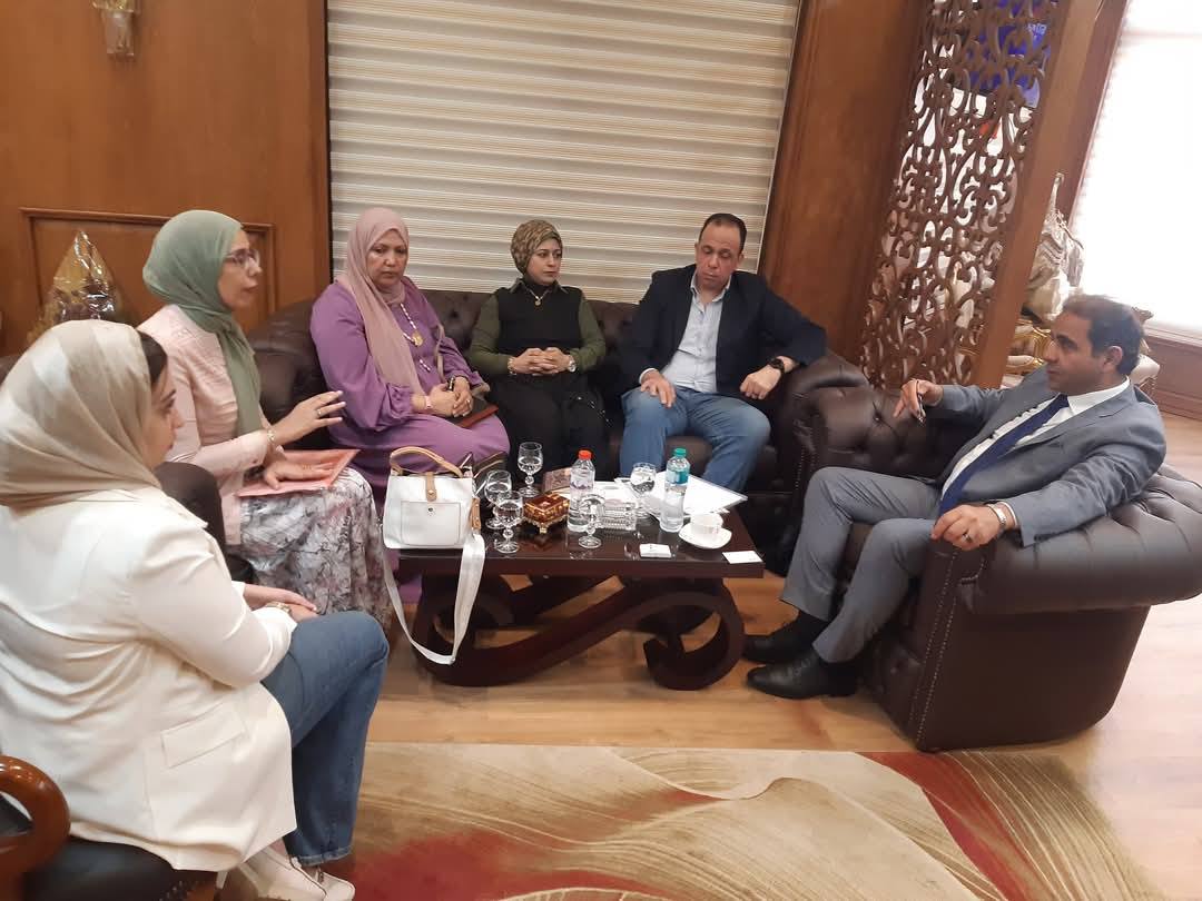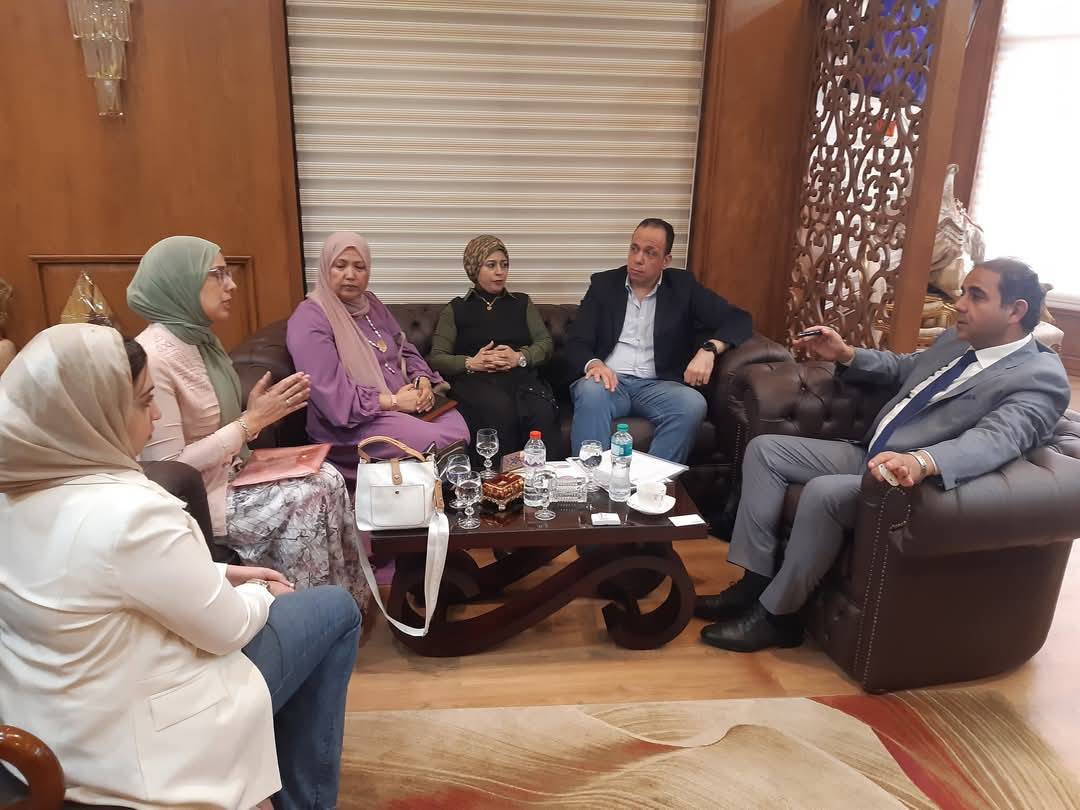 Prof. Dr. Sherif Saleh, President of Port Said University, received Engineer Karim Hamdy, Director of Business Sector at AMIDEAST, as part of a project to develop English language learning at the university. The two sides discussed ways of joint cooperation between the university and the institution. The meeting was attended by Prof. Dr. Rehab Abdel Aziz, General Supervisor of the Arts and Humanities Sector, Dr. Marwa El-Eleidi, Assistant General Supervisor of the Sector, Dr. Yara Shukry, Lecturer of Curricula and Methods of Teaching English at the Faculty of Education, and Dr. Omnia Nasrallah, Lecturer of English at the Faculty.