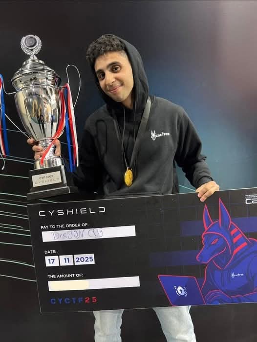 Port Said University continues to shine in student activities under the patronage of Professor Dr. Sherif Youssef Saleh, the University President. As part of this ongoing commitment, Youssef Ahmed Ali Ahmed El-Saqqa, a third-year student in the Marine Engineering and Naval Architecture Department at the Faculty of Engineering, achieved a remarkable accomplishment by winning first place in the CyCTF25 cybersecurity competition, held during the Cairo International Technology Conference 2025.