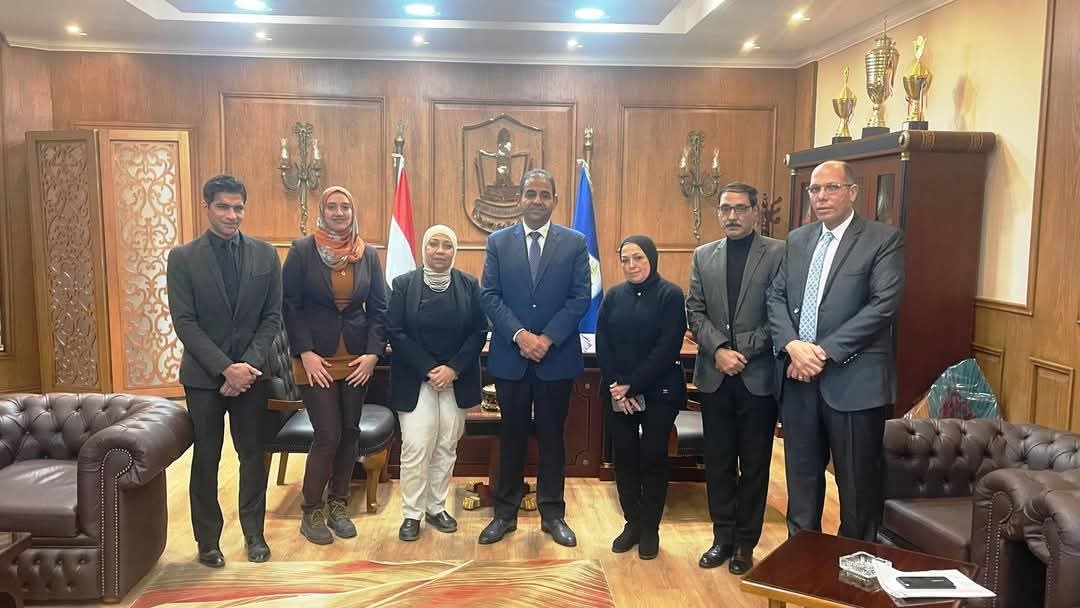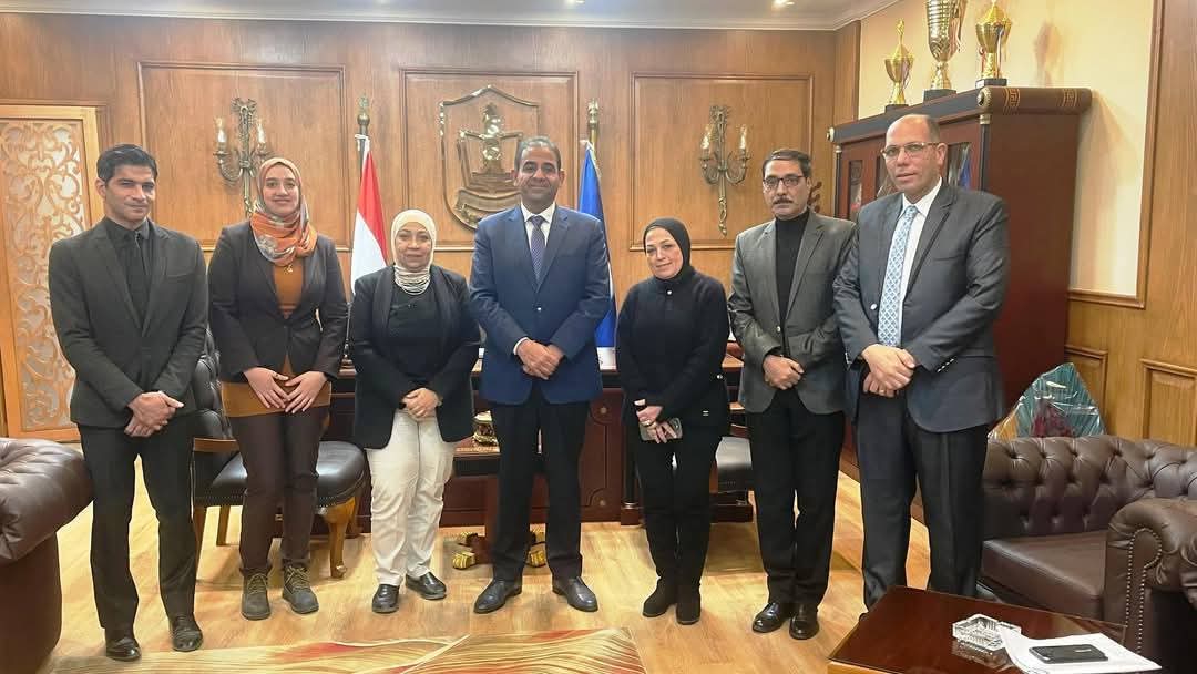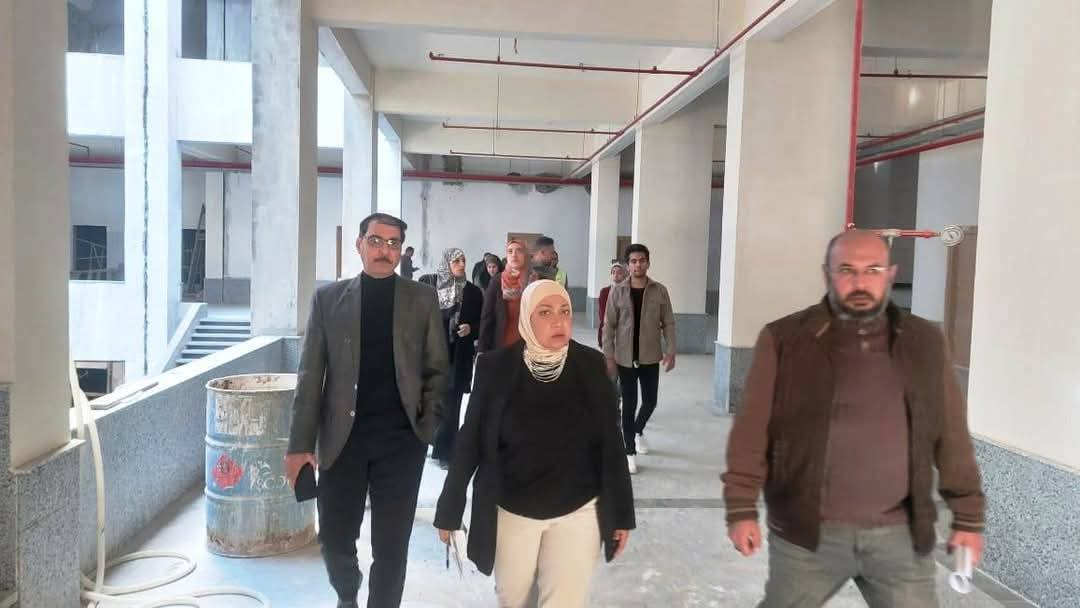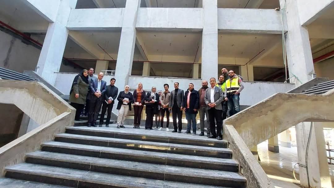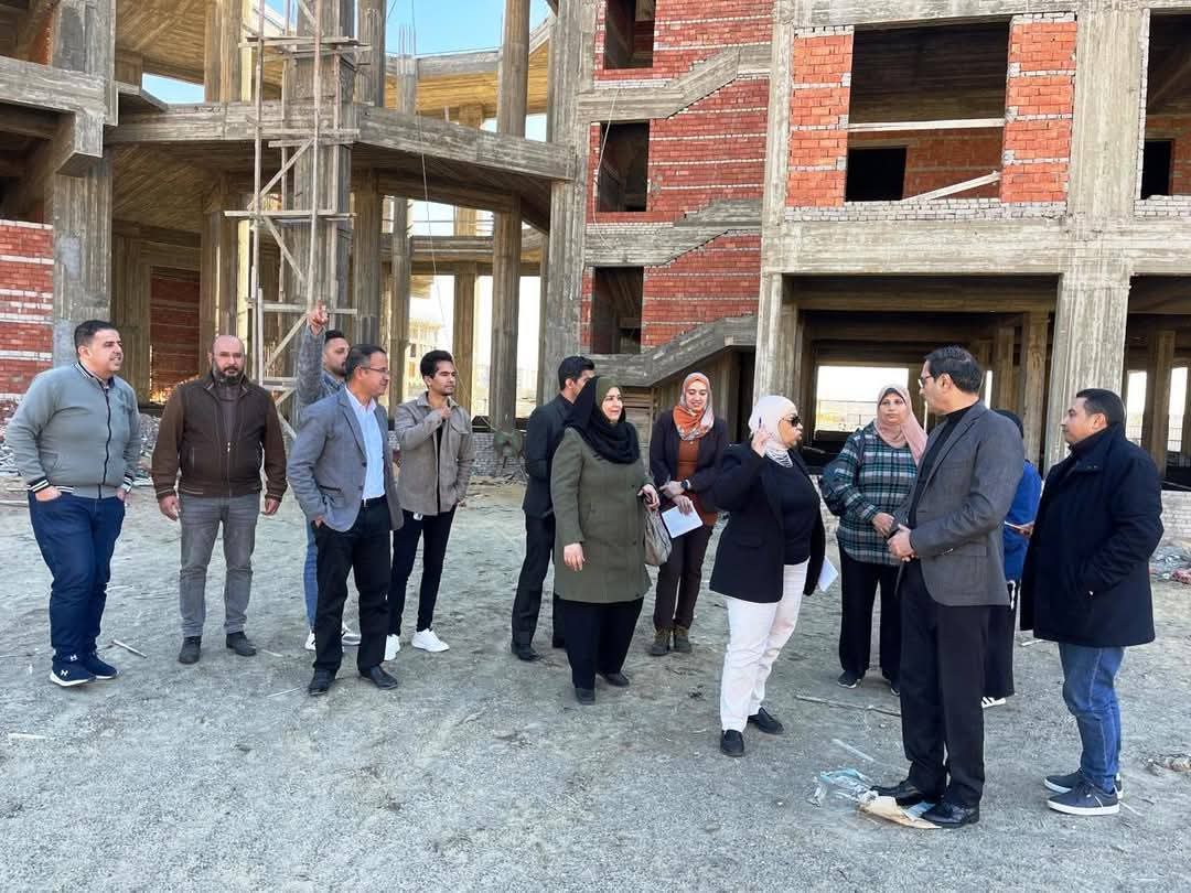 Prof. Dr Sherif Saleh, President of Port Said University, received today, Wednesday 1/8/2025, a delegation from the National Investment Bank headed by Ms Nihad Farouk Makki, General Manager of the General Administration of Services at the National Investment Bank, and Ms. Sarah Salah Badr, Mr. Hussein Salah, to follow up on the new construction projects implemented by the university and to stand on the executive position of these projects, in the presence of Ms Samia El-Moselhy, Secretary General of the University, Eng. Hassan El-Warwary, Engineering Advisor to the President of the University, Dr Ezzat Salam, Civil Works Consultant, Eng. Iman Saeed, General Manager of the General Administration of Engineering Affairs, Mr Ashraf Abdel Aziz, Acting General Manager of the Strategic Administration, and on behalf of the Projects Authority, Eng. Mohamed Saeed. The delegation visited some construction sites at the Faculty of Law, the Faculty of Arts, and the swimming pool at the Faculty of Sports Sciences, where Prof. Dr Ahmed Abdel Qader, Dean of the Faculty of Sports Sciences, received the delegation and accompanied them to visit the covered hall building at the faculty. They also visited and followed up on the educational building under construction at the Faculty of Commerce.