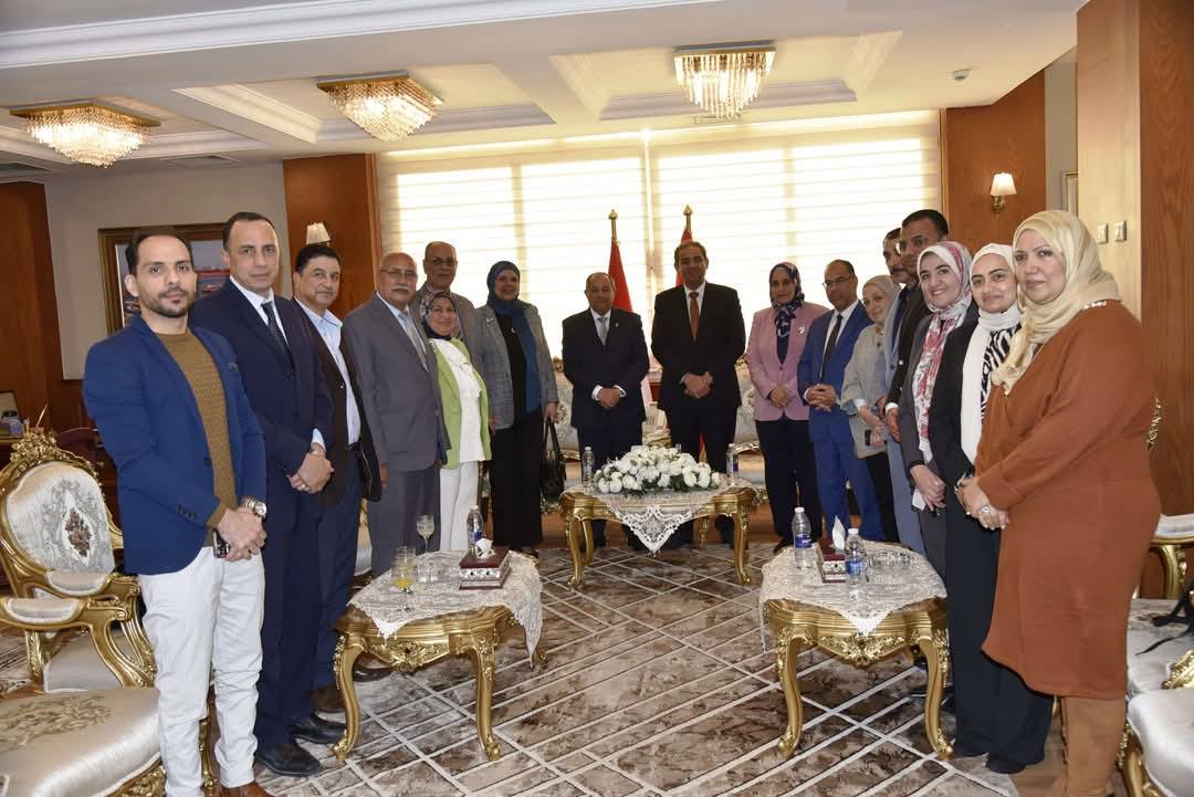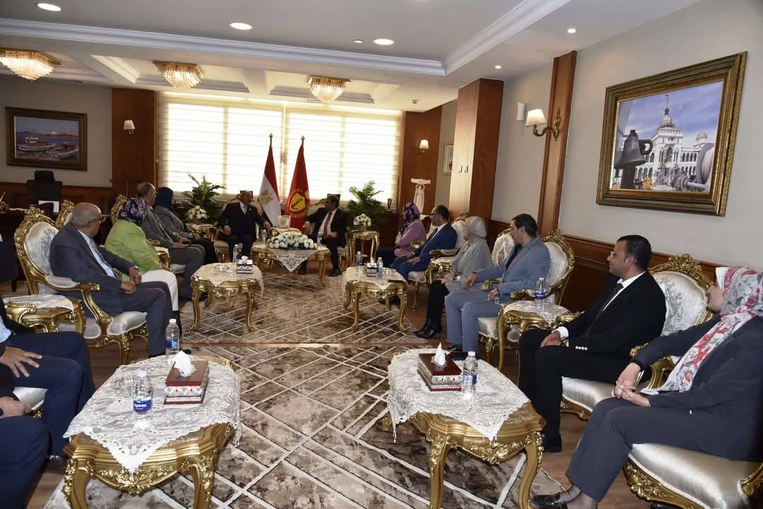 Prof. Dr. Sherif Youssef Saleh, President of Port Said University, headed a delegation of Port Said University leaders, including vice presidents, deans of faculties, the university’s secretary-general, supervisors of the university’s three sectors, and advisors to the university president, on a visit to Major General Moheb Habashi, Governor of Port Said, to offer congratulations on the occasion of Easter.