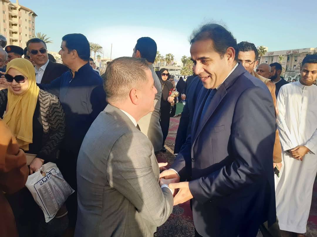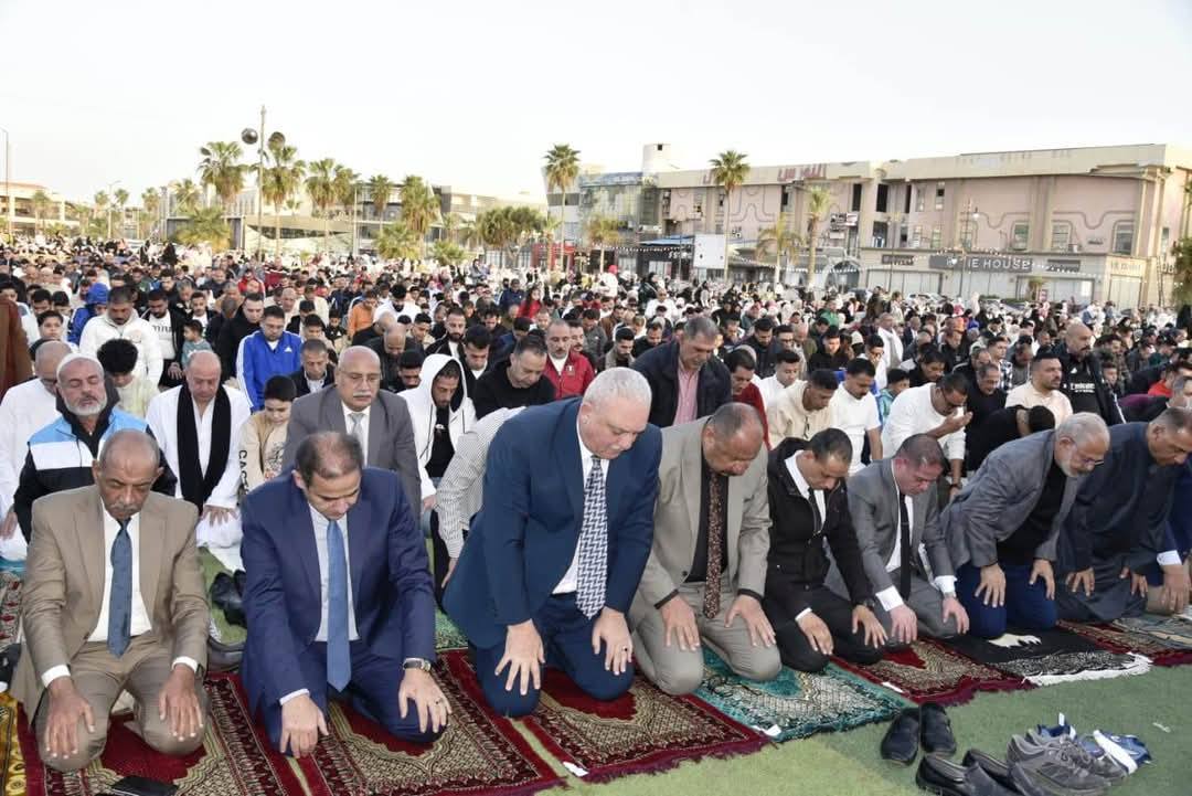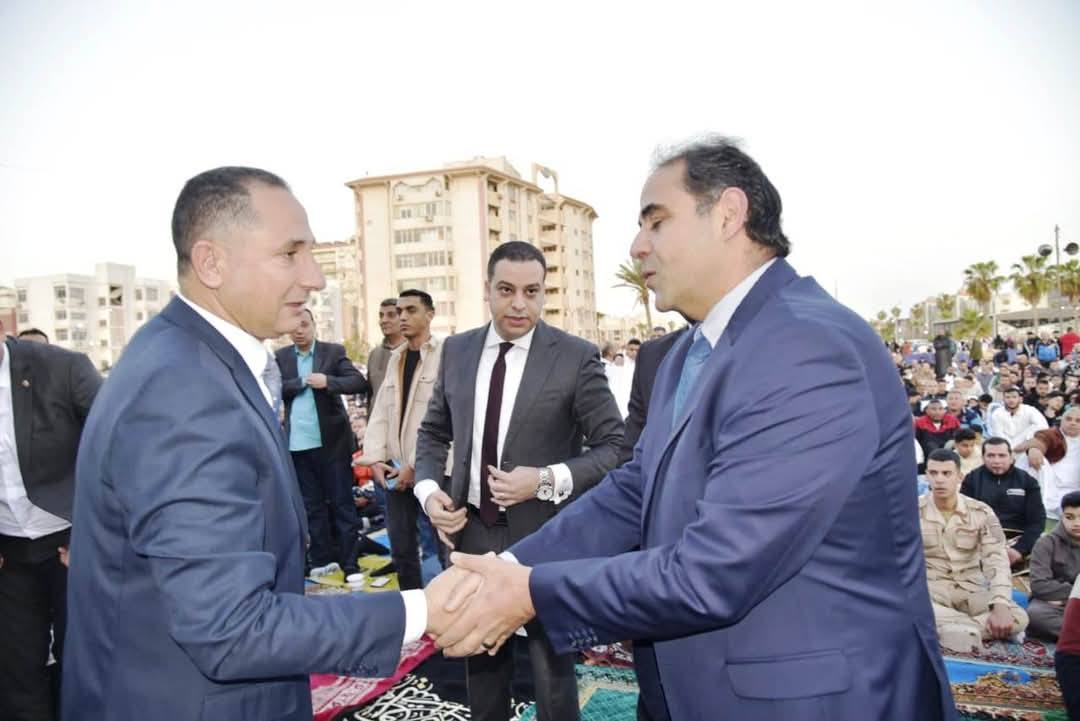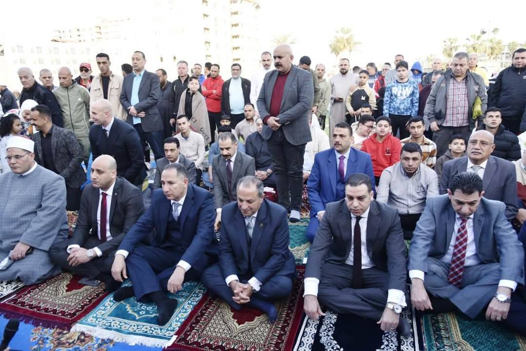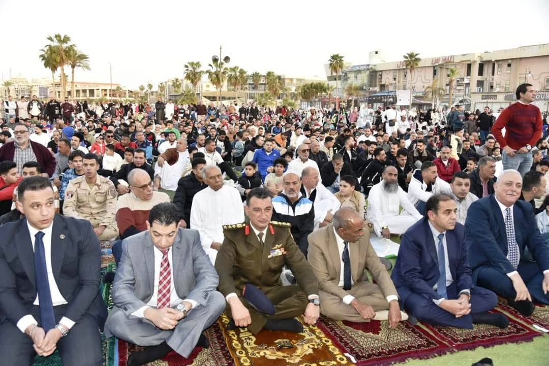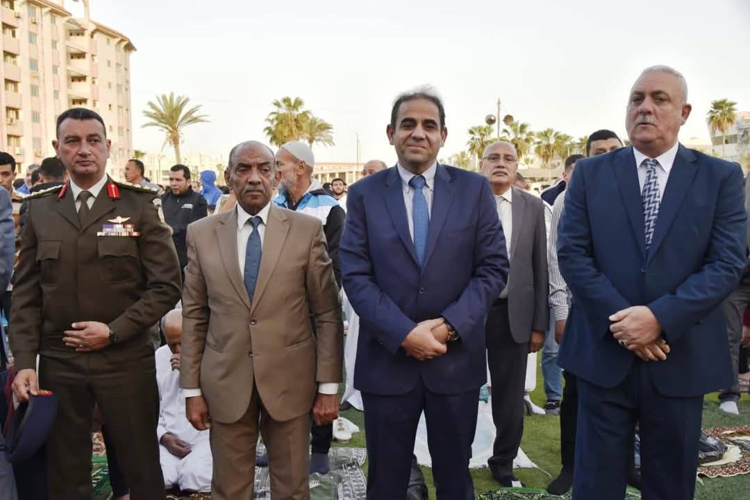 This morning, Prof. Dr. Sherif Youssef Saleh, President of Port Said University, performed Eid al-Fitr prayer, accompanied by Major General Moheb Habashi, Governor of Port Said; Major General Tamer El-Samry, Assistant Minister of Interior and Director of Port Said Security; and a number of popular, executive, security, and political leaders, as well as Islamic religious figures from Al-Azhar institutions in the governorate. The sermon addressed the virtues of celebrating the Eid and encouraged social interaction with family, maintaining family ties, and strengthening social ties. On this occasion, Prof. Dr. Sherif Saleh, President of Port Said University, extends his congratulations to the people of Port Said and the Egyptian people on the occasion of Eid al-Fitr.