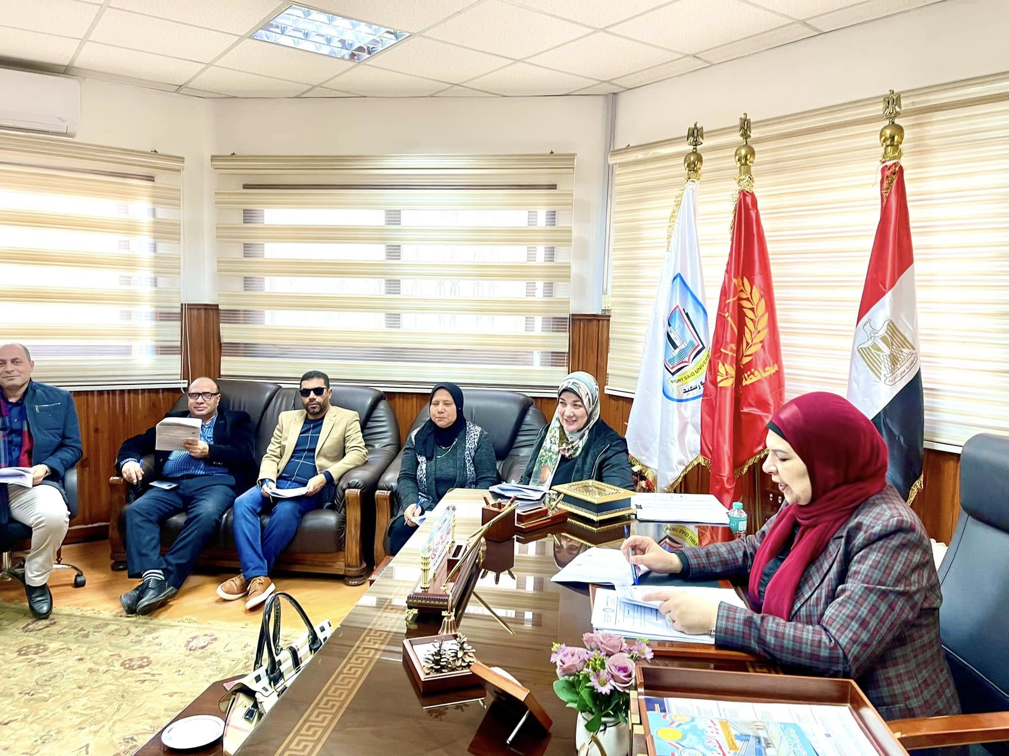 The Postgraduate Studies and Research Council was held under the chairmanship of Prof. Dr Rawya Rizk, Vice President for Postgraduate Studies and Research, to discuss several important topics related to the quality of the educational process in graduate studies at the university and raising the efficiency of graduate students in all fields of education and digital transformation. This is in addition to discussing the dates for opening registration for postgraduate studies in various faculties of the university. The Council approved the registration of 8 doctorates and 45 master’s degrees in the various faculties of the university.