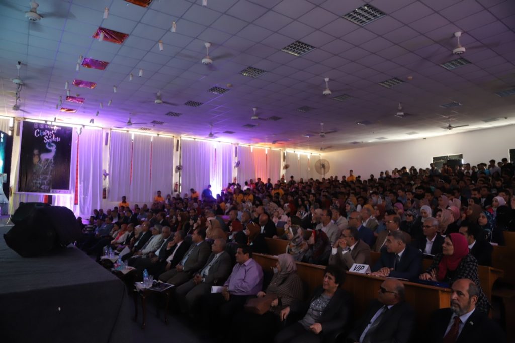 The Faculty of Engineering witnessed the inauguration of the Engineering Day conference 2019 (Chapter of secrets) on Monday 18, 2, 2019 for the eleventh year respectively. Dr Prof. Ayman Mohamed Ibrahim, vice-president for postgraduate and scientific research, inaugurated the conference in the presence of 5000 visitors and 550 industrialists and engineers. Dr Eng. Prof. Heba Abdul Aaty, coordinator, organized the day assisted with a team consisted of 100 volunteers from the faculty students and staff. The artist Mohamed Gamal presented the conference. Notably to say, the conference witnessed several lectures and the attendance of industry figures. Dr Prof. Ayman Ibrahim gave a speech welcoming the attendants and praising the great efforts exerted in the organization of this day.