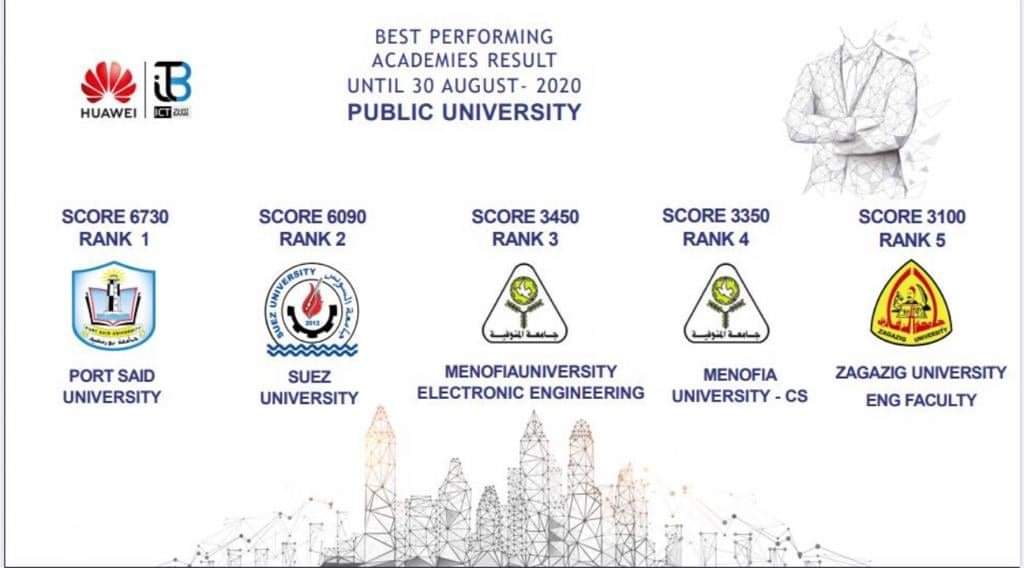 Under the auspice of Dr Prof. Ayman Mohamed Ibrahim, president of the university, and Dr Prof. Hasan Mohamed Hasan, dean of the faculty of engineering, Huawei Academy ranked the first for the second time amongst the academies in the Egyptian universities. On this occasion, it is the pleasure for Dr Prof. Ayman Mohamed Ibrahim, president of the university, congrats and praises the efforts exerted by Dr Heba Abdul Aatty, head of PSU Huawei Academy, and the certified lecturers Dr Samah Eisa, Dr Eng. Prof. Heba Nashaat, Dr Ahmad Hasan, Eng. Nesma el- Ashry, Eng. Noran Ali, Eng. Aya Abdul Hady, and Eng. Reem Amien; wishing for them all the success and progress.