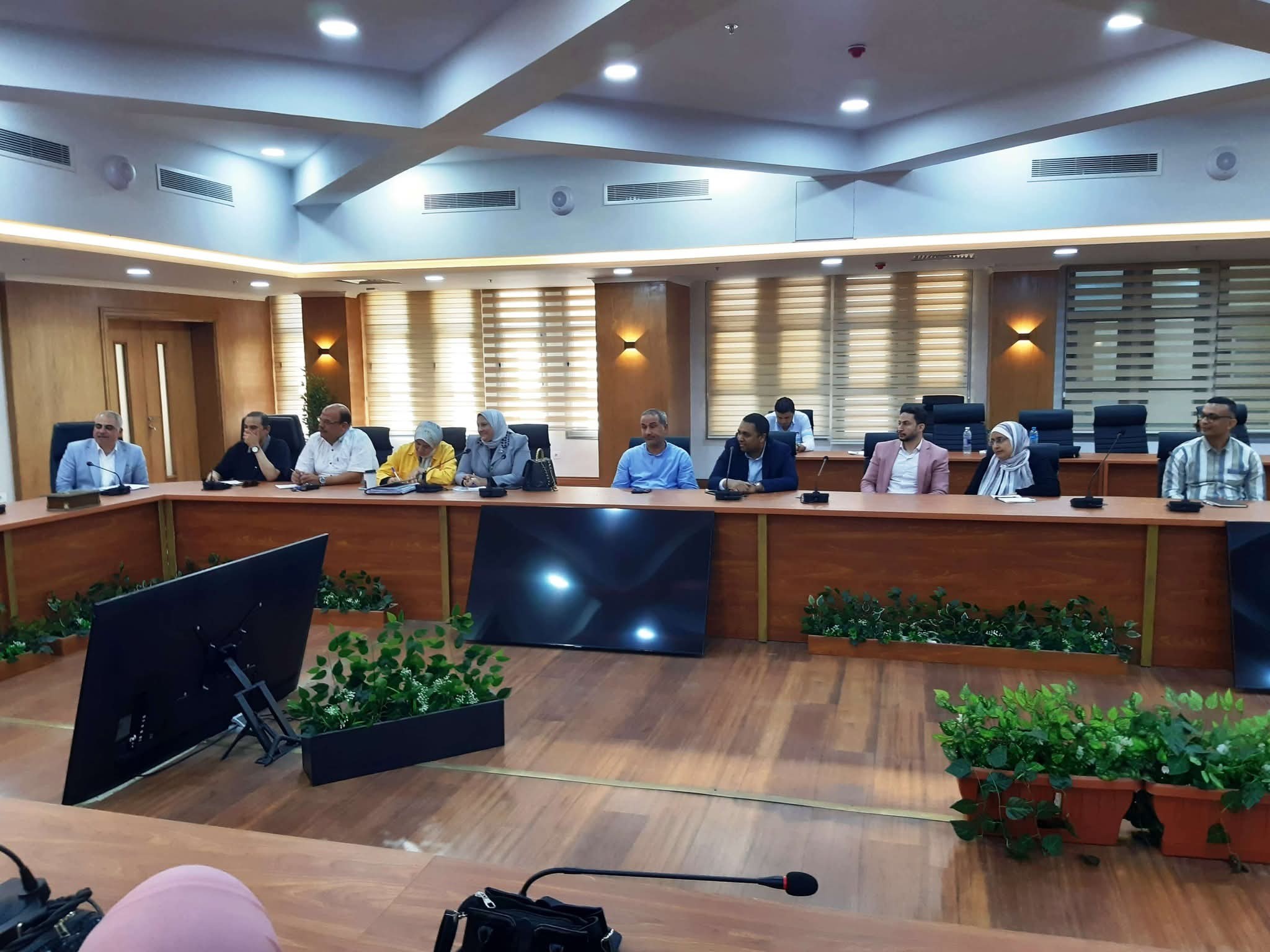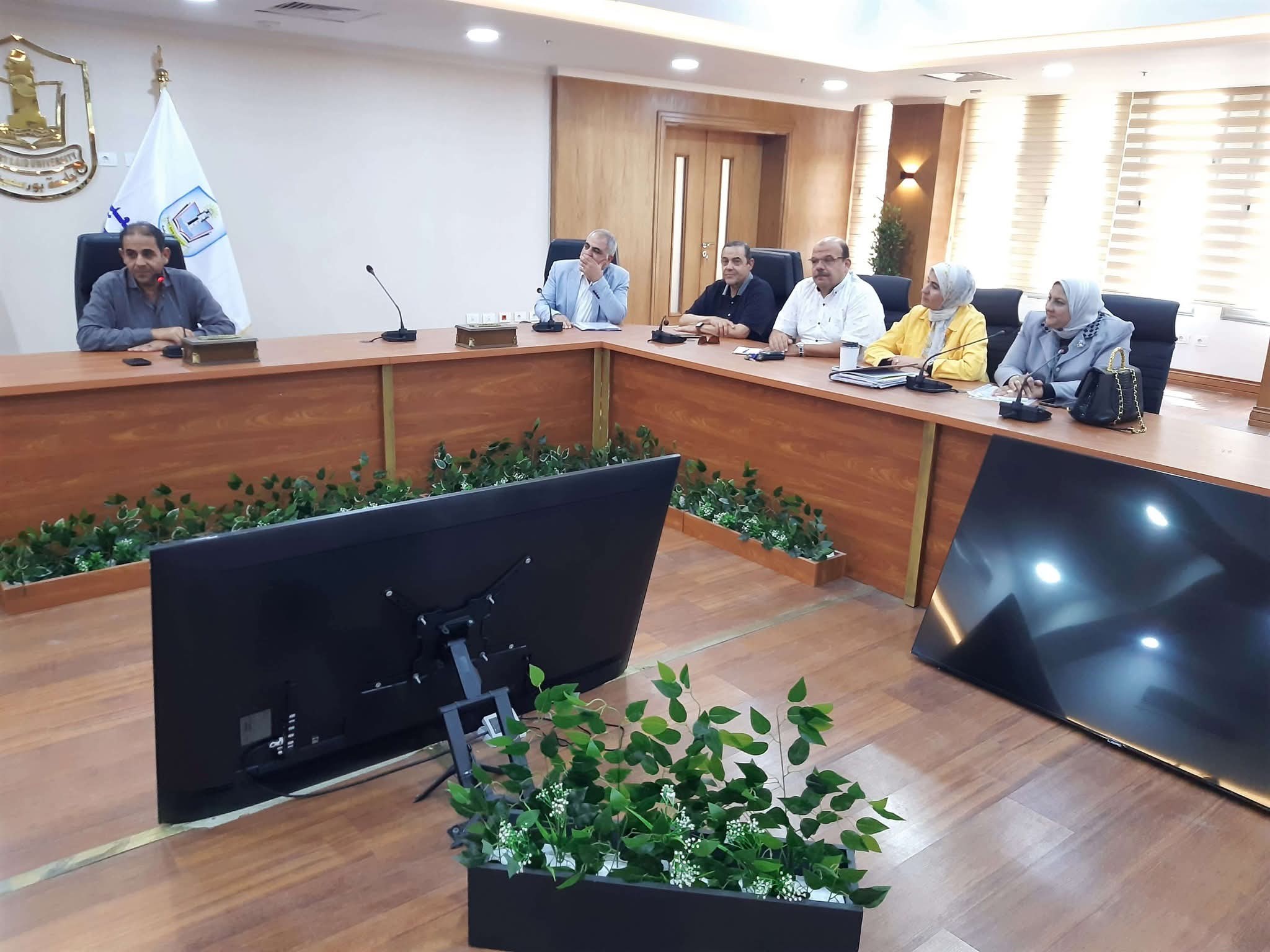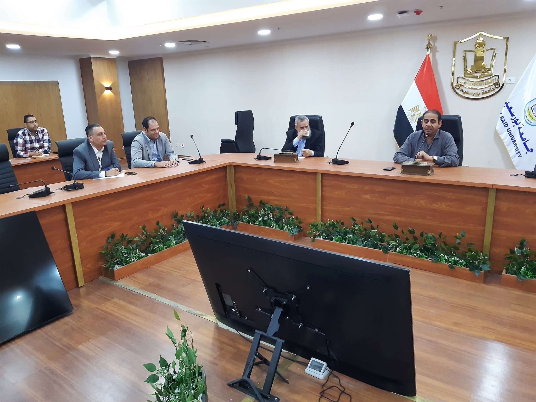 Prof. Dr. Sherif Saleh, President of Port Said University, met with the Higher Coordination Committee for Ranking in the presence of Prof. Dr. Saleh Zorumba, Director of Ranking at the University, the Ranking Team, Prof. Dr. Mohamed Kamel, Supervisor of Environmental Projects, university sector supervisors, the International Relations Team, the Information Systems and Technology Team, and the University Training Director.