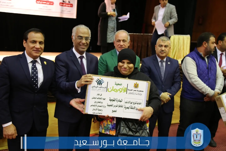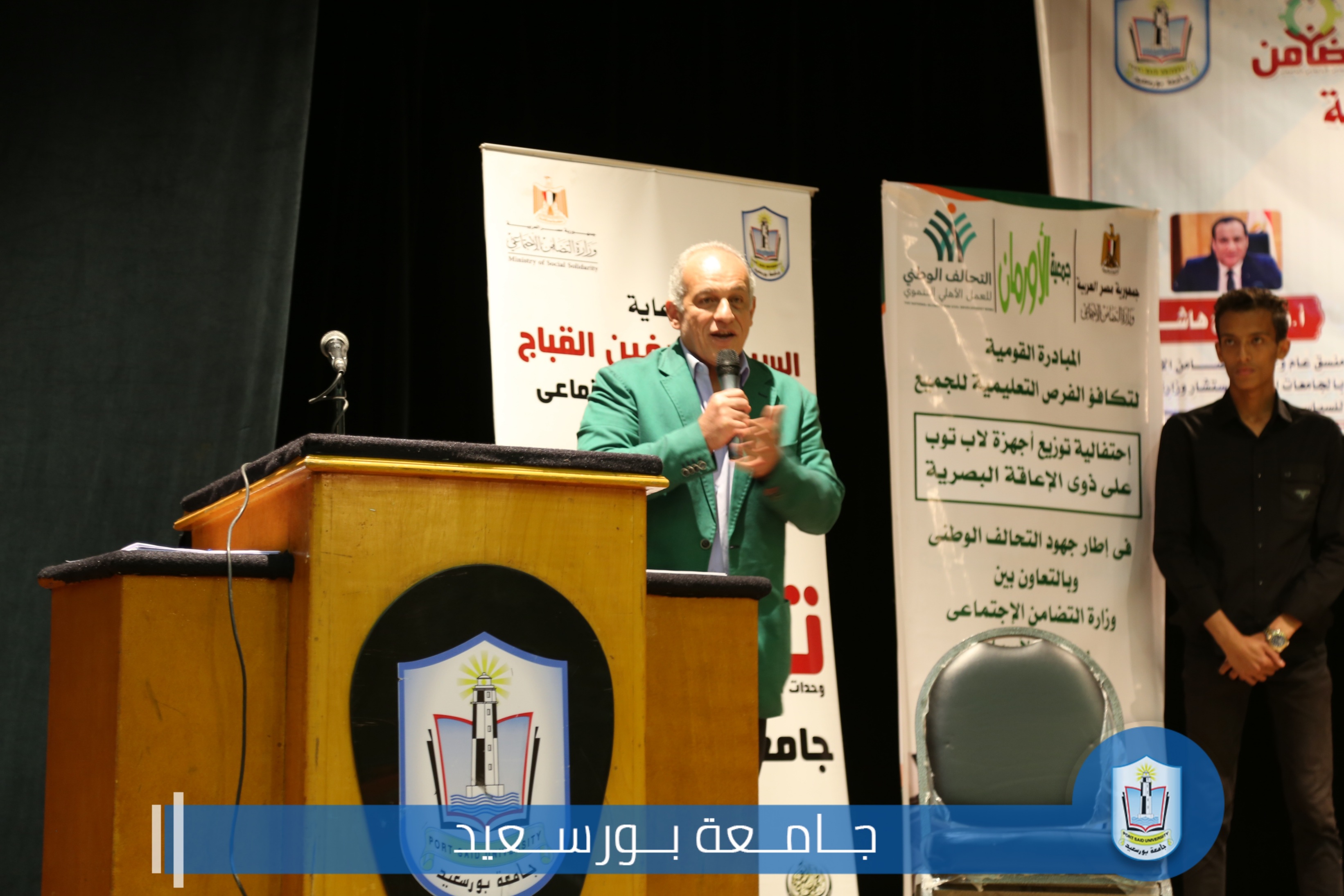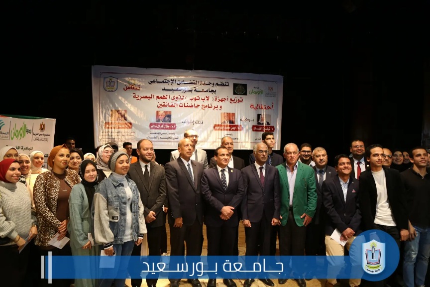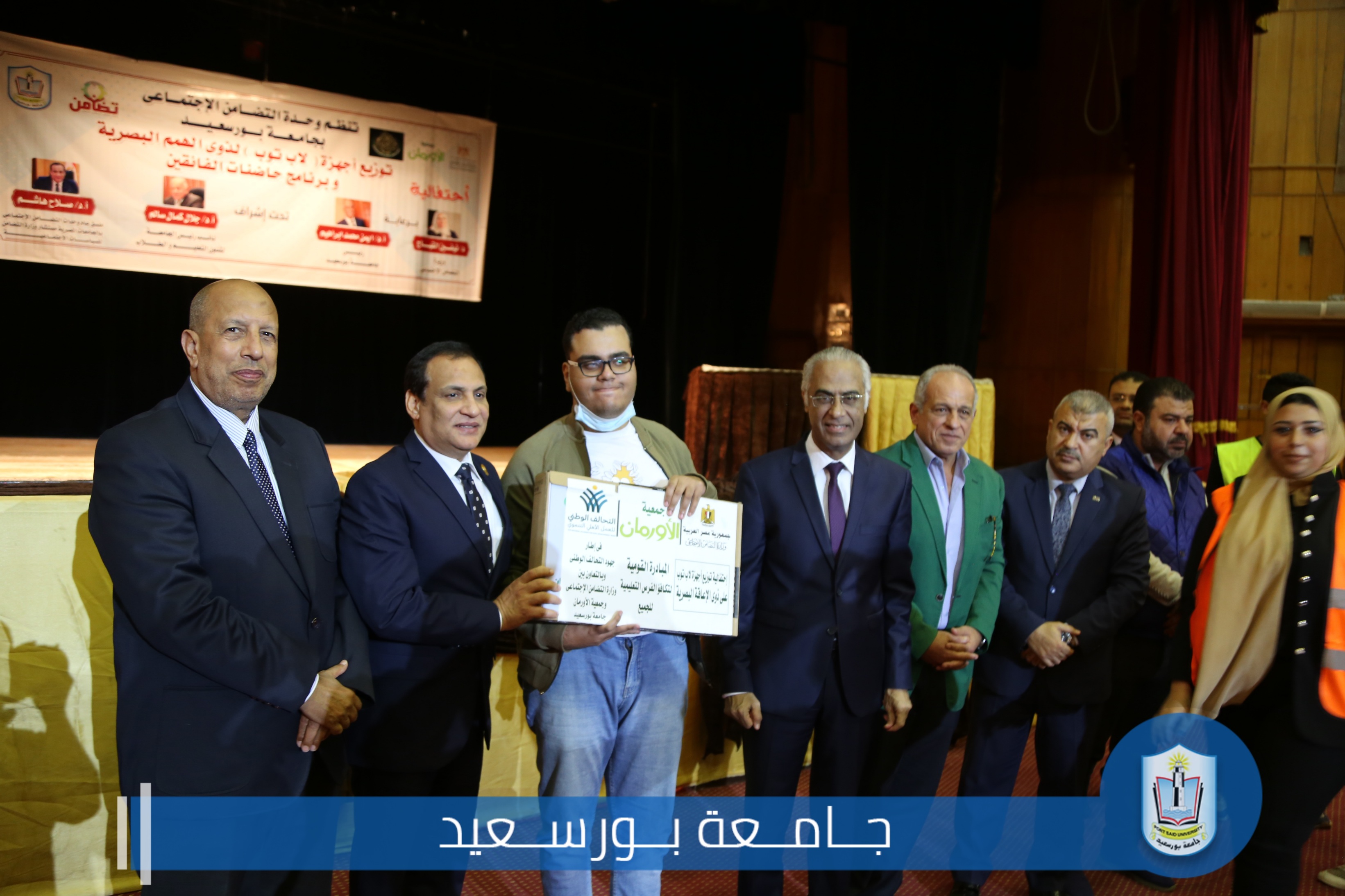The President of Port Said University, Prof. Ayman Ibrahim, and Prof. Salah Hashem, Advisor to the Minister of Social Solidarity for Social Policies, honored the outstanding students from the university’s faculties, where 5 outstanding students within 10 faculties within the university were honored, and 50 of the top graduates in addition the distribution of laptops for the visually impaired. Many employees, assistants and a number of faculty members within the university who have professional and educational excellence were also honored. Many workers, including employees, assistants, and a number of faculty members within the university, who have professional and educational excellence, have been honored. During the ceremony, Prof. Galal Salem, Vice President for Education and Student Affairs, appreciated the role of the university towards people of determination, and that the university administration always works to involve these students in the university community in cooperation with the office of the Ministry of Solidarity (Solidarity Unit) inside the university to solve any obstacles that our students with disabilities face.