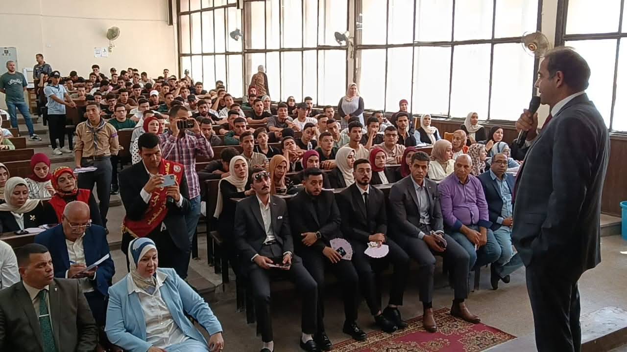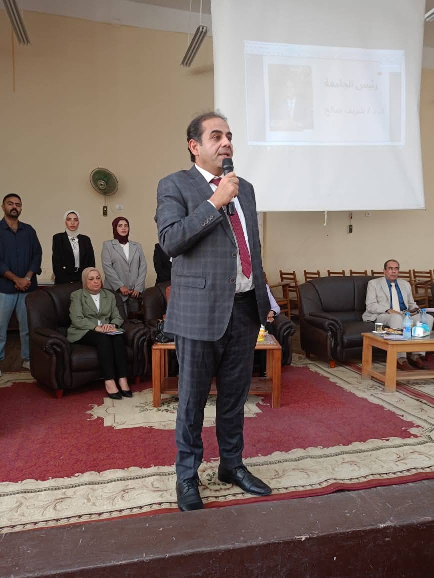 In a wide meeting with faculty members, staff, and students, the President stressed that the university has become a comprehensive community for developing skills, fostering creativity, and building character. He emphasized that belonging to Port Said University is a source of pride, given its national and international achievements, and encouraged students to invest their study years in academic growth, personal development, and active participation in student activities.