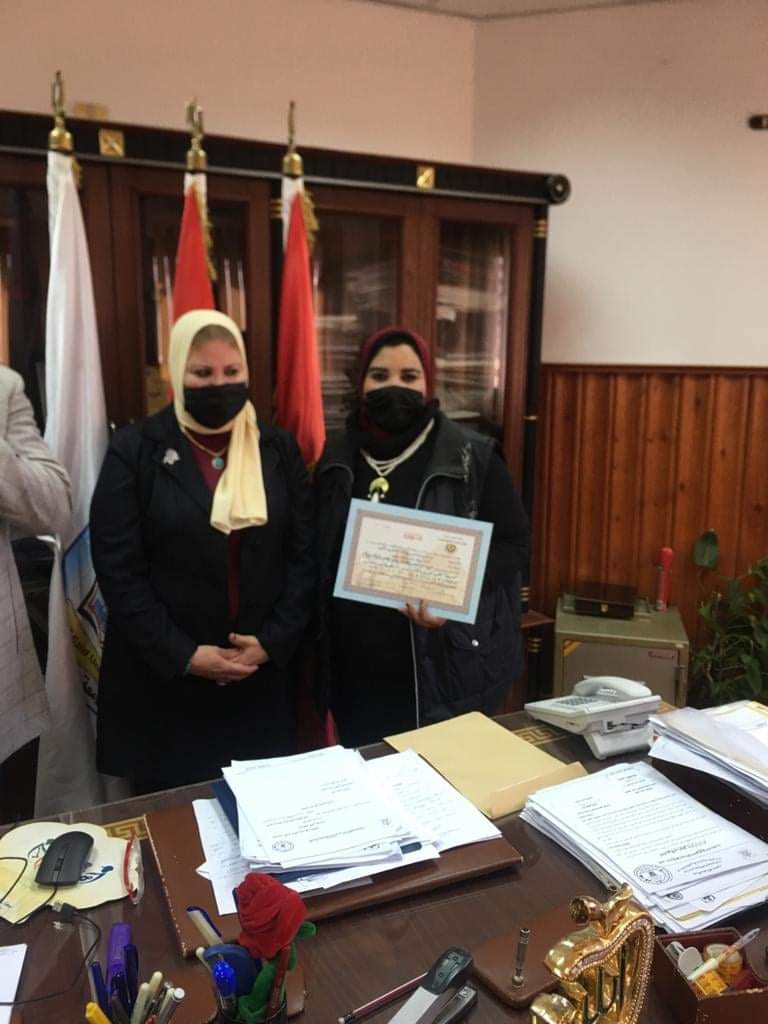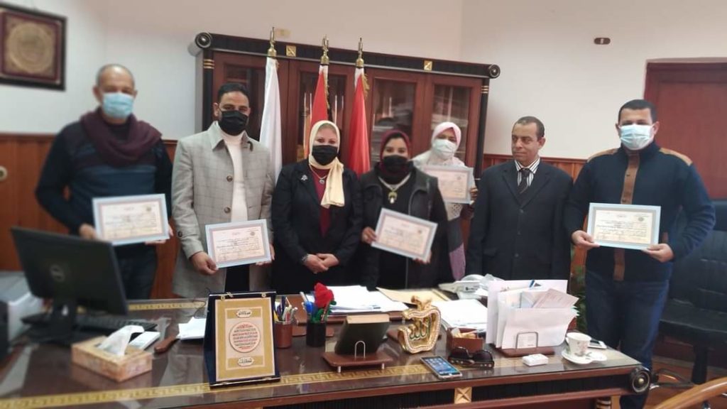 Dr Prof. Maha Zakarya, vice-president for community services and environmental affairs, congratulates the managers on passing the leadership training program successfully. The participants were as follow: