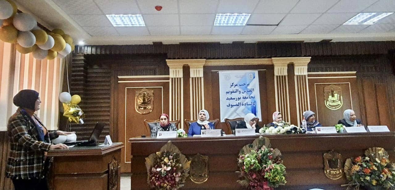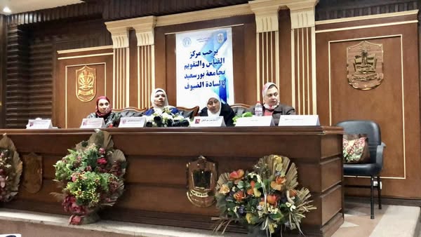 Prof. Dr Rawya Rizk, Vice President of Port Said University for Postgraduate Studies and Research, received a delegation from the Measurement and Assessment Center of the Project Management Unit of the Ministry of Higher Education, in the presence of Prof. Dr Sherine Desouky, Dean of the Faculty of Education, the Vice Deans of the Faculty of Education, Dr. Heba El-Naghi, Director of the Measurement and Evaluation Center at Port Said University and Executive Director of the project, Dr Ahmed El-Razky, Deputy Executive Director of the project, and a group of members of the Executive Council of the Center.