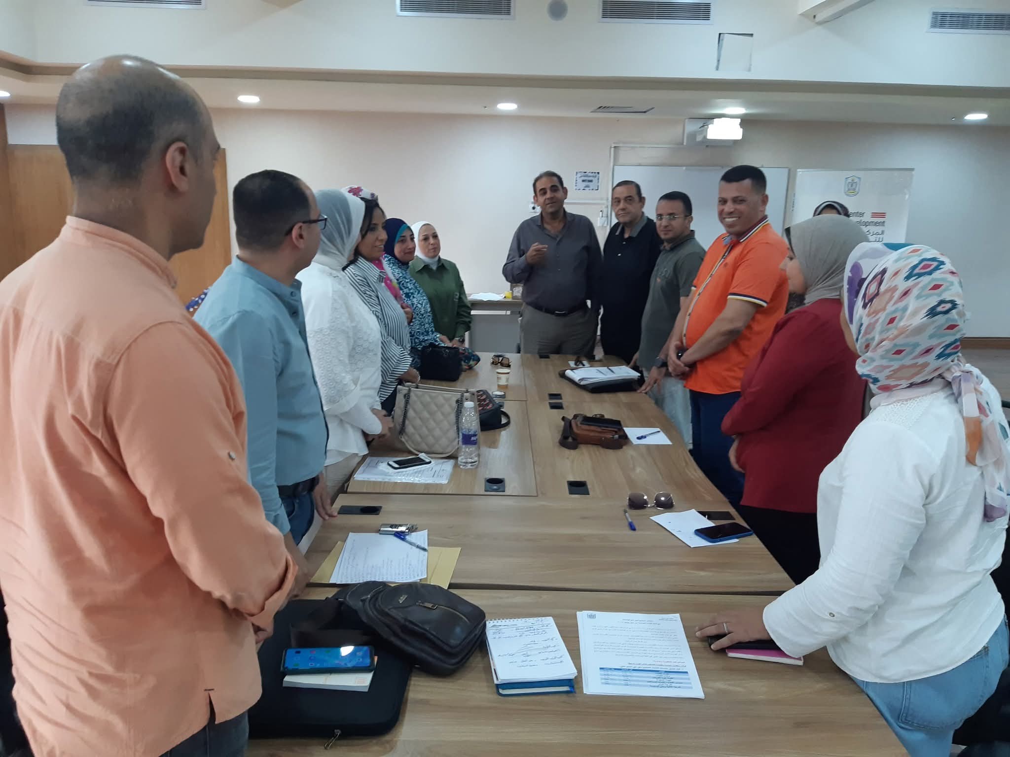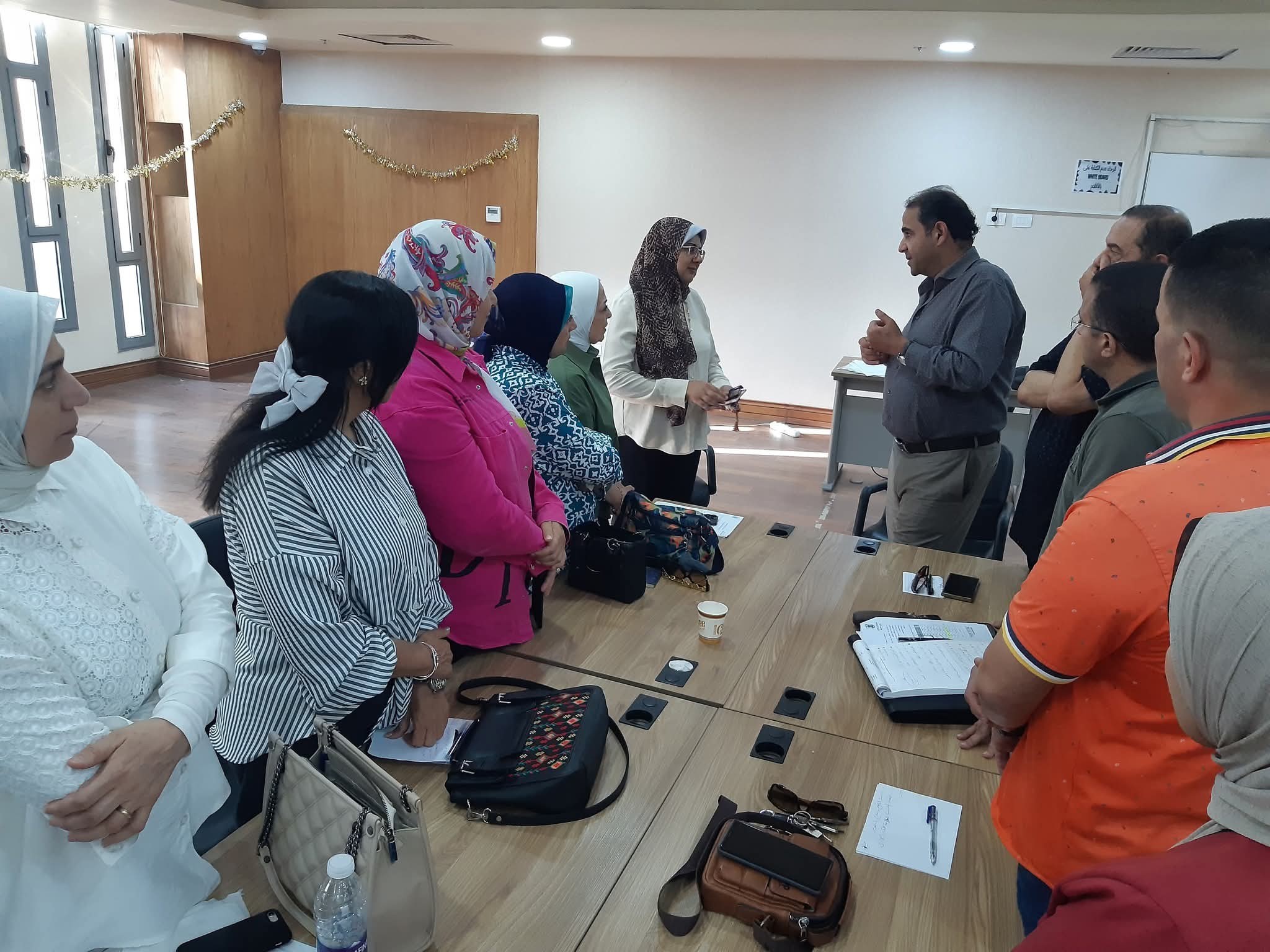 Prof. Dr. Sherif Saleh, President of Port Said University, attended by Prof. Dr. Heba Youssef Soliman, Director of Training at the University, met with Ms. Samia El-Moselhy, Secretary-General of the University, and the university’s faculty secretaries. The meeting was held in light of the follow-up of periodic assignments, which address the work plan for the upcoming period in various faculties and the completion of their administrative structures.