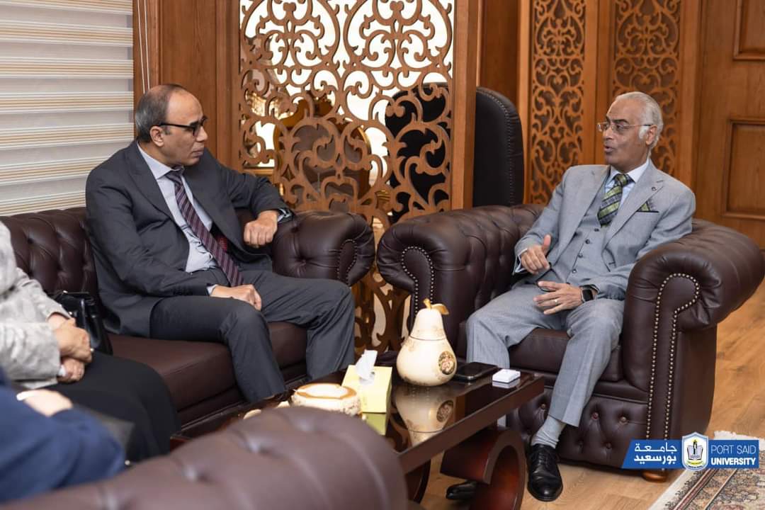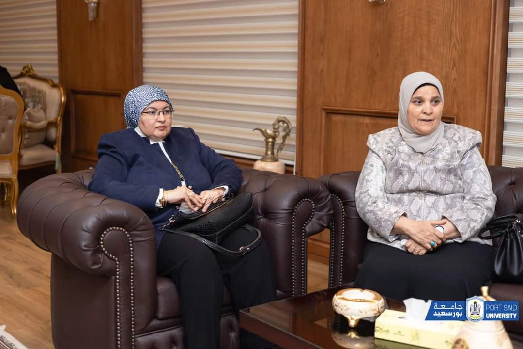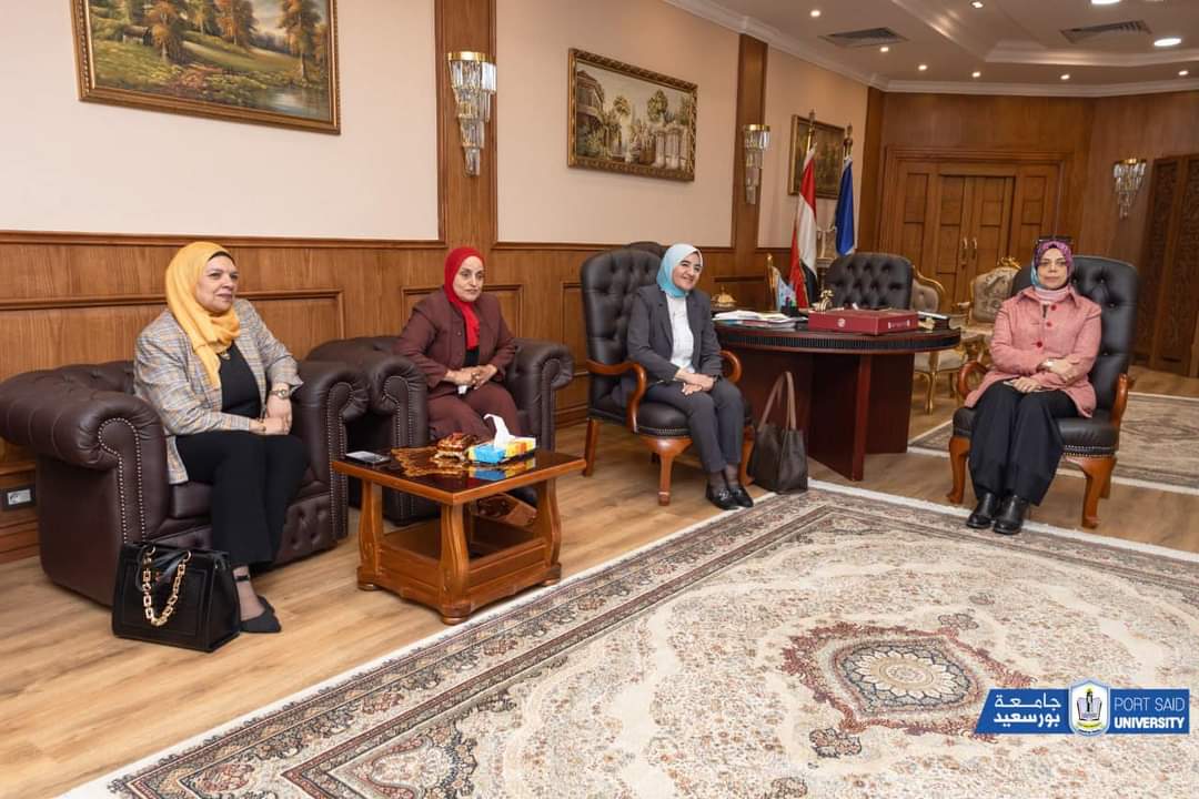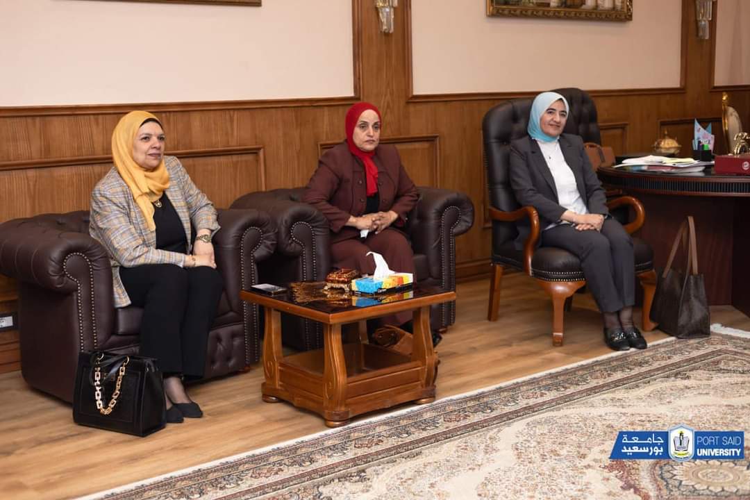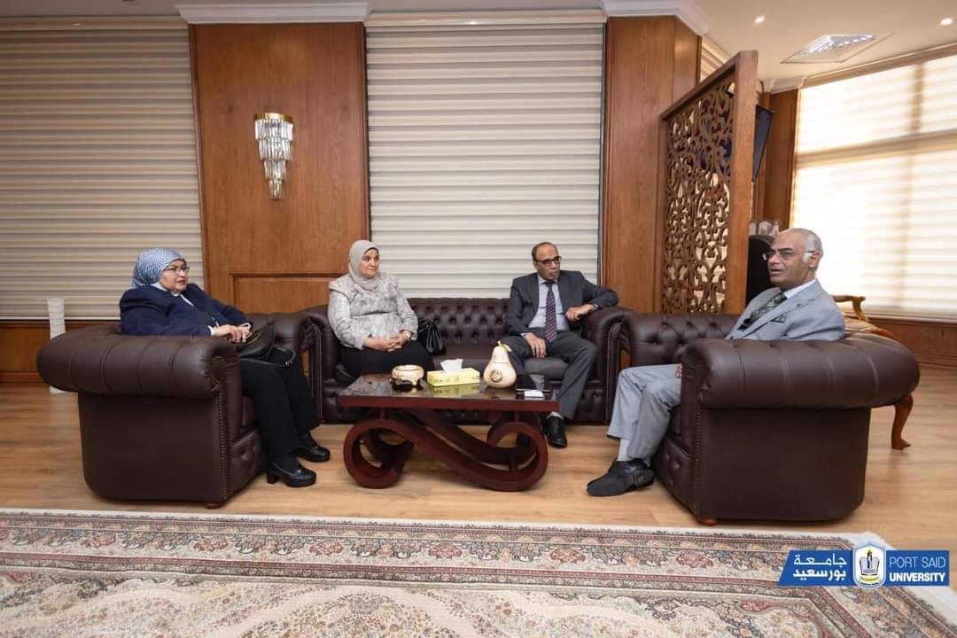 Prof. Dr Ayman Ibrahim, President of Port Said University, received the review team of the National Authority for Quality Assurance and Accreditation in Education, in the presence of Prof. Dr Rawya Rizk, Vice-President for Postgraduate Studies and Scientific Research, Prof. Dr Jamal Mohamed Mahmoud Al-Maghrabi (head of the visiting team), Prof. Dr Ismat Mohamed Abdel Qawi (Member) Prof. Dr Naglaa Abdel Mawjoud Ahmed Mahmoud (Member) Prof. Dr Amal Khalil (Dean of the Faculty of Nursing) Prof. Dr Heba Mohamed Abdel Aty (Director of the Quality Assurance and Accreditation Center at Port Said University) and Prof. Dr Jihan Ahmed Mohamed Mohamed (Faculty of Nursing visit coordinator).