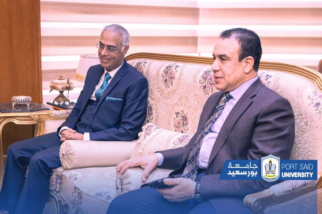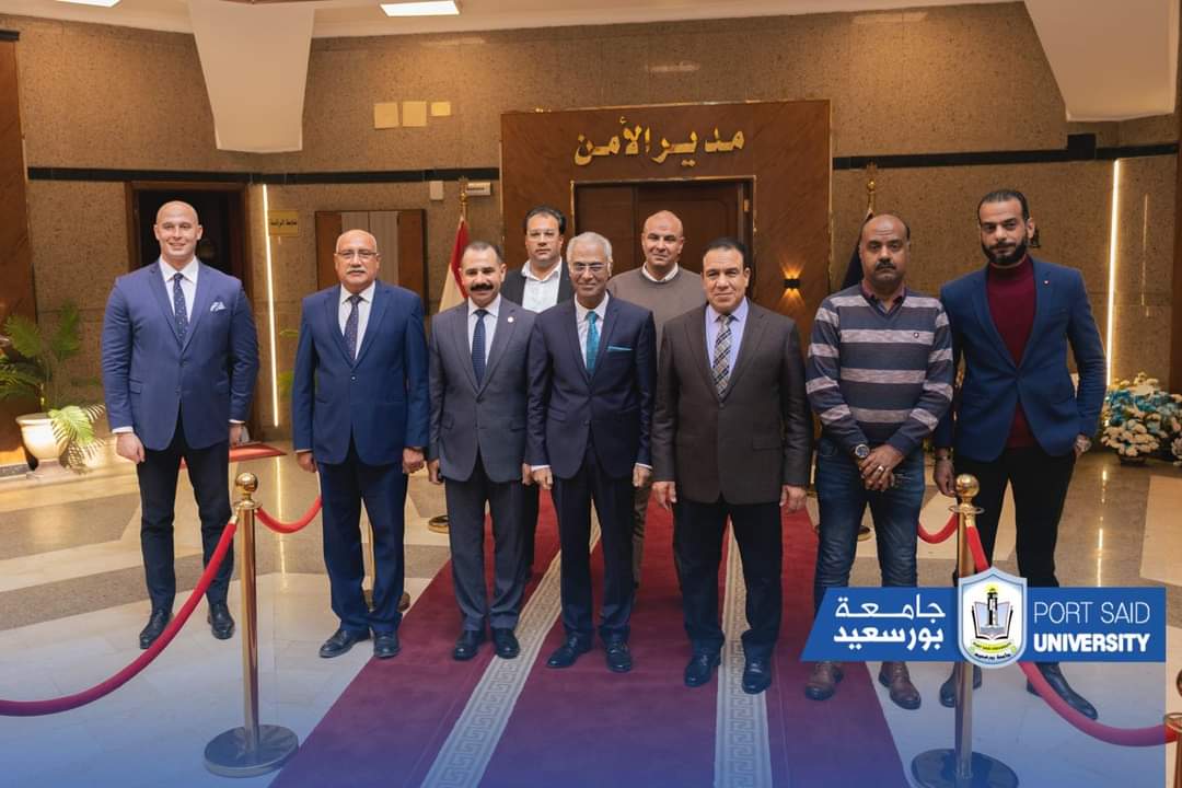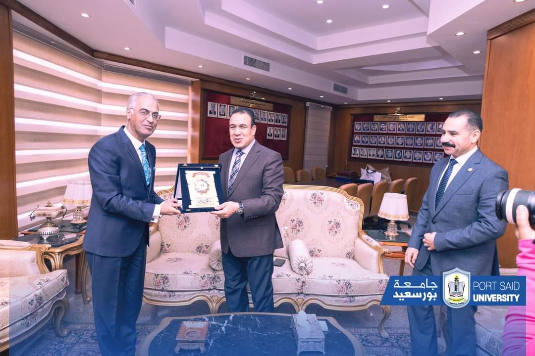 Prof. Dr. Ayman Ibrahim, President of Port Said University, congratulated Major General Medhat Abdel Rahim, Director of Port Said Security, the officers and soldiers on the occasion of the 71st anniversary of the Egyptian Police Day. The president of the university presented the shield of the university to the security director.