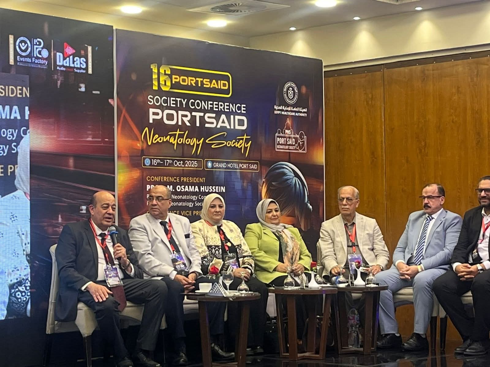 A distinguished group of professors from the health sector at Port Said University participated in the 16th Port Said Neonatology Society Conference, which was organized in collaboration between Port Said University and Port Said Pediatrics and Neonatology Society. The conference, led by Professor Osama Hussein, was held under the auspice of Prof. Dr. Sherif Youssef Saleh, President of Port Said University, and the supervision of the University Center for Career Development (UCCD), headed by Prof. Dr. Heba Youssef Soliman, Director of the Center and Director of the University Training Department.