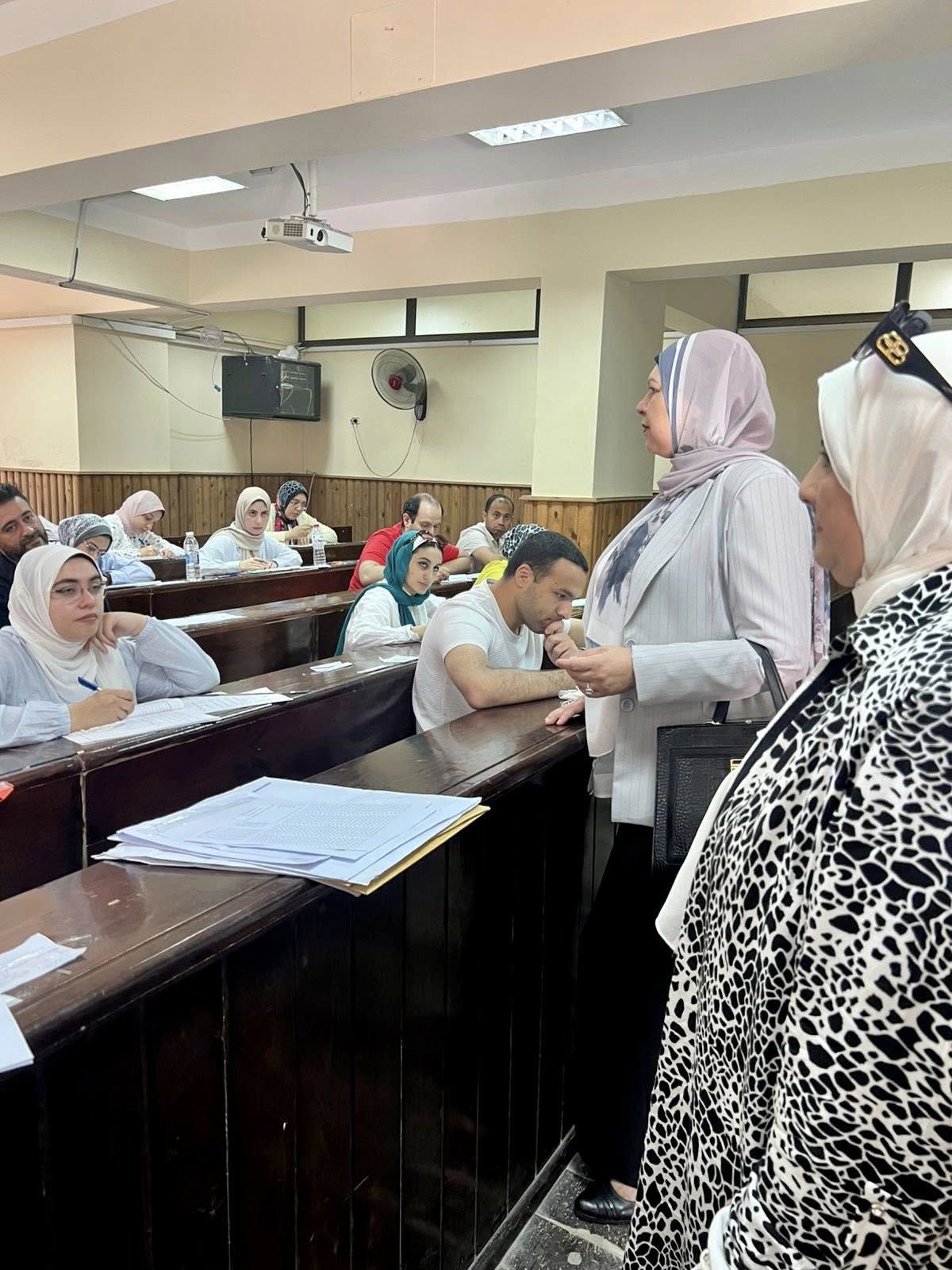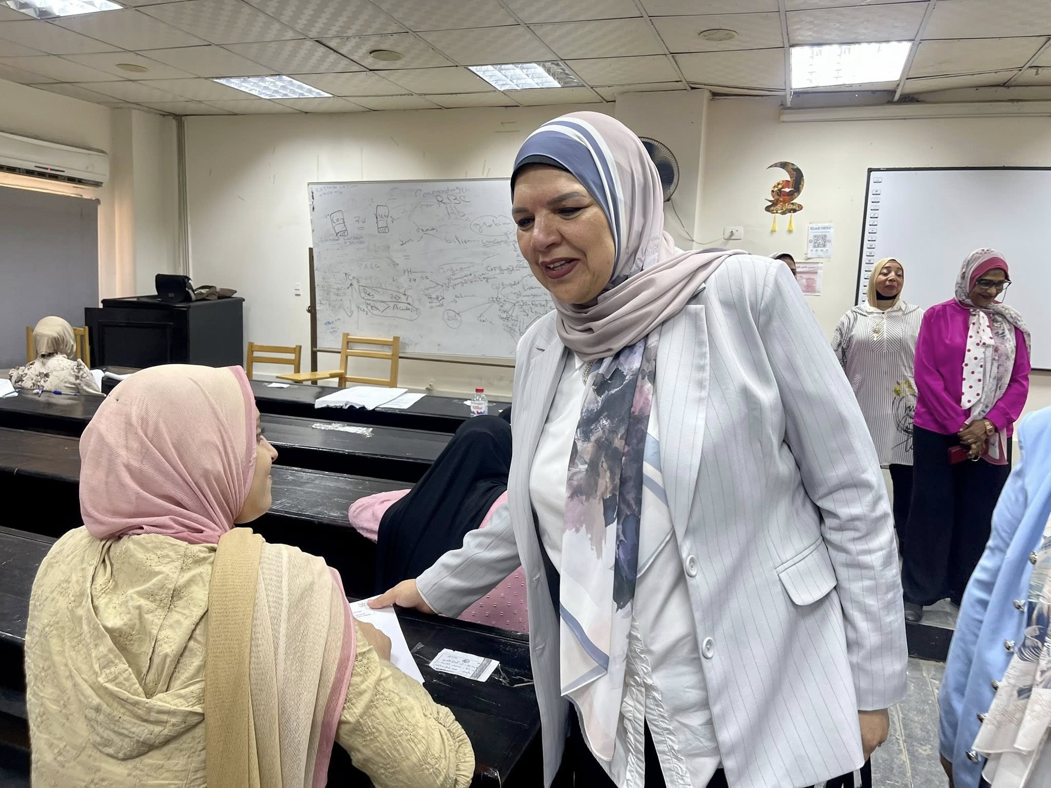 Prof. Dr. Rawya Rizk, Vice President of Port Said University, confirmed the regularity of postgraduate examinations at the Faculties of Medicine and Nursing. This came during a tour she conducted, accompanied by Prof. Dr. Ihab El-Hanafy, Dean of the Faculty of Medicine, Prof. Dr. Sanaa Ghandour, Dean of the Faculty of Nursing, deans of both faculties, and a number of faculty members.