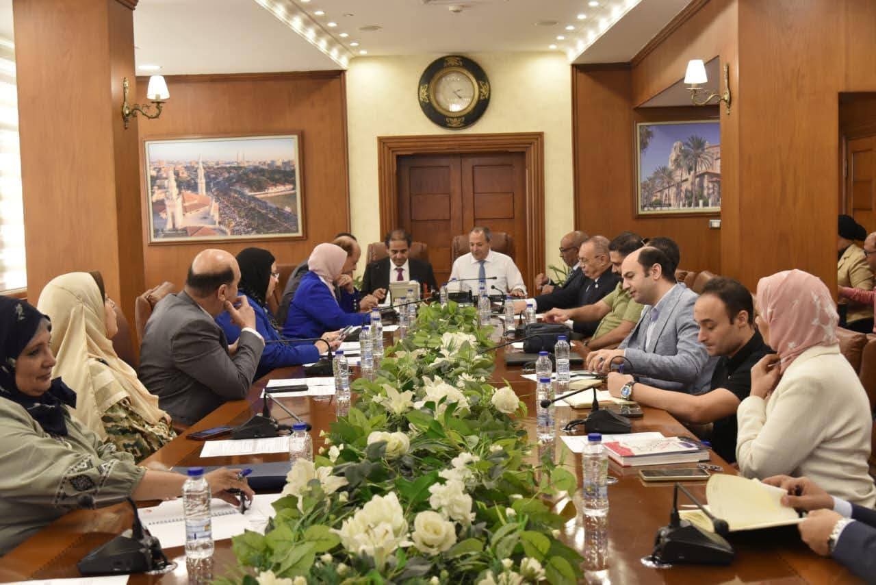 The meeting was attended by a number of executive and health leaders, including Dr. Amr Othman, Deputy Governor, Major General Amr Fikry, Secretary General, Dr. Helmy El-Afny, Head of the Doctors Syndicate, Dr. Ahmed Hassan, Director of the Health Care Authority, Dr. Ihab El-Hanfy, Dean of the Faculty of Medicine, Dr. Asmaa Nabil, Executive Director of the University Hospital, Dr. Walid Abdel Maqsoud, Director of the Health Affairs Directorate, Dr. Mohamed El-Sebaei, Director of Comprehensive Health Insurance, and Dr. Nisreen Hassan, Advisor to the Authority.