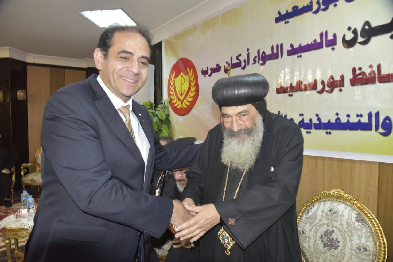 Prof. Dr. Sherif Saleh, President of Port Said University, extended his heartfelt congratulations to Bishop Tadros, Metropolitan of Port Said and its dependencies, and to the Coptic community at Port Said Cathedral on the occasion of Christmas. The visit took place in the presence of Major General Moheb Habashi, Governor of Port Said, along with other political, executive, and community leaders.
