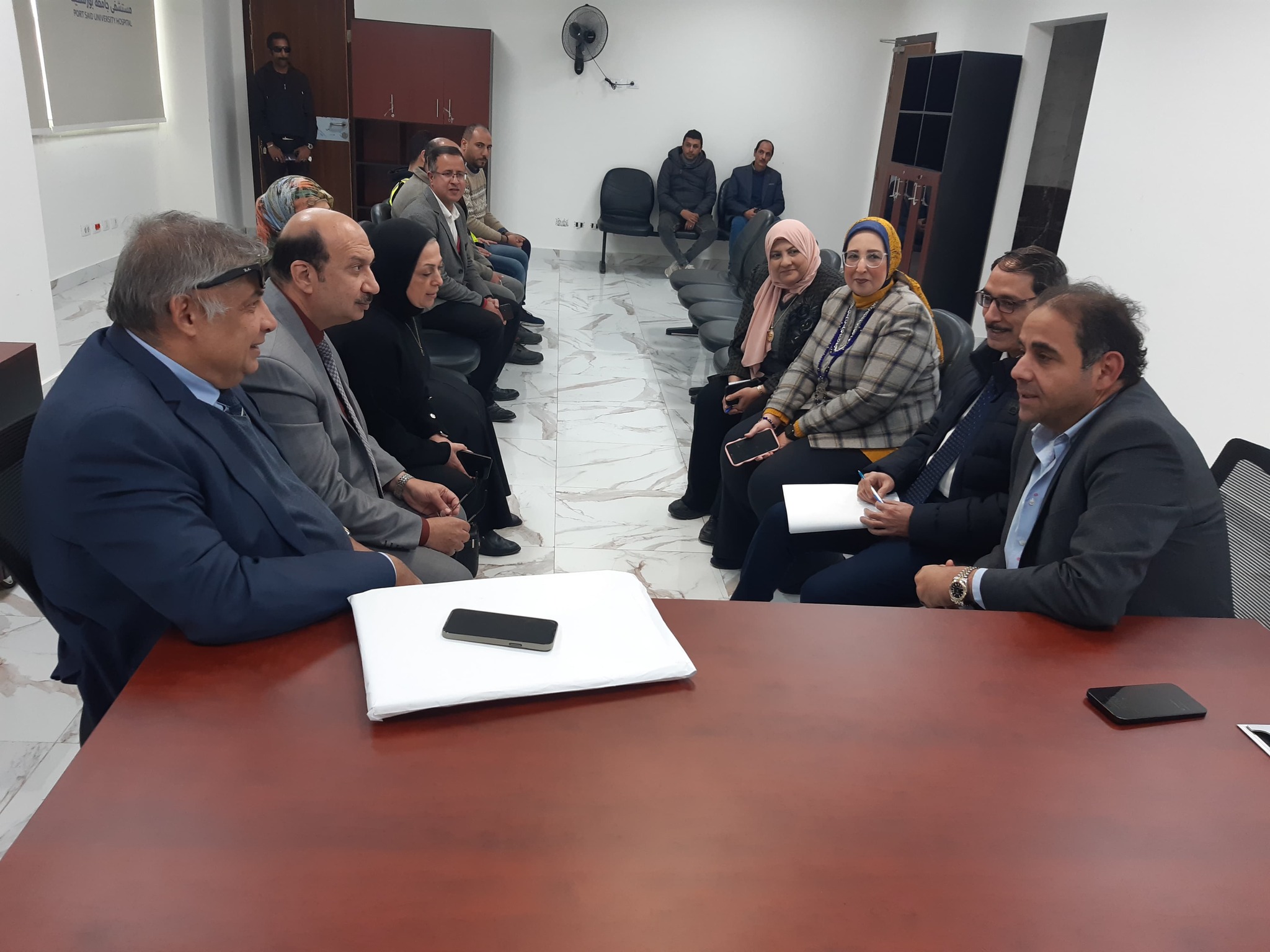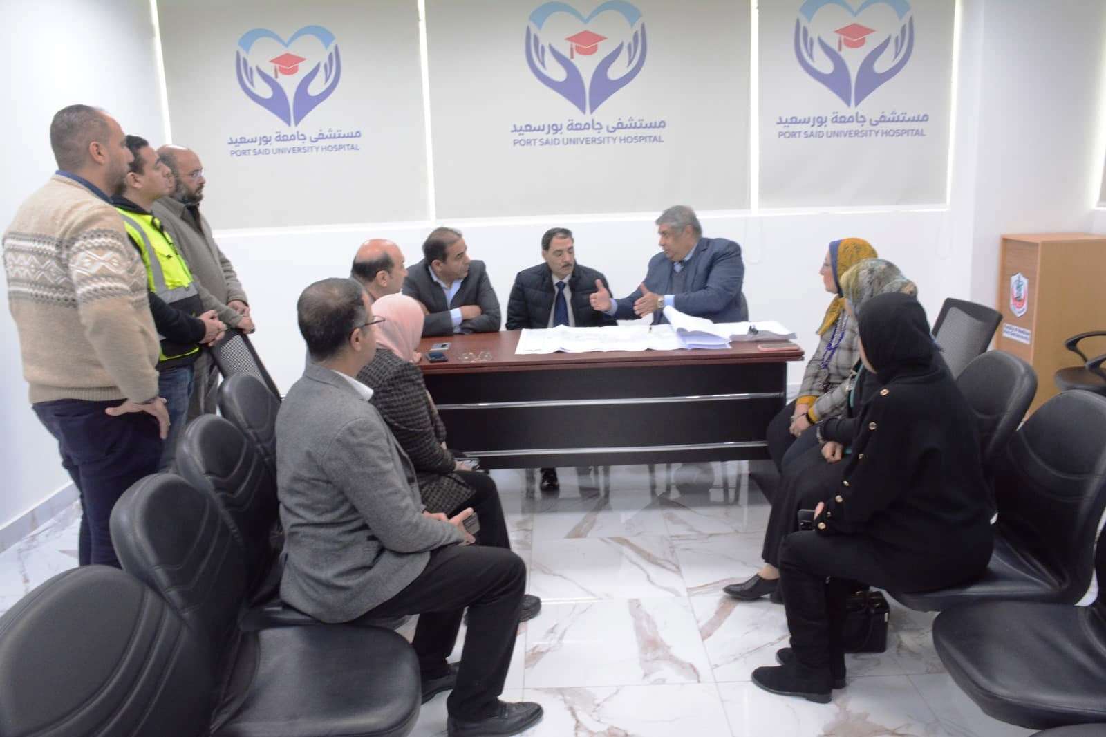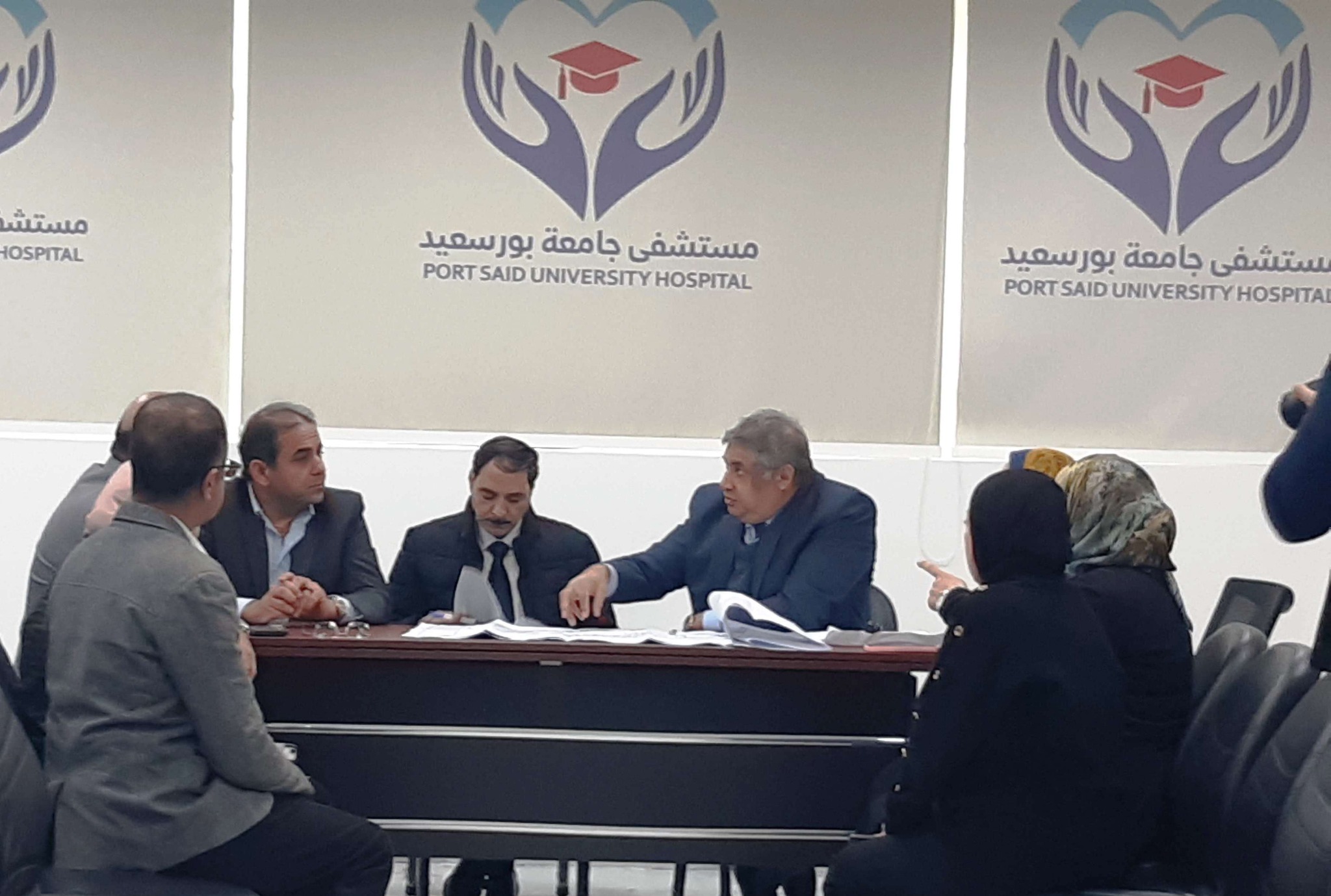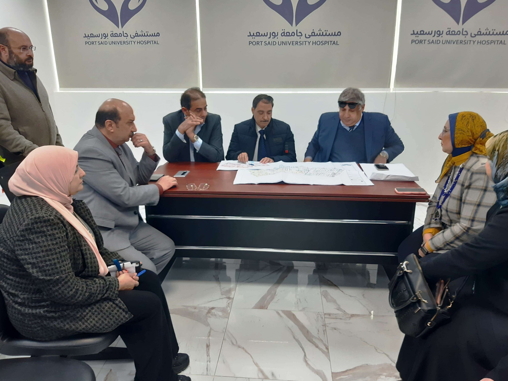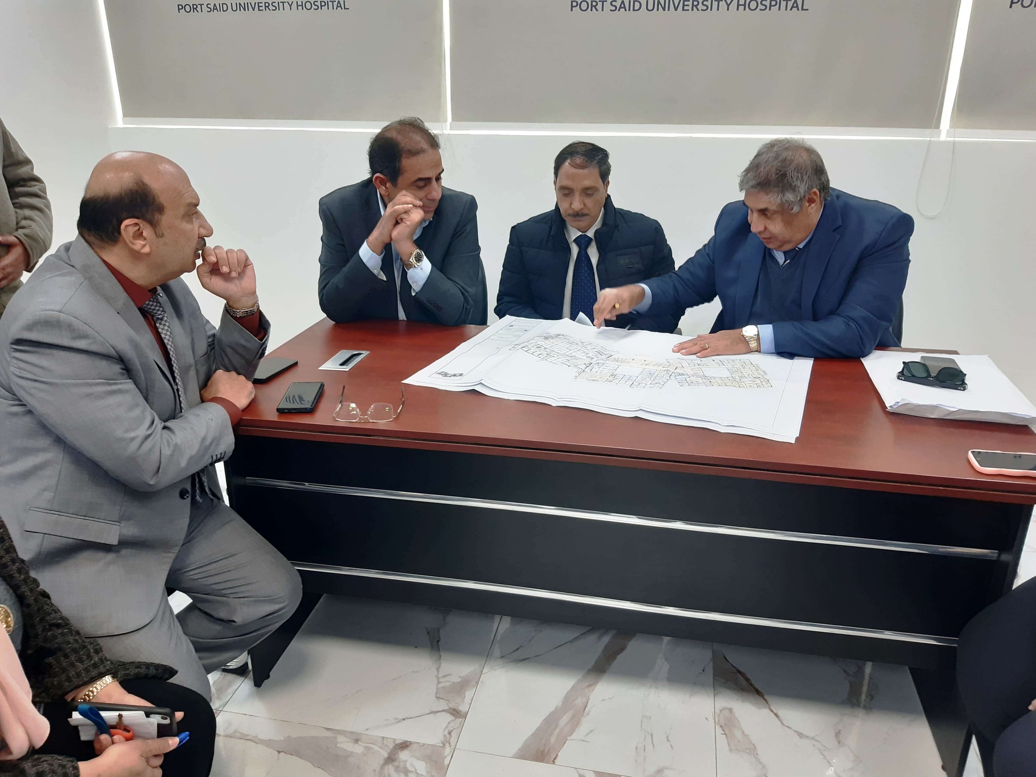 Prof. Dr Sherif Saleh, President of Port Said University, continued his field tours of Port Said University Hospital to see the latest developments in the hospital. He was accompanied by Prof. Dr Wadid William, Professor at the Faculty of Engineering, Zagazig University, the deans of the faculties of the health sector, the Secretary General of the University, the Executive Director of the University Hospital, and the University’s Engineering Consultant. After reviewing the latest developments in the work, the President of the University recommended the rapid completion of the first phase of actual operation and emphasized the rapid completion of the final works in preparation for the actual opening of the hospital.