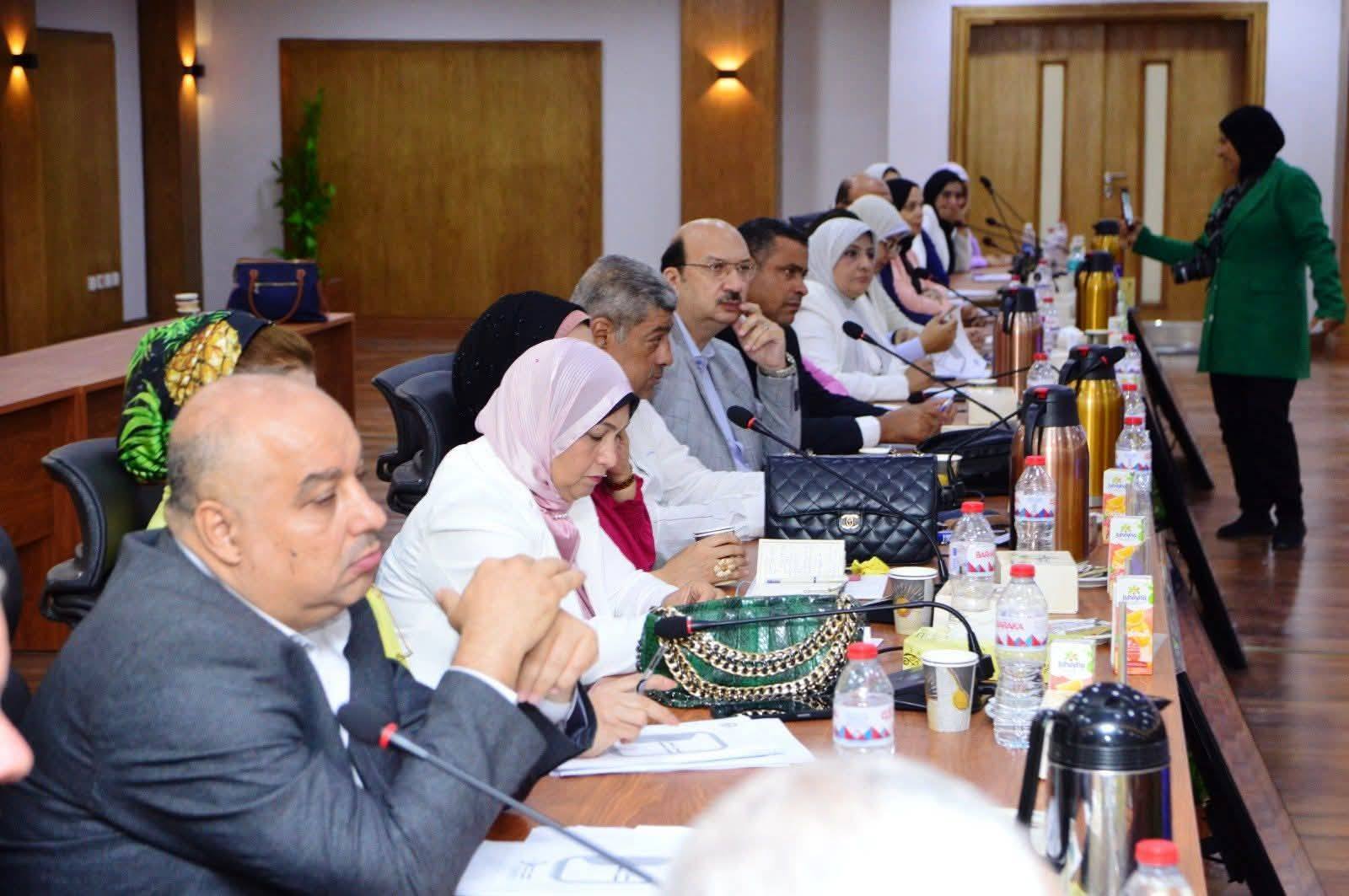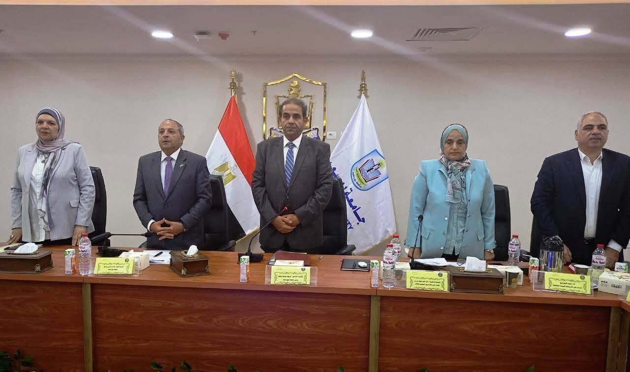 The University President welcomed the Governor, congratulated Dr. Rehab Abdel Aziz on her appointment as Dean of the Faculty of Education, and thanked Dr. Sherine El-Dessouki for her outstanding efforts during her tenure. Prof. Dr. Sherif also reviewed a number of important issues related to the development of the education and scientific research system, digital transformation, and the unified visual identity of all university facilities.