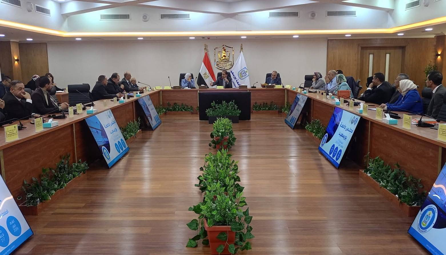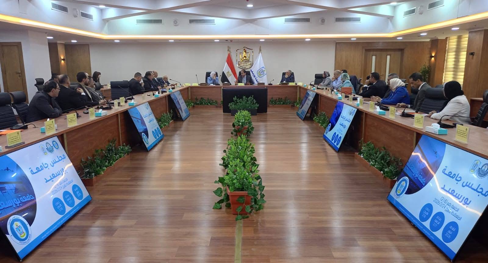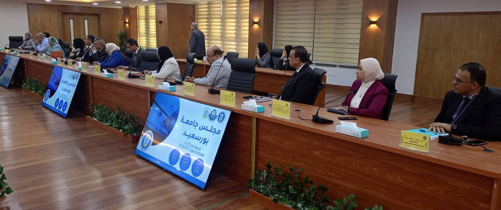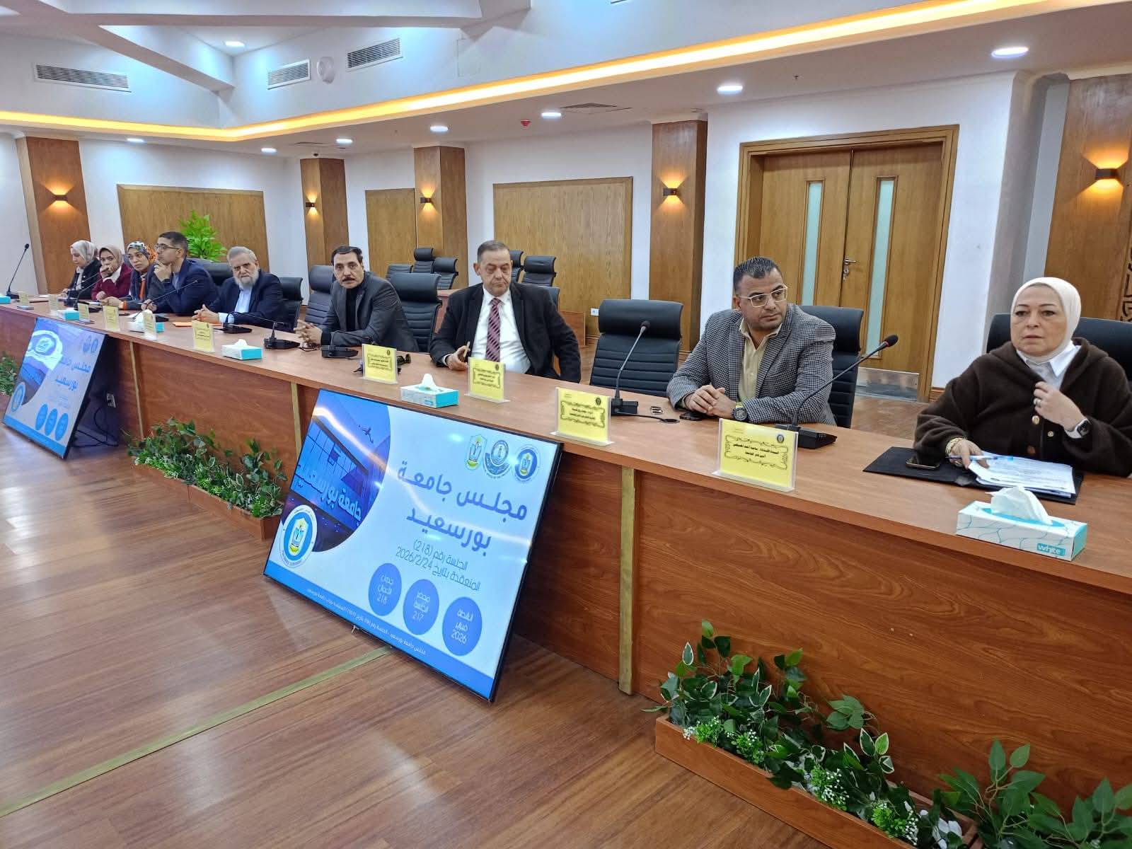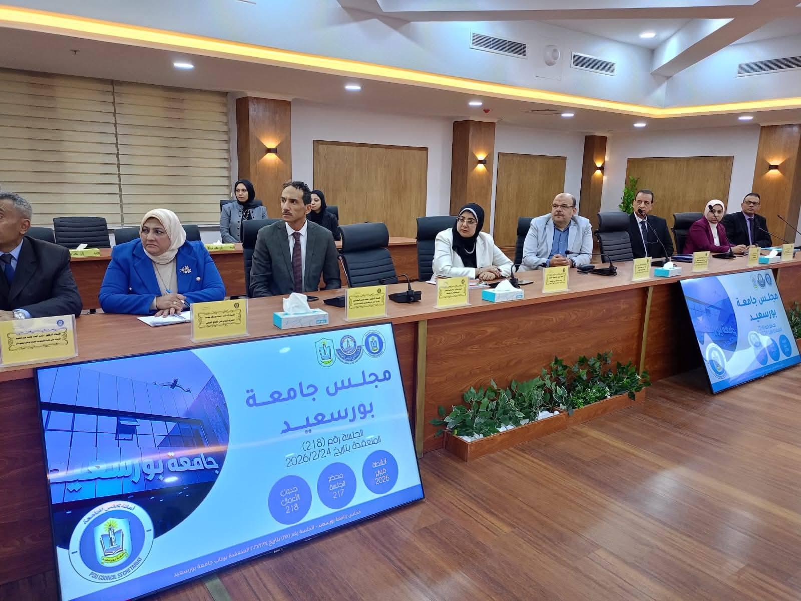 Port Said University Council held its 218th regular meeting on Tuesday, February 24, 2026, chaired by Prof. Dr. Sherif Saleh, President of the University. The meeting opened with an exchange of greetings on the occasion of the holy month of Ramadan.